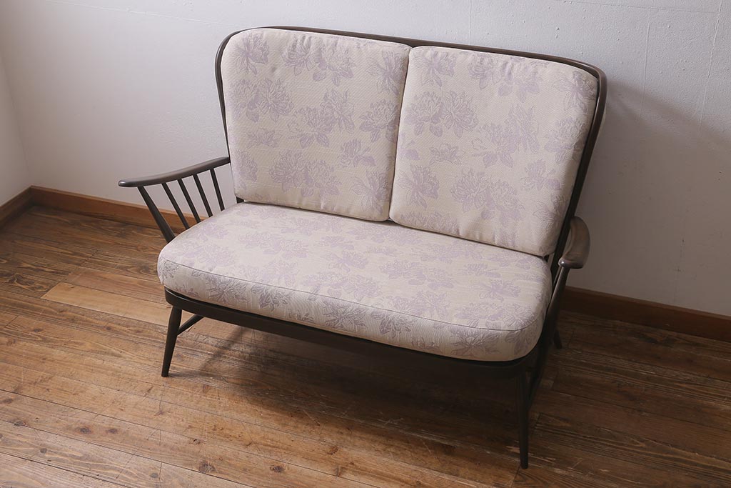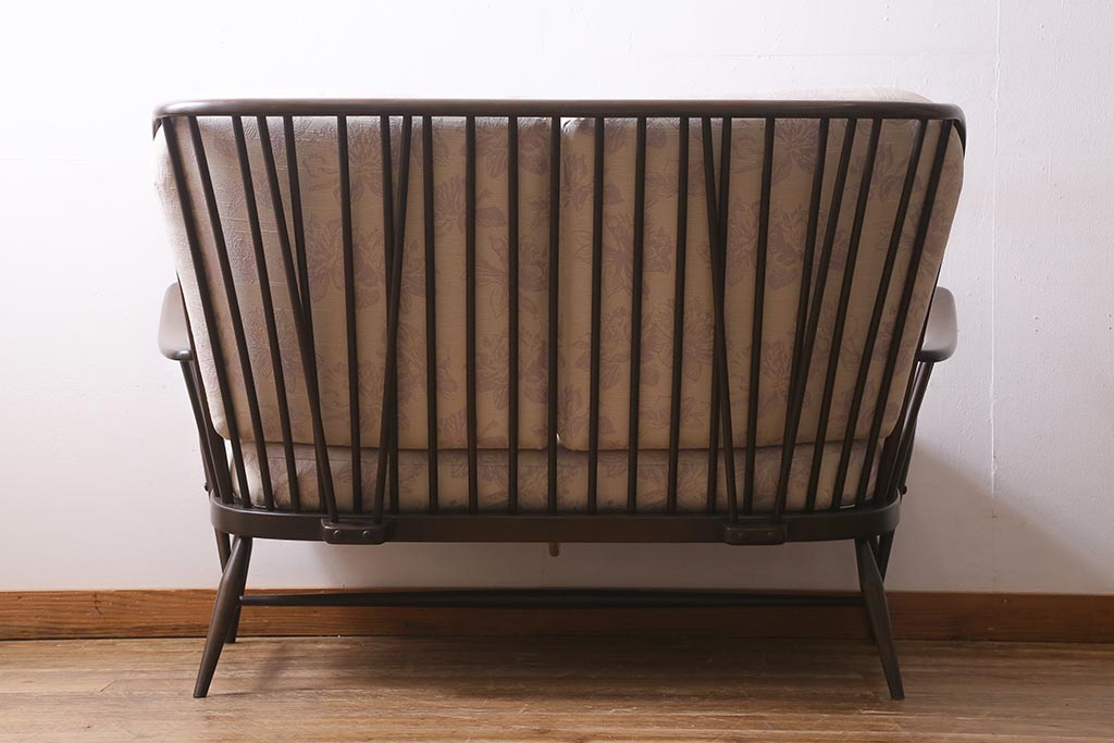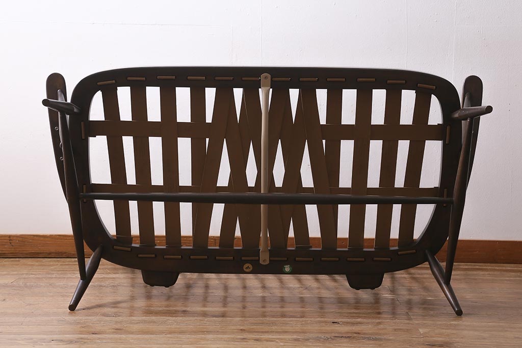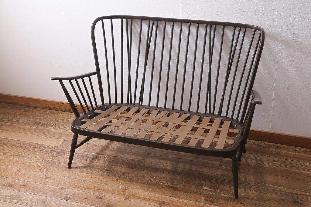 ヴィンテージ家具 ERCOL(アーコール) エバーグリーン 曲げ木のフレームが目を惹く二人掛けソファ(アームソファ、ラブソファ、2人掛け、ビンテージ)(定価約58万円)(R-039439)
