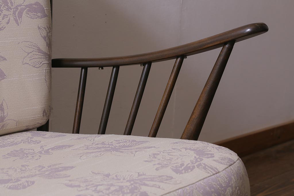 ラフジュ工房> ソファ> ダイニングソファ > ヴィンテージ家具 ERCOL(アーコール) エバーグリーン 曲げ木のフレームが目を惹く二人掛けソファ(アームソファ、ラブソファ、2人掛け、ビンテージ)(定価約58万円)(R-039439)