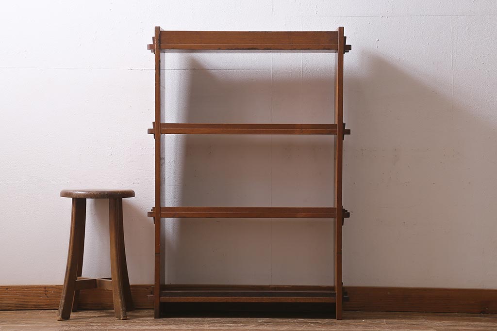 アンティーク家具 和製アンティーク 楔式 温もり溢れる木の風合いが魅力の本棚(オープンラック、飾り棚、収納棚、ブックシェルフ)(R-039440)