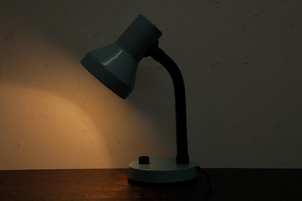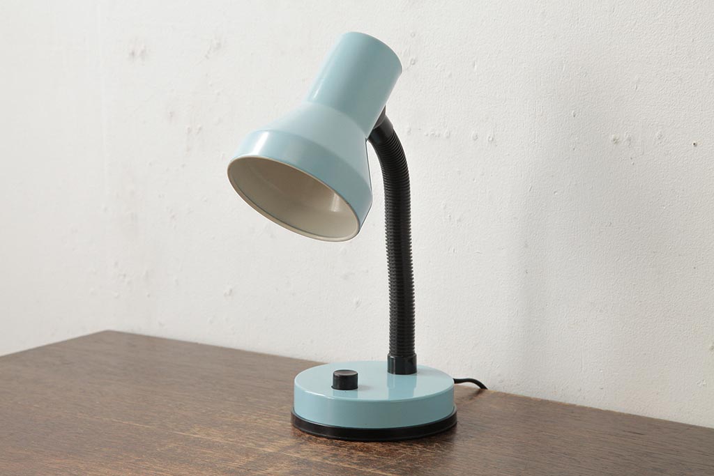 ビンテージ照明 レトロ ポップなブルーが爽やかな印象のデスクスタンド(卓上照明、デスクライト)(R-039431)です。