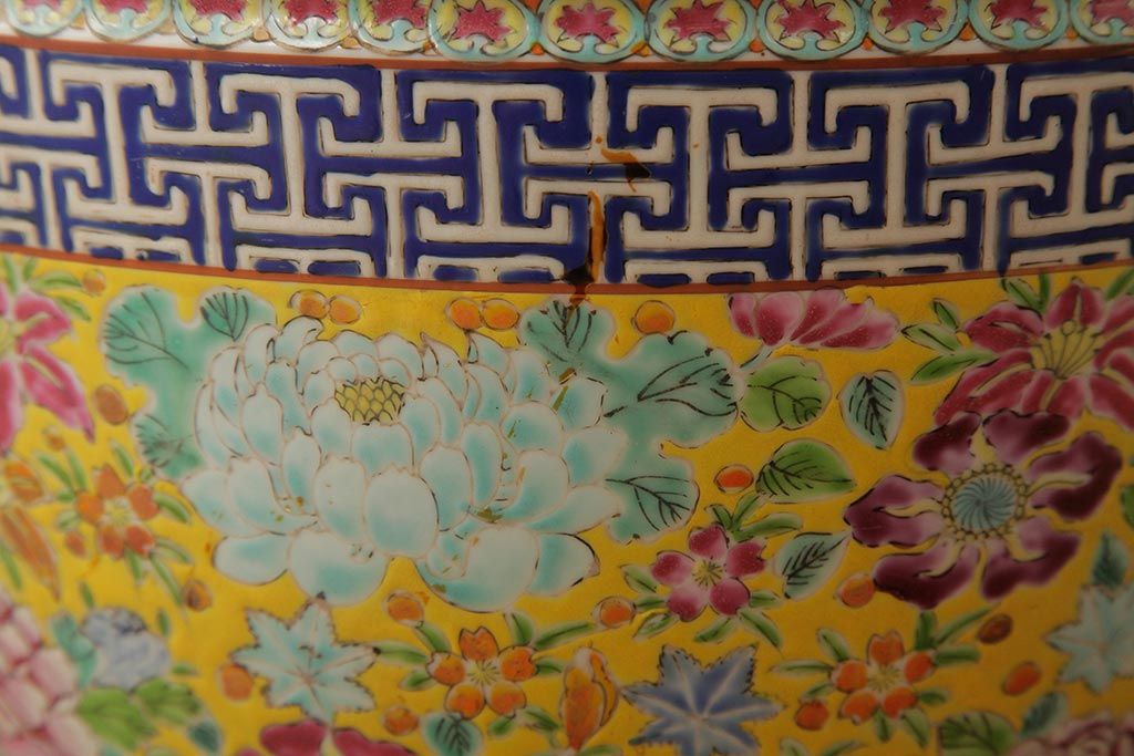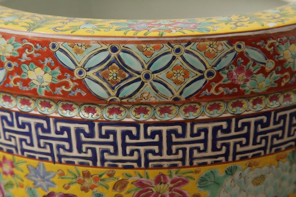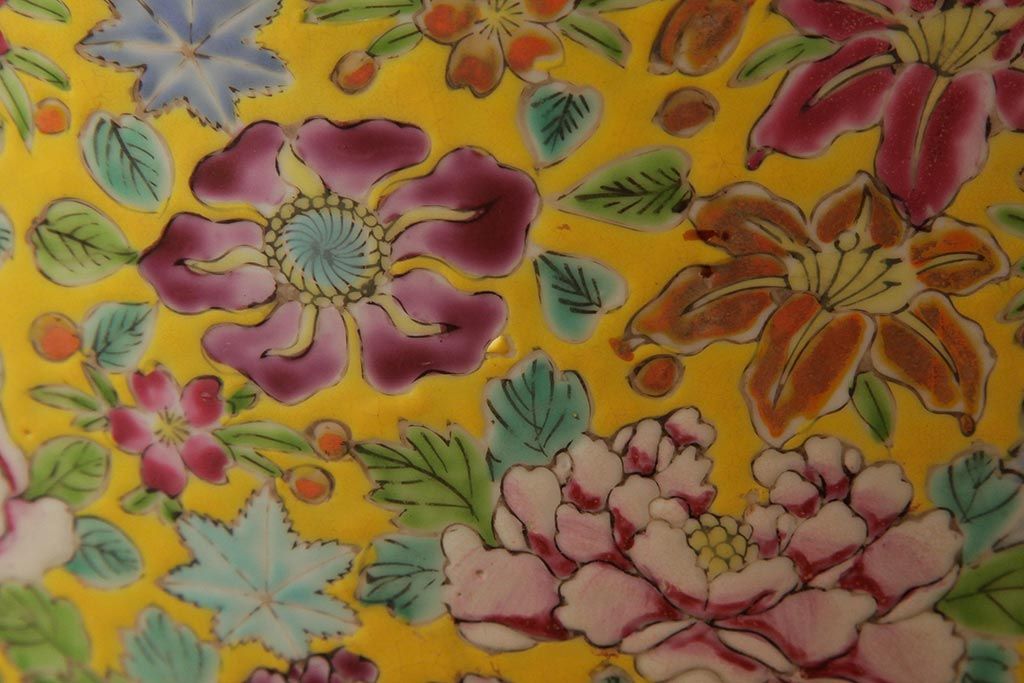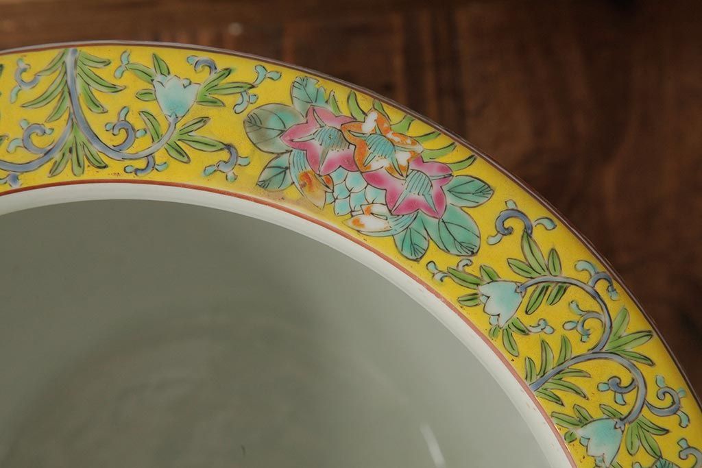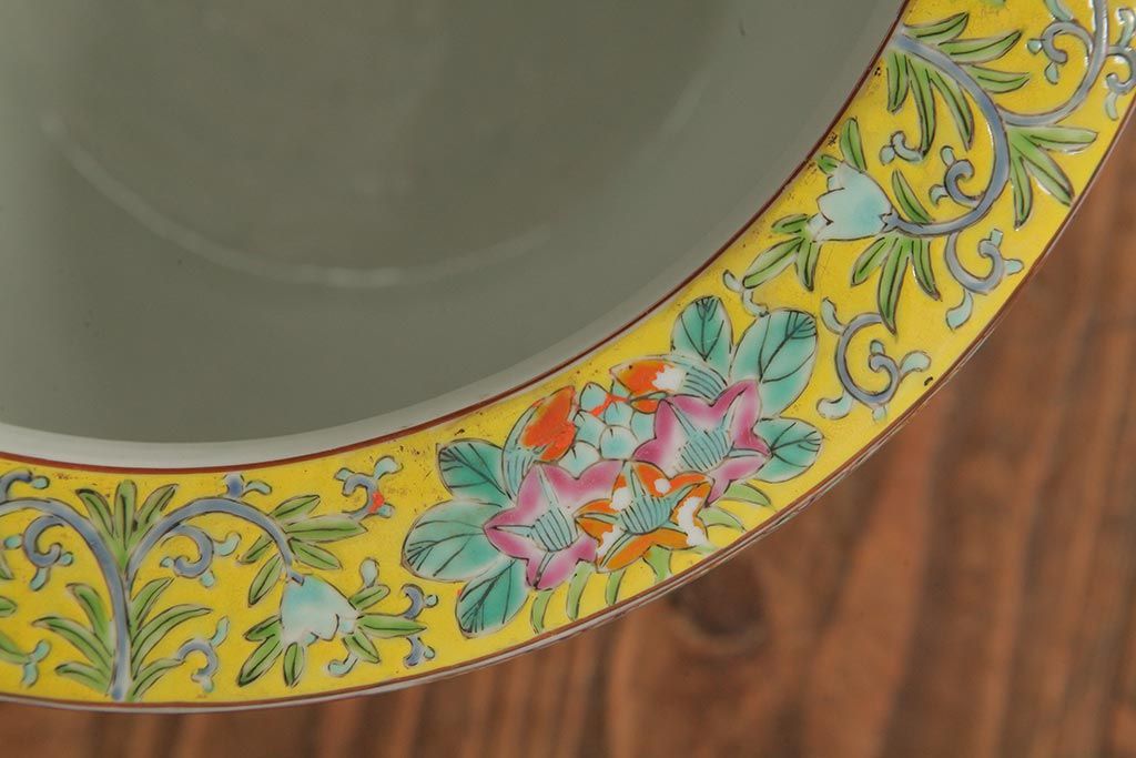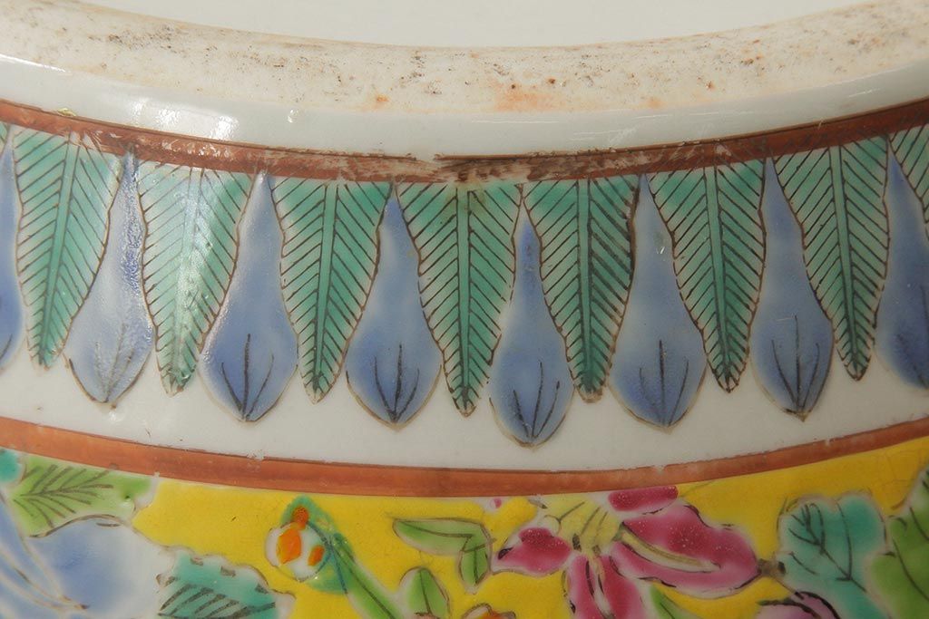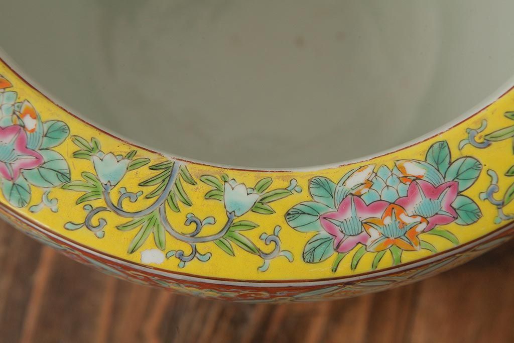 アンティーク雑貨 花々の図が鮮やかな十錦手火鉢(瀬戸火鉢)(R-039484)