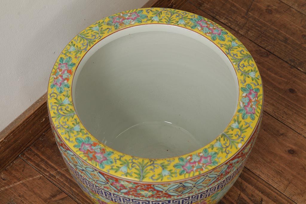 アンティーク雑貨 花々の図が鮮やかな十錦手火鉢(瀬戸火鉢)(R-039484)です。