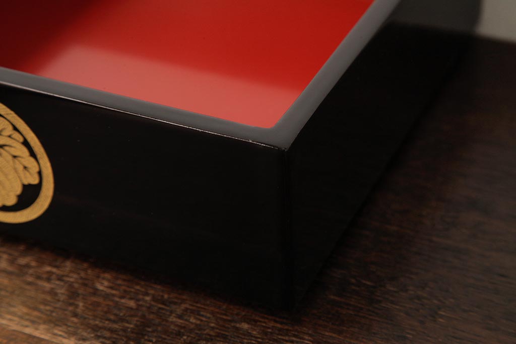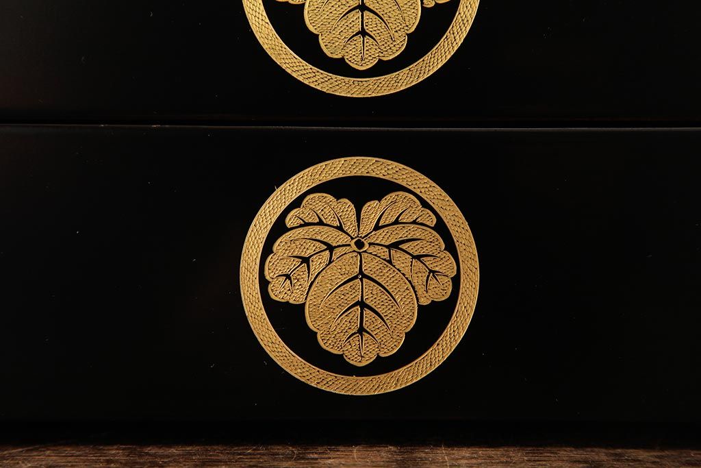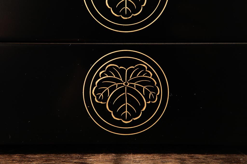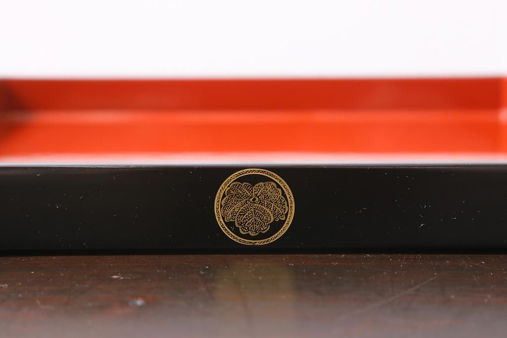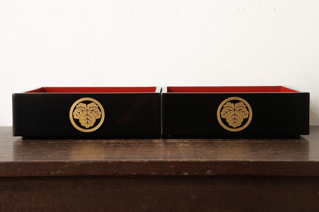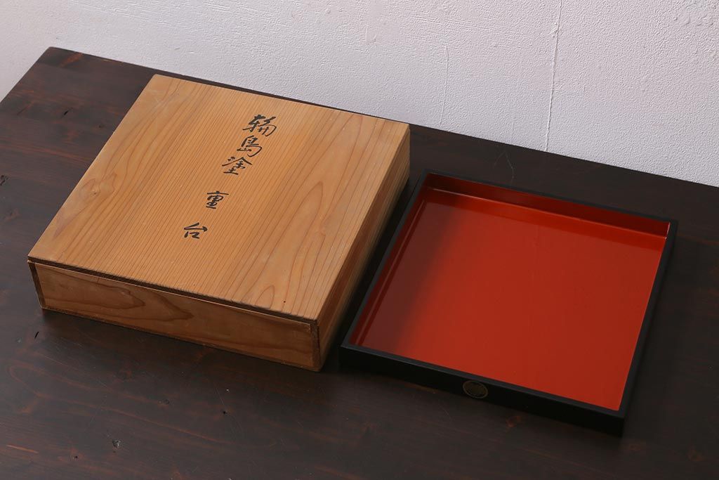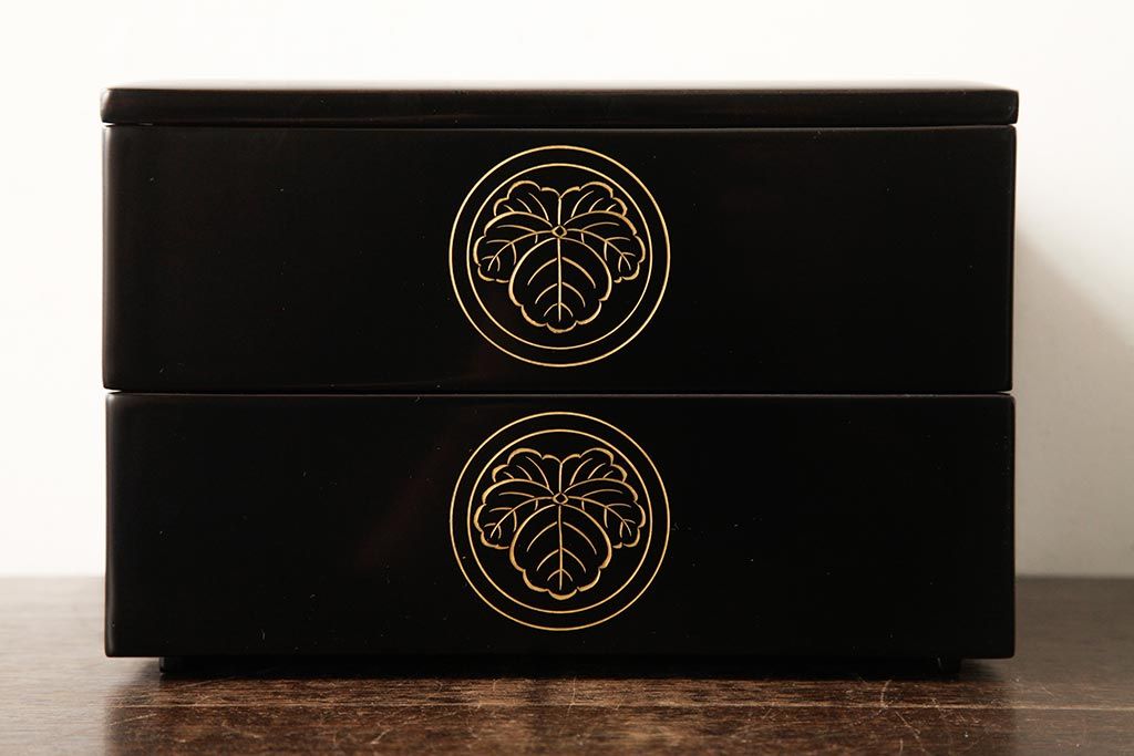 アンティーク雑貨 伝統工芸 輪島塗 漆塗り 共箱 蔦紋重箱・台付き(お重、重台、漆器)(R-039307)