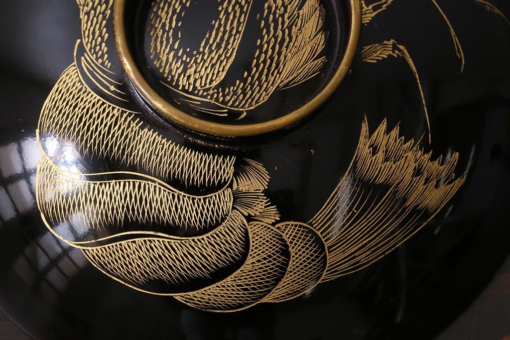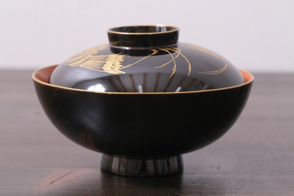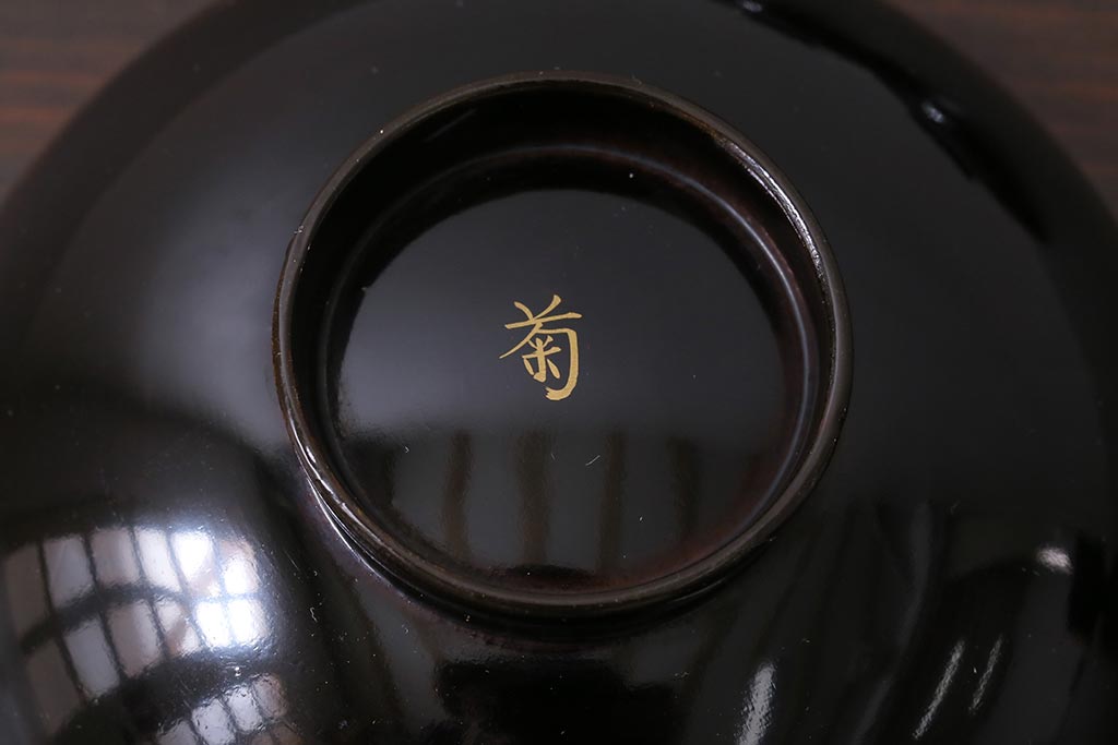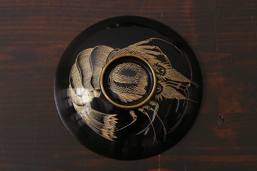 ラフジュ工房> 和食器・茶道具> お椀・茶碗 > アンティーク雑貨 和製アンティーク 漆器 迫力ある海老の図柄が描かれた木製椀5客セット(和食器)(R-039465)