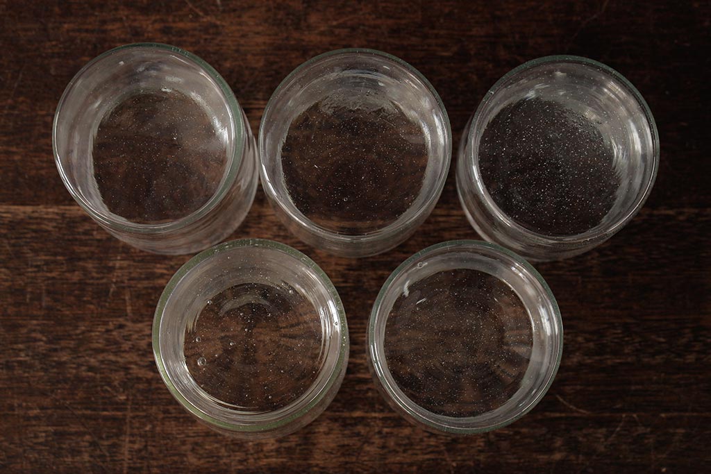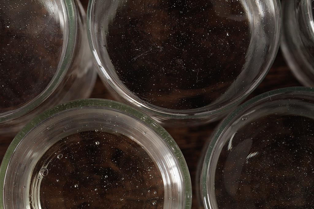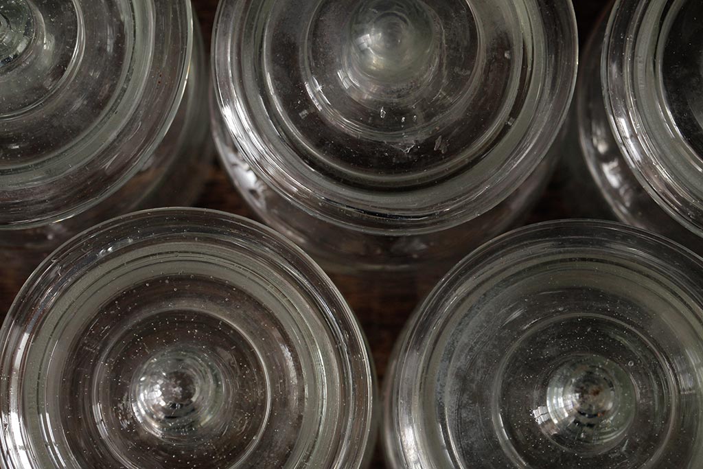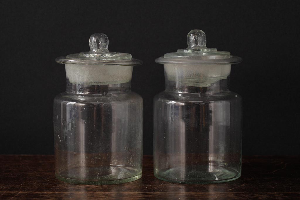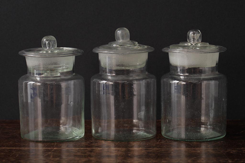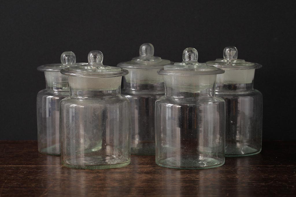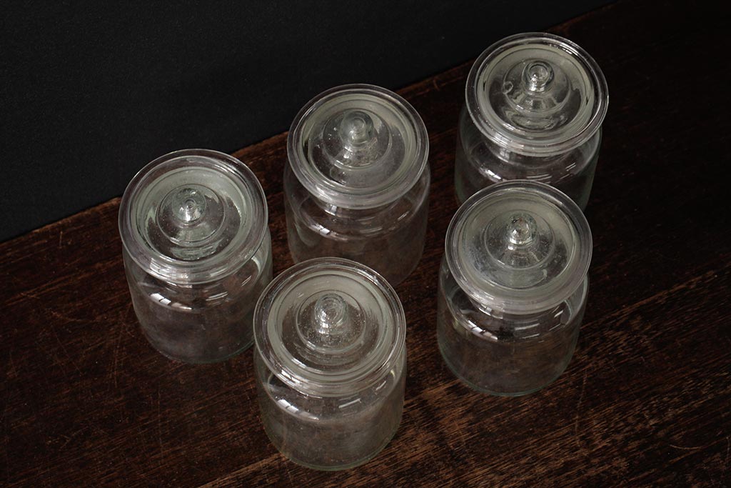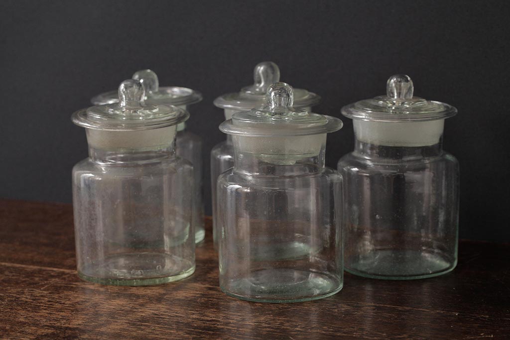アンティーク雑貨 レトロ雑貨 アンティークボトル 小さな蓋付きガラス瓶5個セット(ガラスビン)(R-039457)