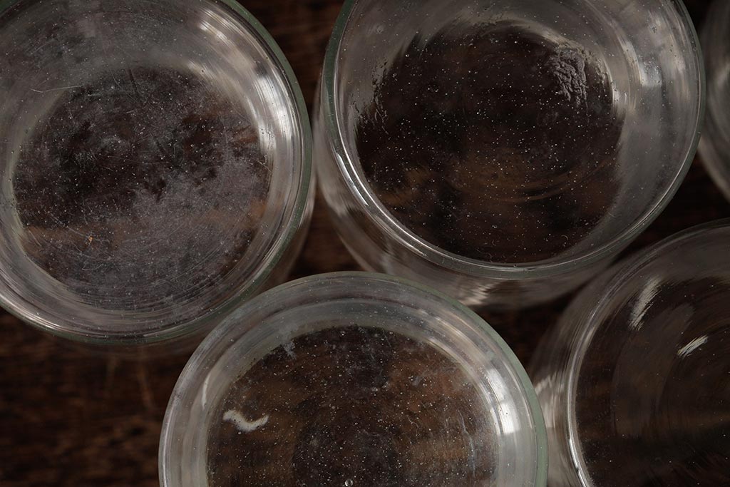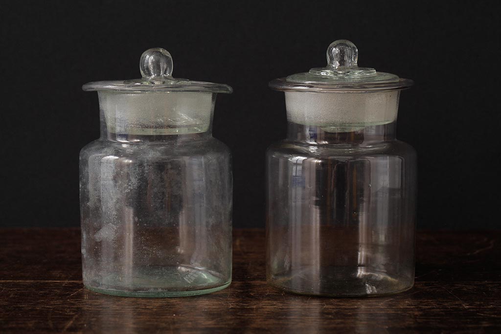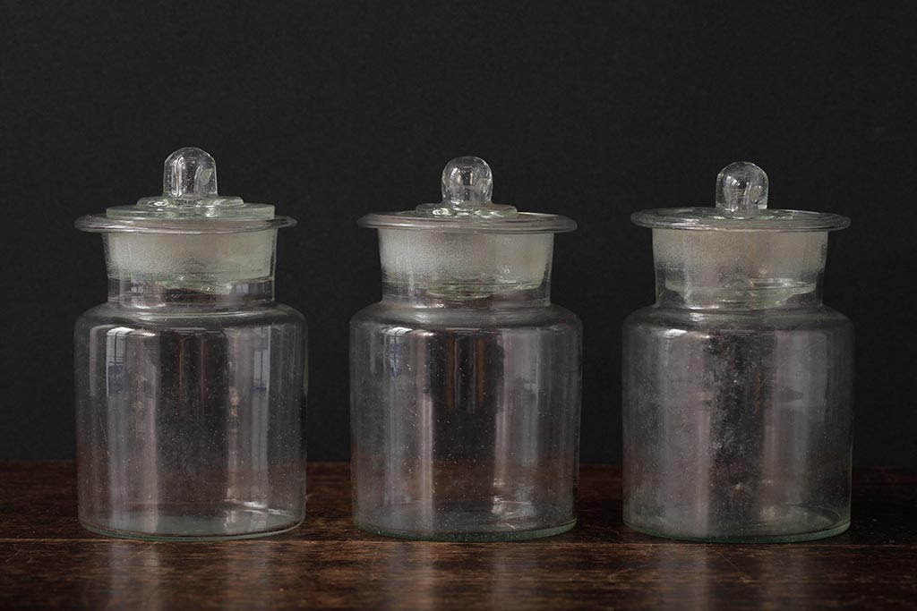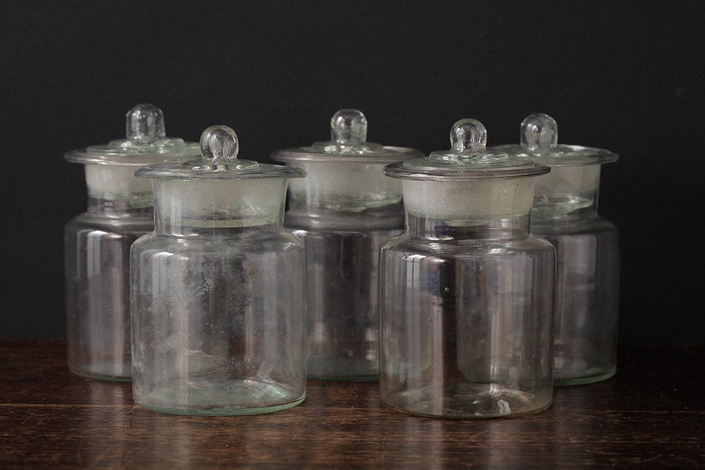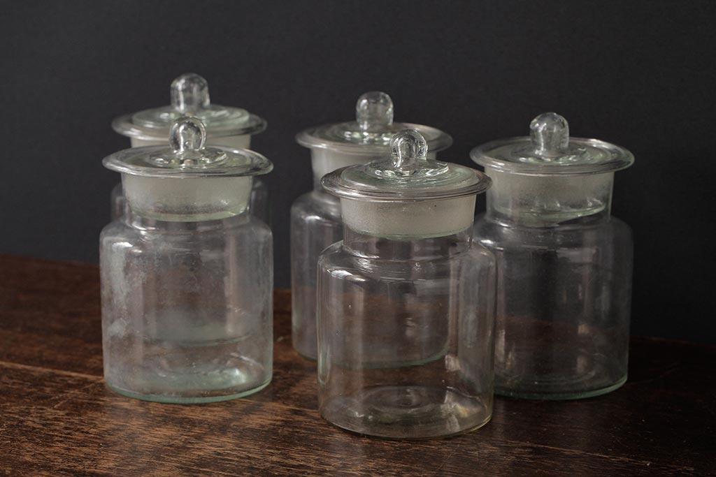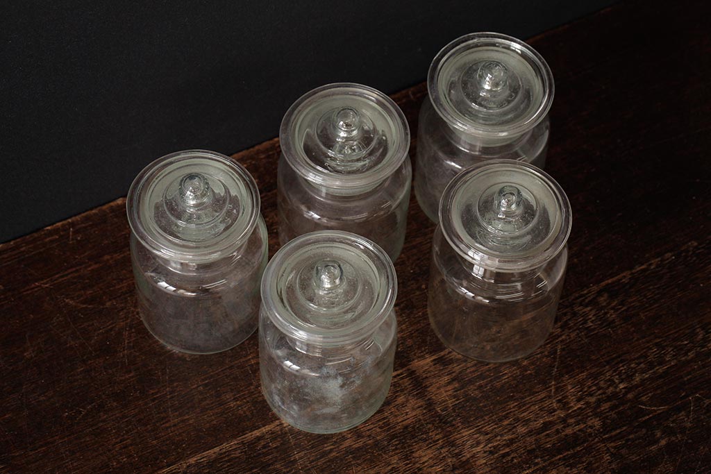アンティーク雑貨 レトロ雑貨 アンティークボトル 小さな蓋付きガラス瓶5個セット(ガラスビン)(R-039458)