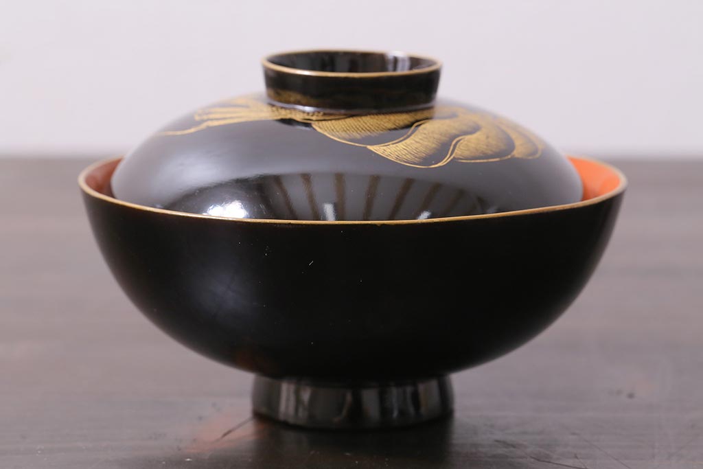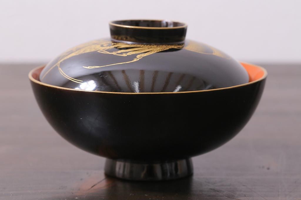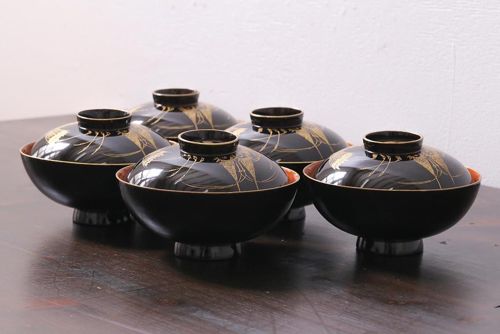 ラフジュ工房> 和食器・茶道具> お椀・茶碗 > アンティーク雑貨 和製アンティーク 漆器 迫力ある海老の図柄が描かれた木製椀5客セット(和食器)(R-039463)
