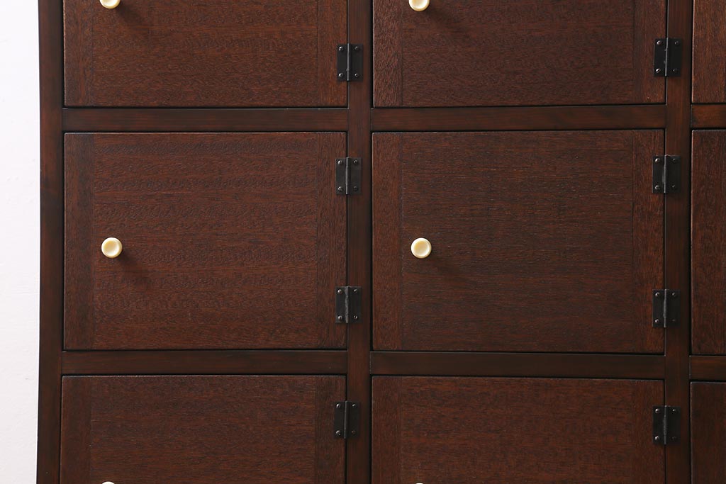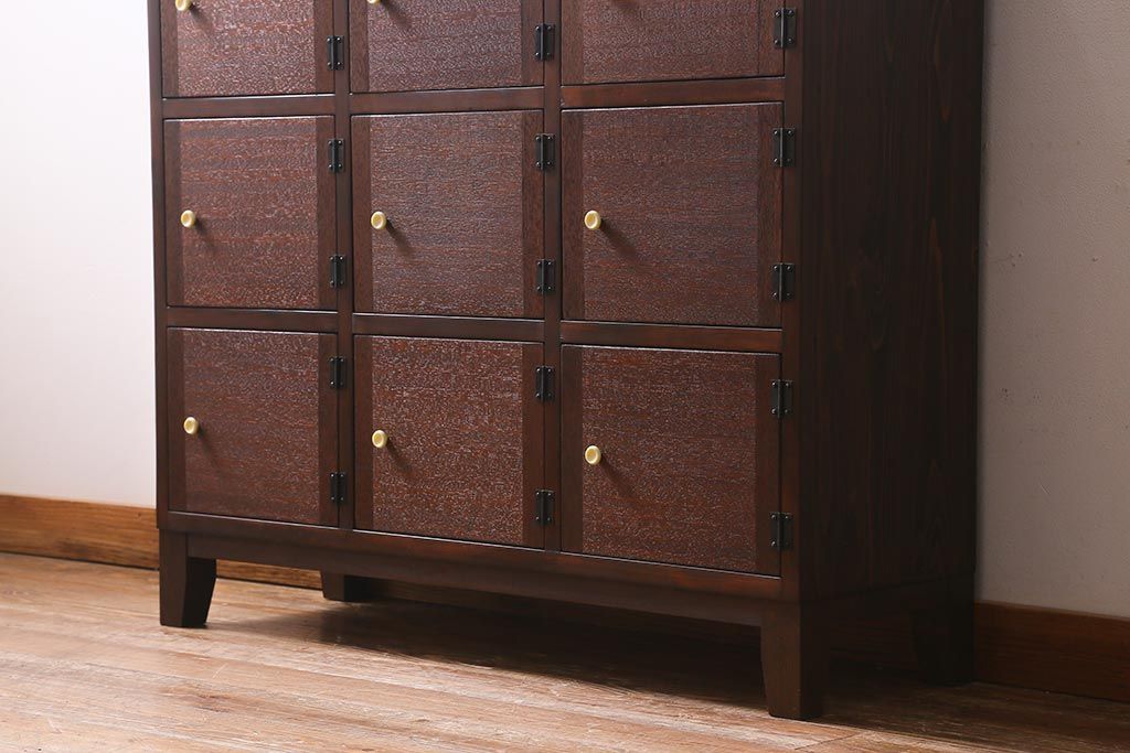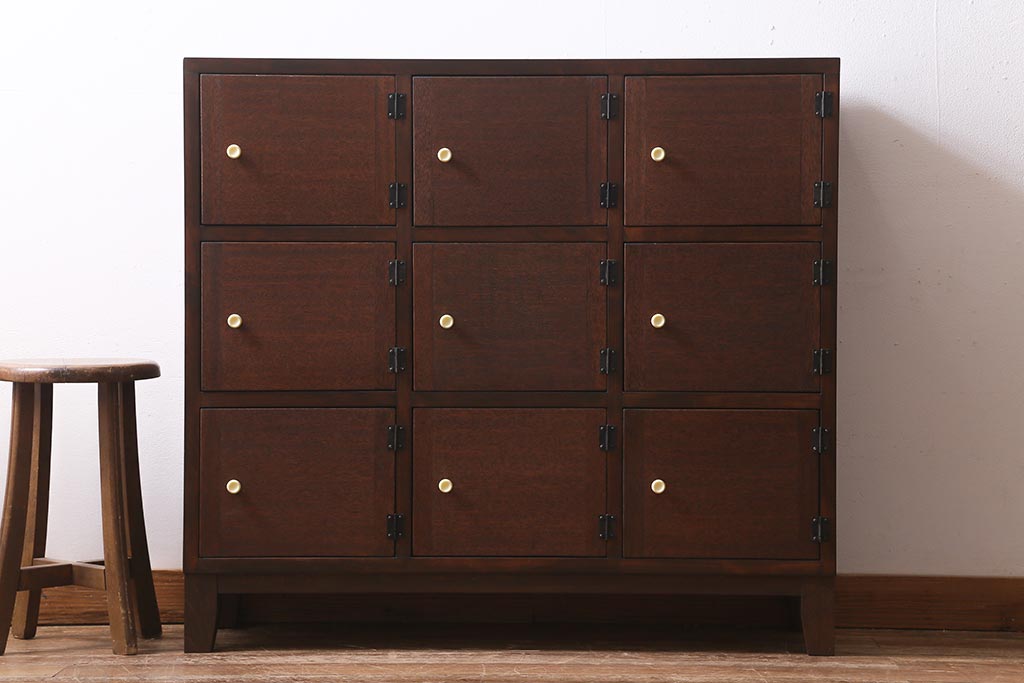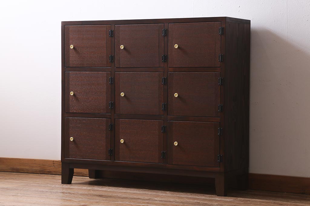 ワードローブ・ロッカー> ロッカー > ラフジュ工房オリジナル 3×3マス 古材リメイク ヒノキ無垢材・ラワン古材 レトロな雰囲気漂うマス目棚・右開き(収納棚、ロッカー、下駄箱)(R-039411)