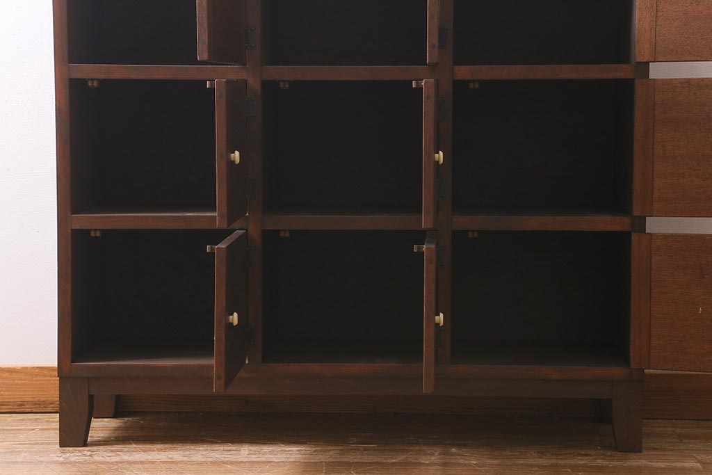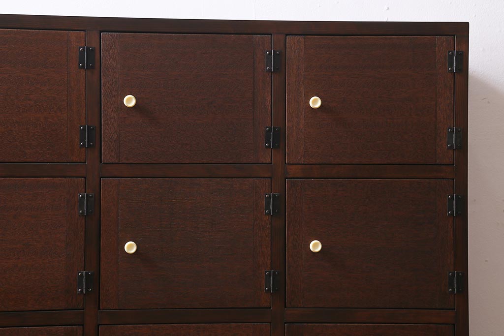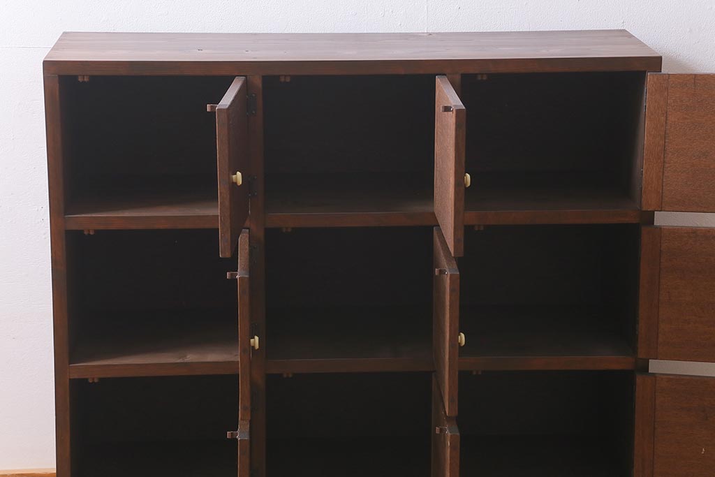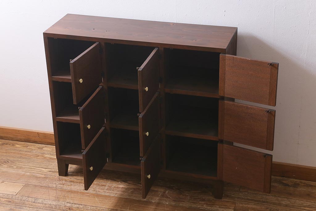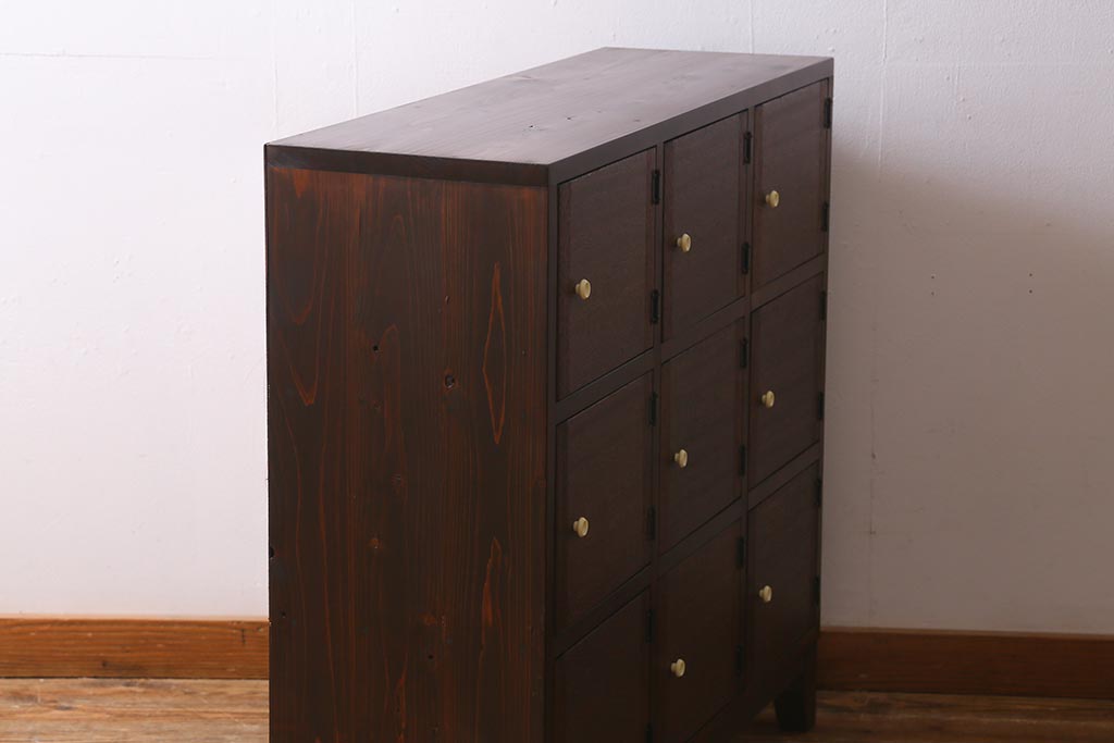 ワードローブ・ロッカー> ロッカー > ラフジュ工房オリジナル 3×3マス 古材リメイク ヒノキ無垢材・ラワン古材 レトロな雰囲気漂うマス目棚・右開き(収納棚、ロッカー、下駄箱)(R-039411)