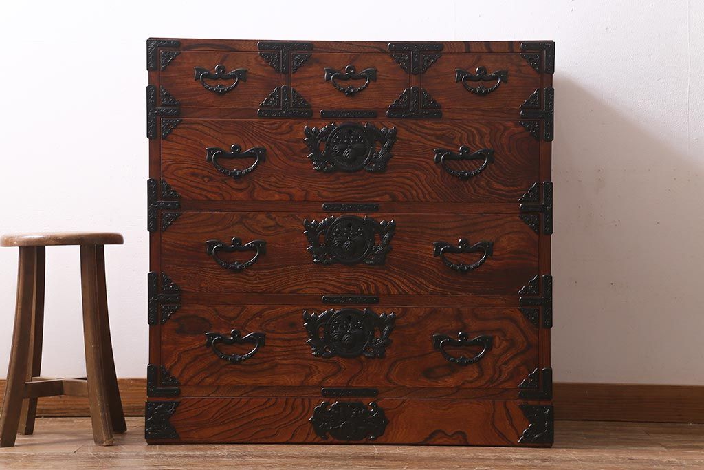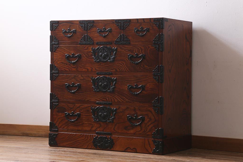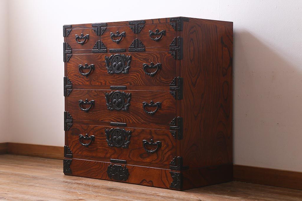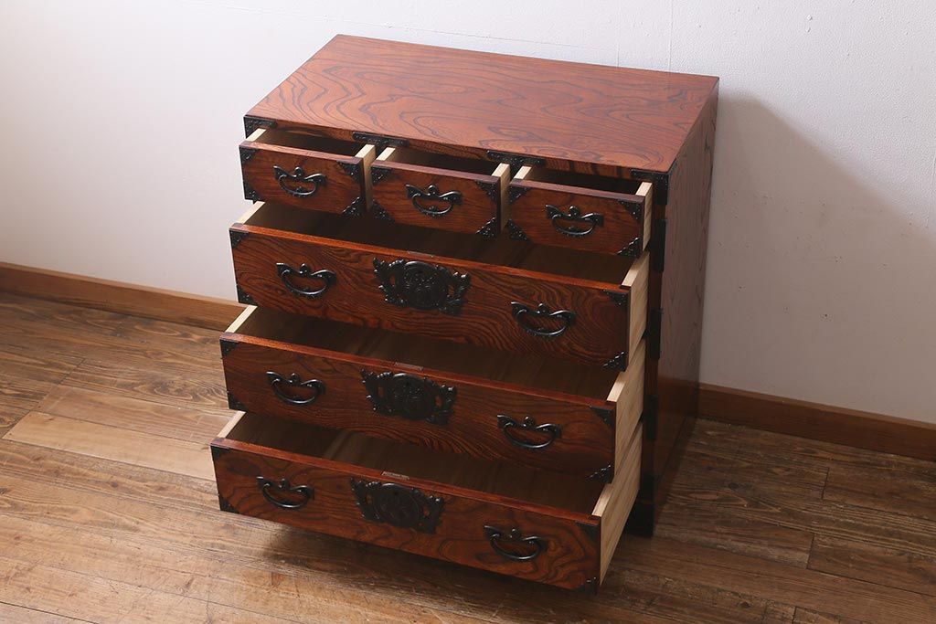 中古 岩谷堂箪笥 伝統民芸家具 重厚感のある金具が目を惹く整理箪笥(衣装箪笥、チェスト、引き出し)(R-039495)