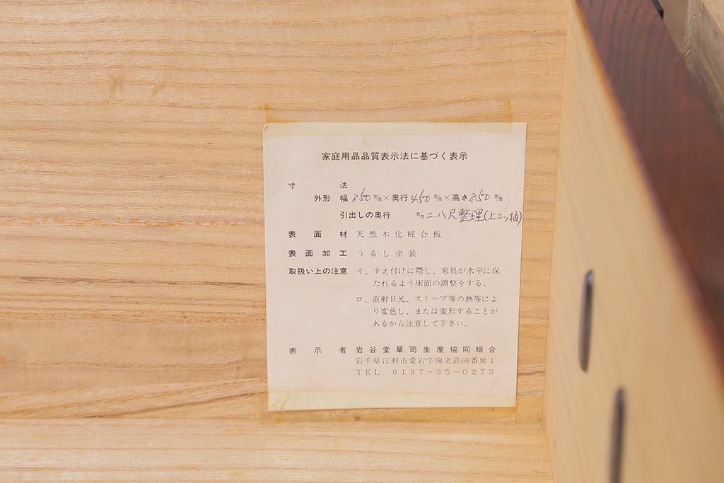 和箪笥 > 中古 岩谷堂箪笥 伝統民芸家具 重厚感のある金具が目を惹く整理箪笥(衣装箪笥、チェスト、引き出し)(R-039495)