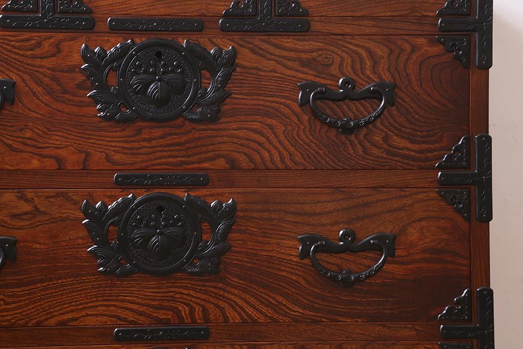 民芸家具 > 中古 岩谷堂箪笥 伝統民芸家具 重厚感のある金具が目を惹く整理箪笥(衣装箪笥、チェスト、引き出し)(R-039495)