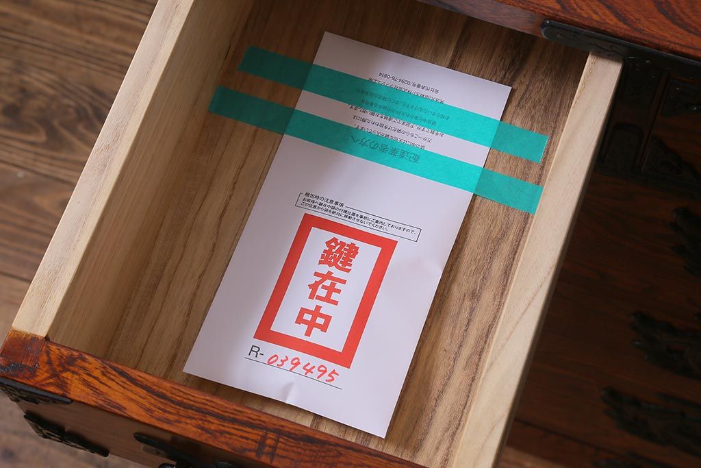 鍵は付属します。画像にありますように、袋に入れお付けします。スムーズに動くように調整していますが、あくまでも古いものや中古品ですので、長期の使用保証は出来かねます。ご購入後不具合が発生した場合は、当店でサポートさせていただきますので、お気軽にご相談くださいませ。