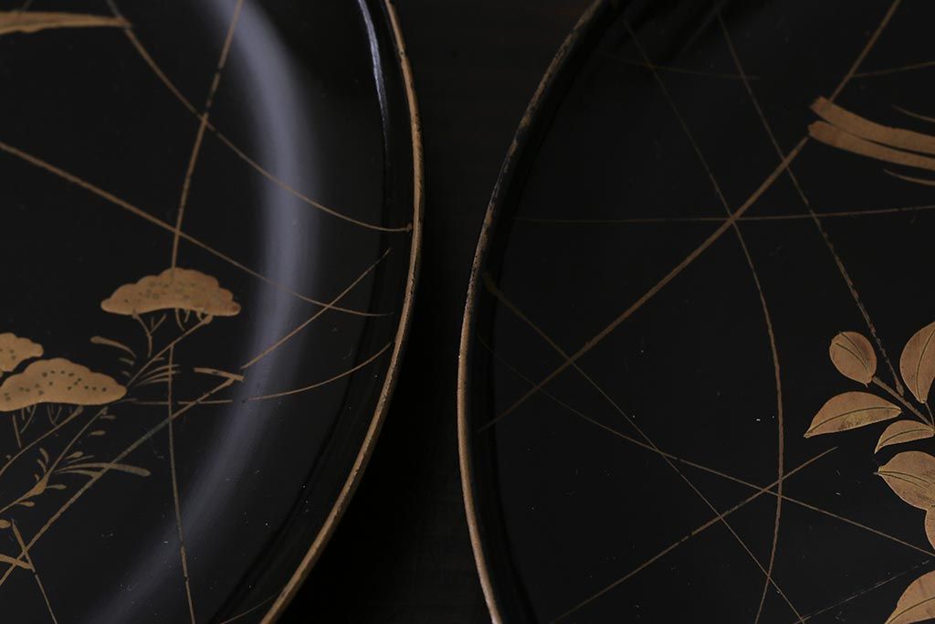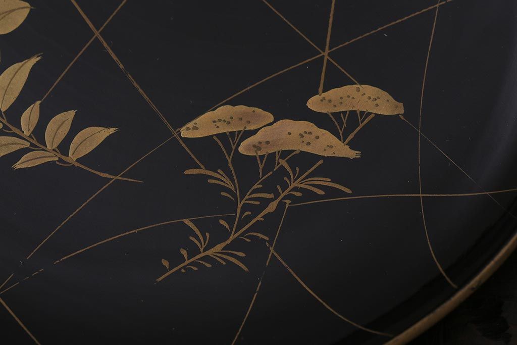 ラフジュ工房> 和食器・茶道具 > アンティーク雑貨 和製アンティーク 5.6寸桔梗鳥蒔絵木製菓子皿5枚セット(木皿、漆器)(R-039368)