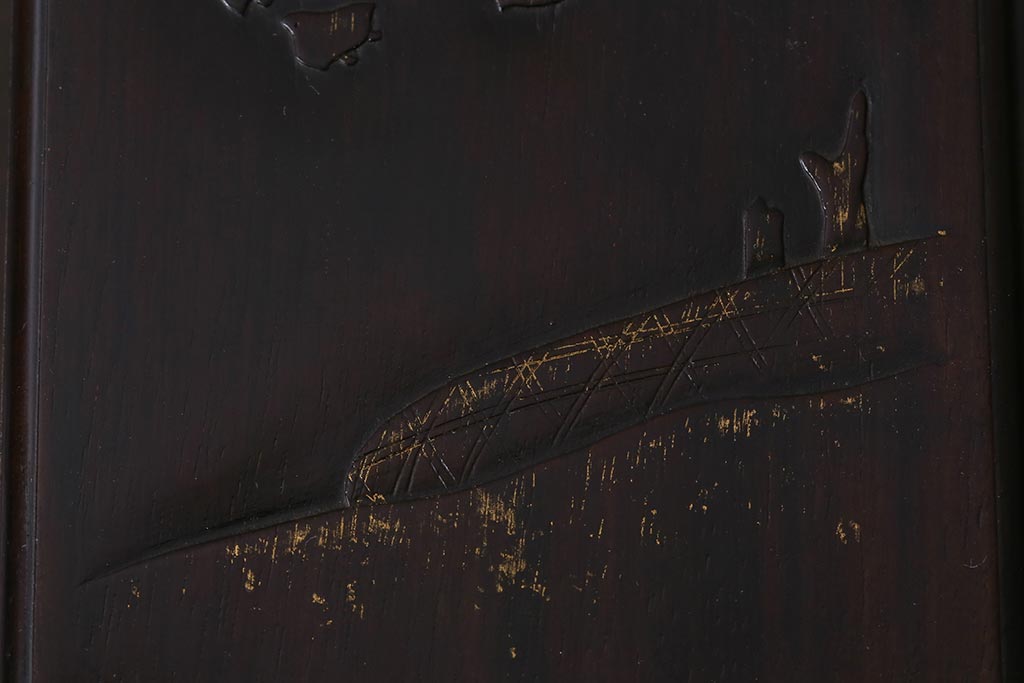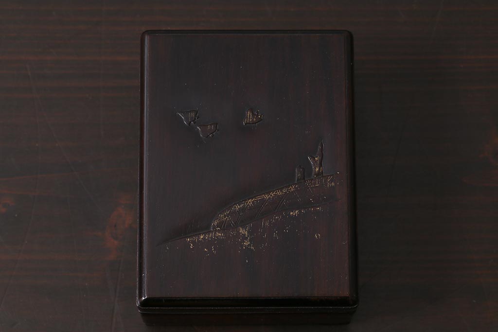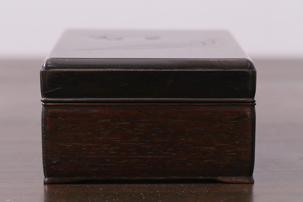 アンティーク雑貨 和製アンティーク 波千鳥 唐木小箱(小物入れ、木箱)(R-039309)