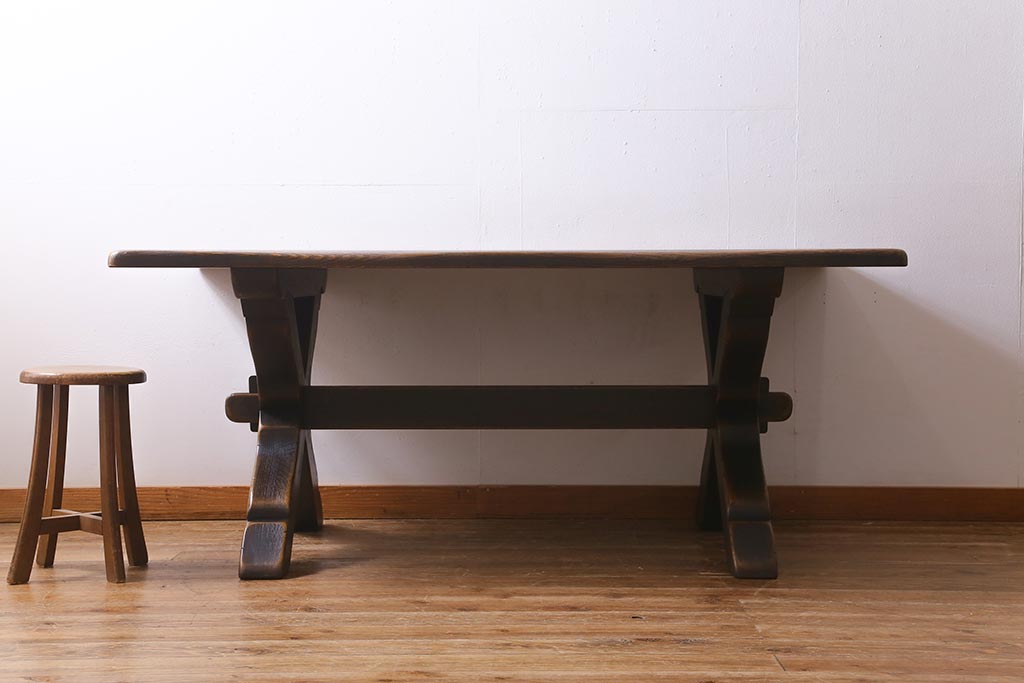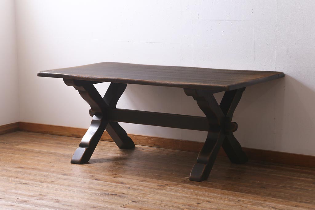 中古 飛騨産業 PROVINCIAL(プロヴィンシャル・プロビンシャル) カントリーなタバーンテーブル・Xフレーム(ダイニングテーブル)(定価約44万8千円)(R-039504)