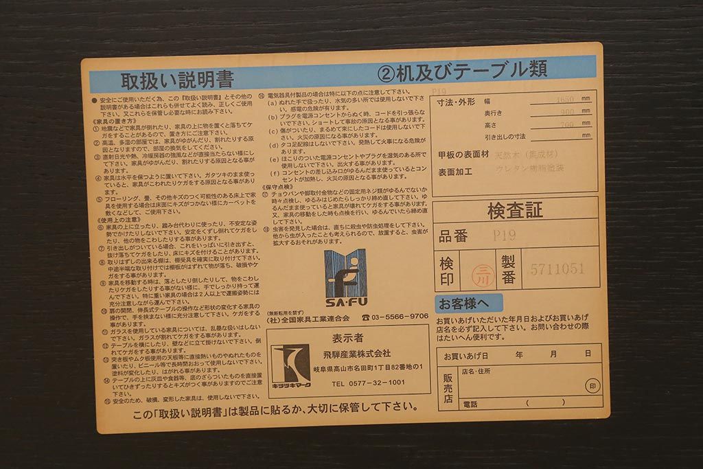 国産家具ブランド飛騨産業のタバーンテーブルです。
