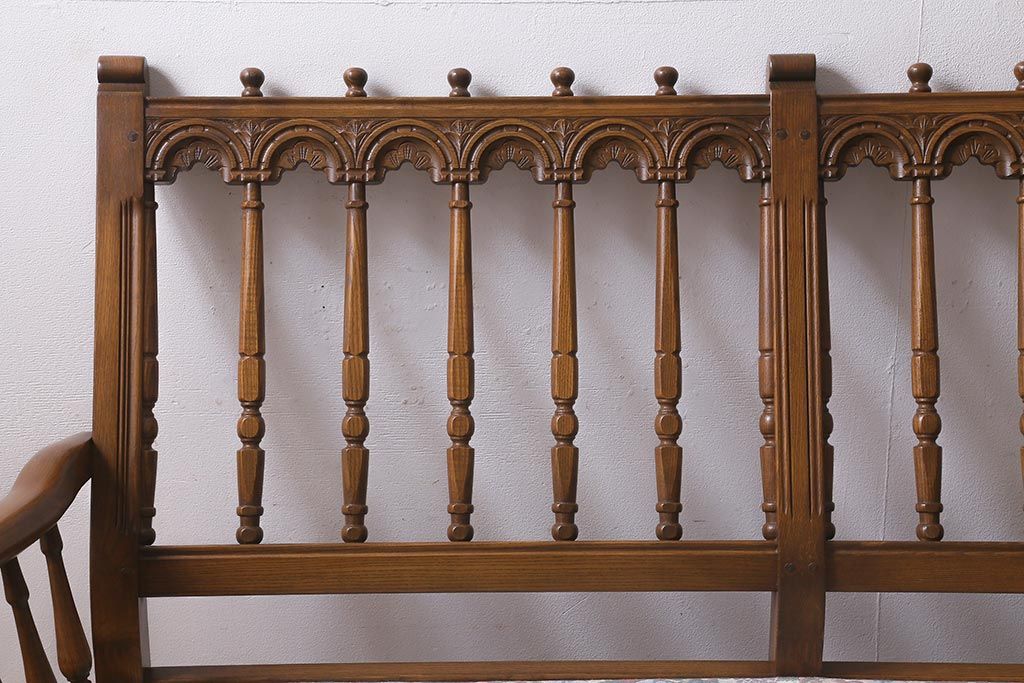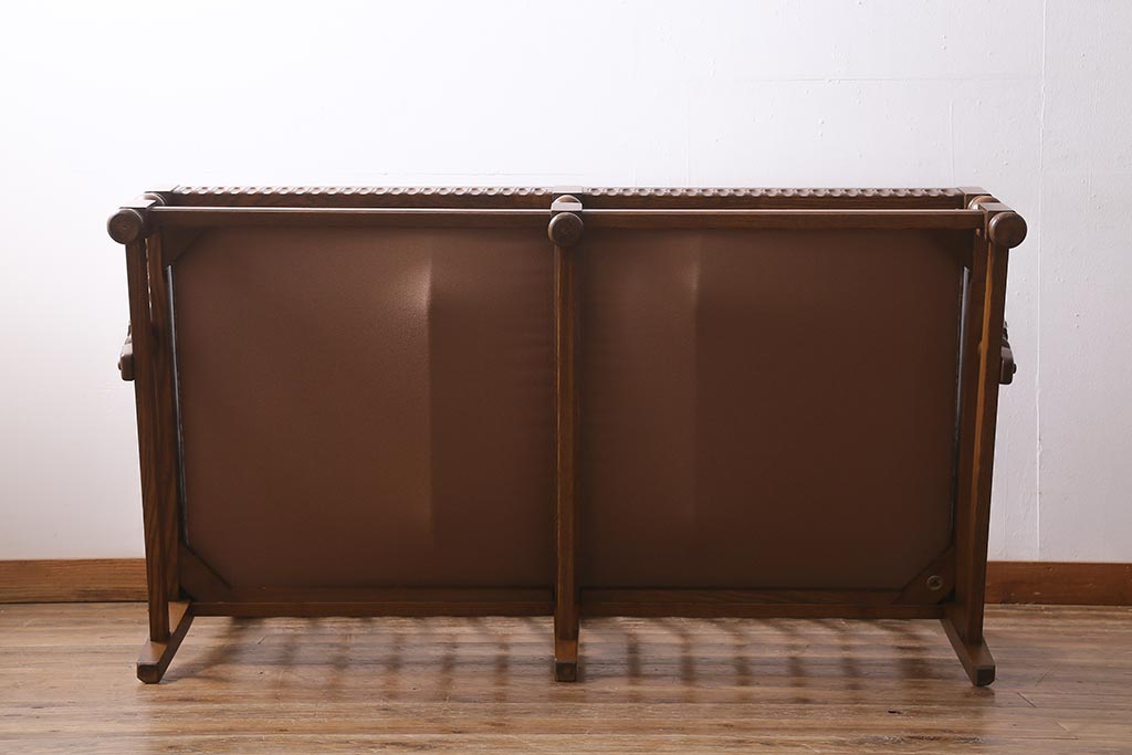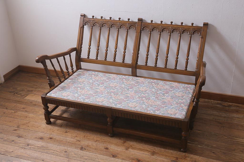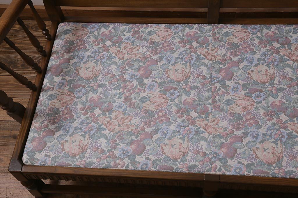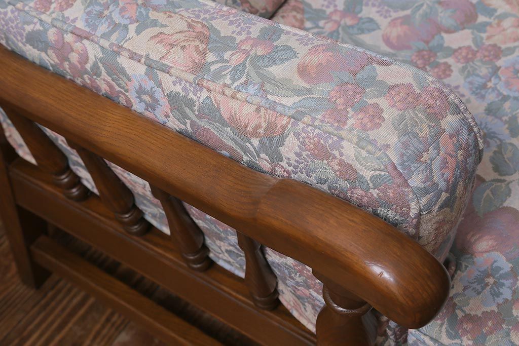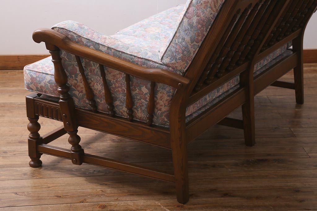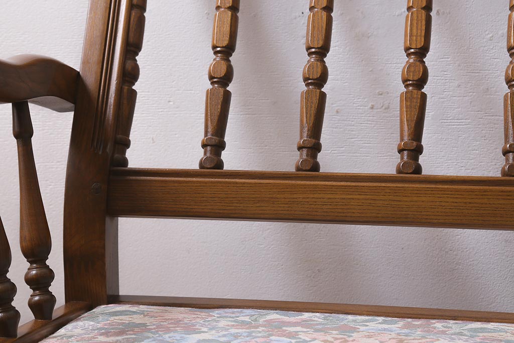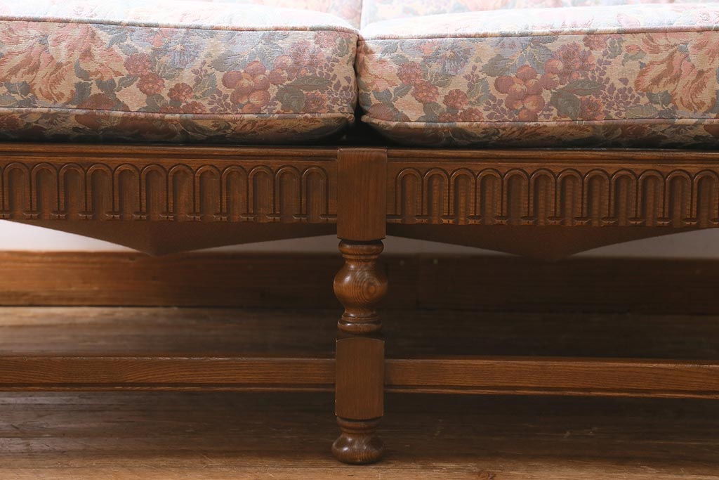 ヴィンテージ家具 美品 ERCOL(アーコール) York Minster(ヨーク・ミンスター) 淡い色味の花柄ファブリックがお洒落な2人掛けソファ(アームソファ、ラブソファ、ビンテージ)(R-039470)