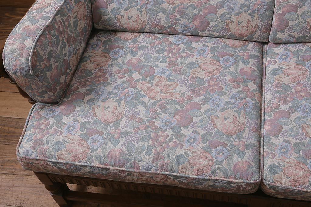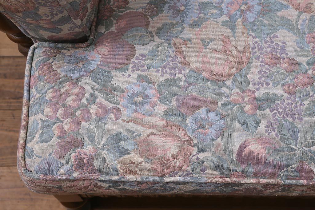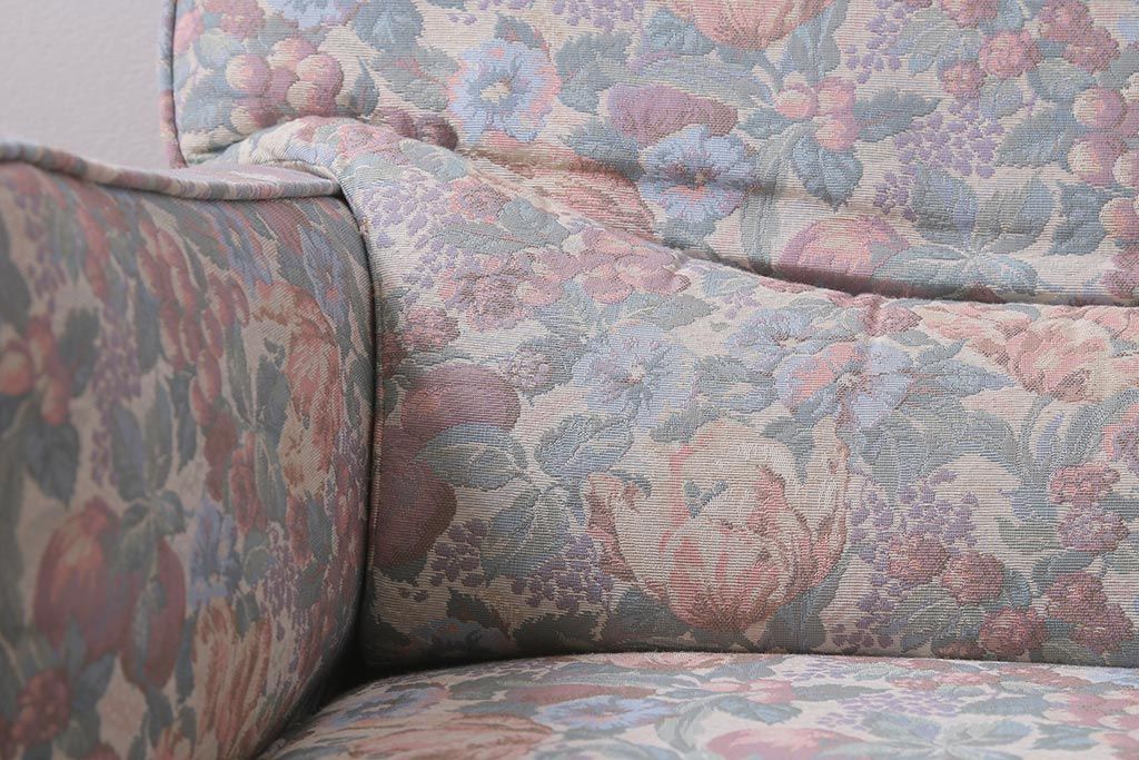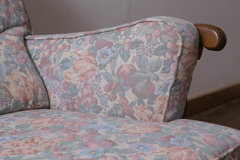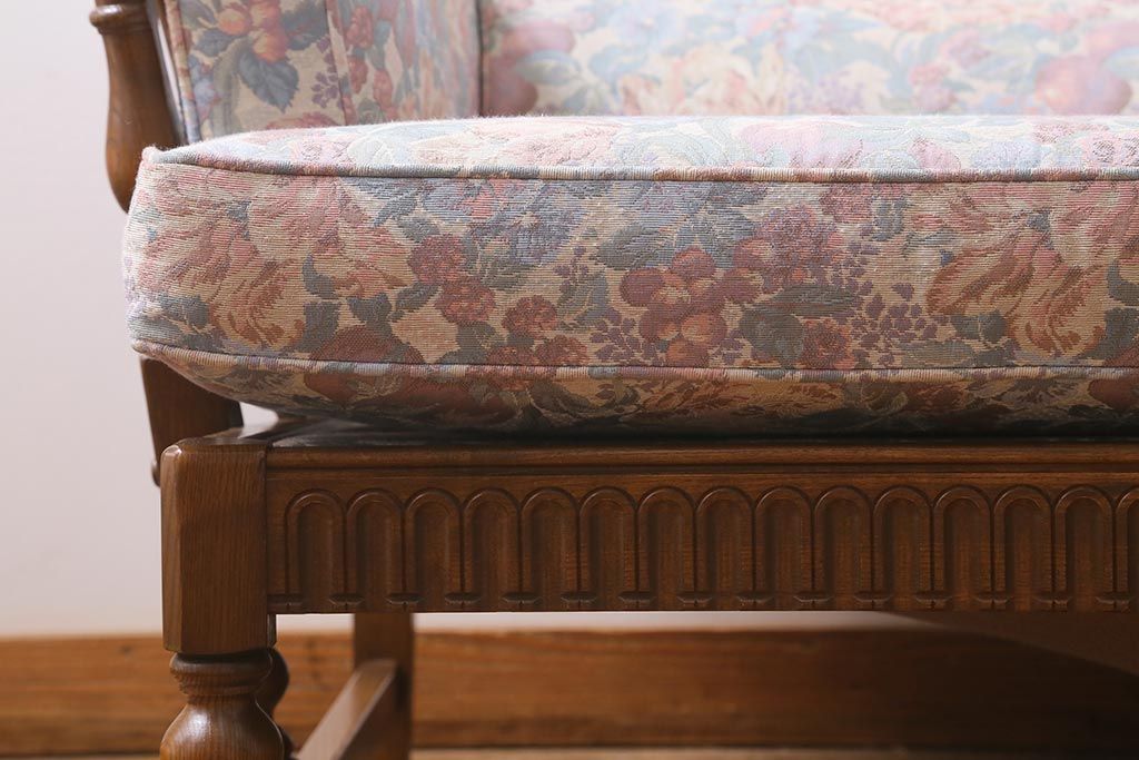 ソファ> 2人掛けソファ > ヴィンテージ家具 美品 ERCOL(アーコール) York Minster(ヨーク・ミンスター) 淡い色味の花柄ファブリックがお洒落な2人掛けソファ(アームソファ、ラブソファ、ビンテージ)(R-039470)