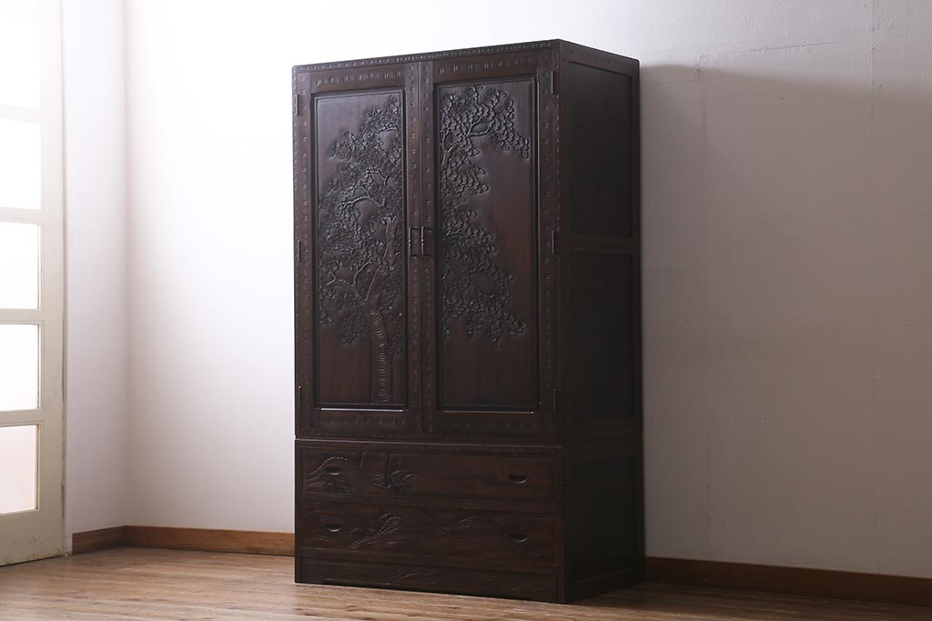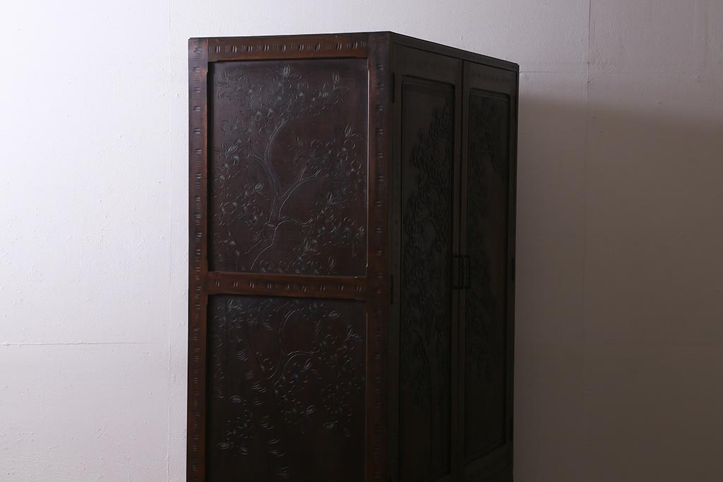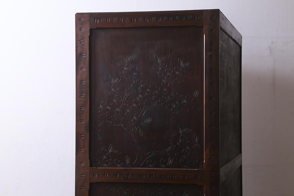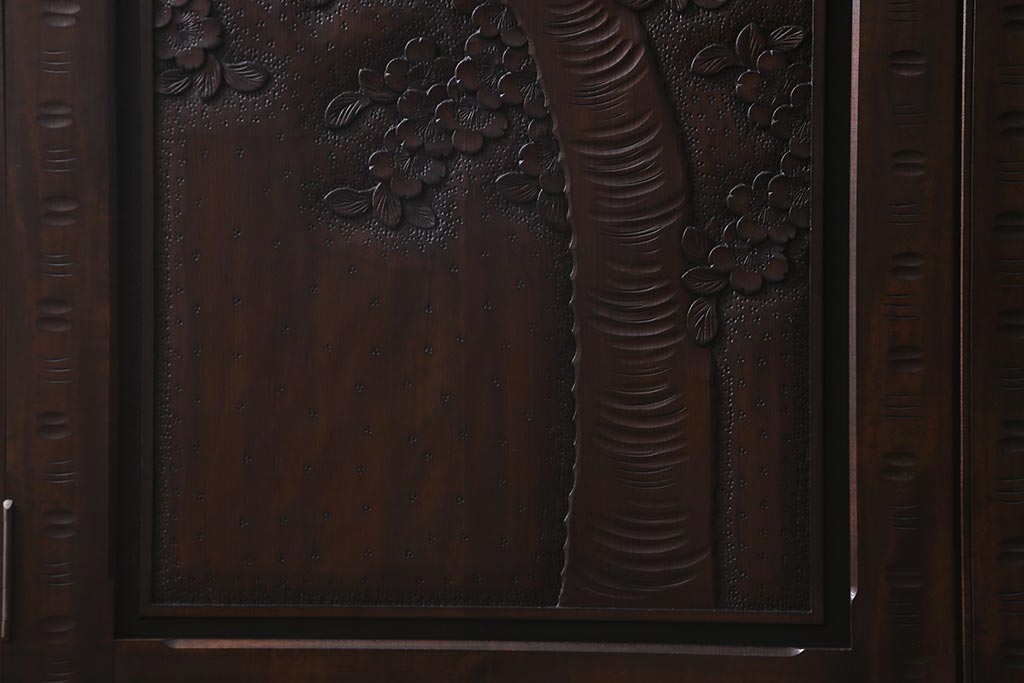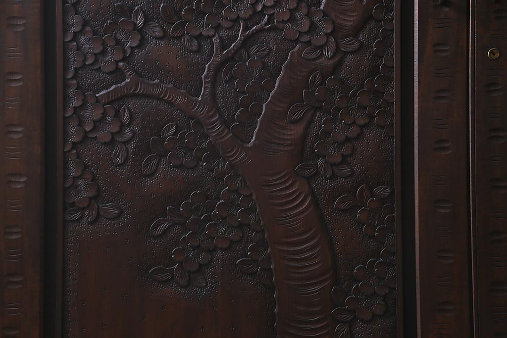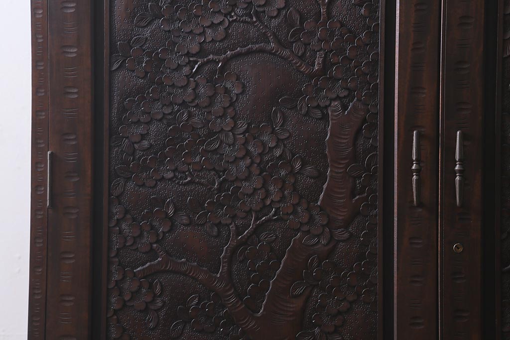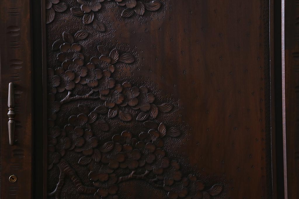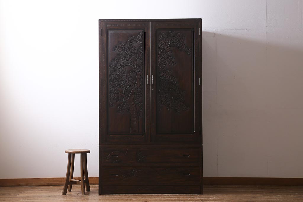 ワードローブ・ロッカー> ワードローブ > ビンテージ家具 中古 伝統工芸 軽井沢彫り 桜モチーフの意匠が魅力的なワードローブ(洋服タンス、チェスト)(R-039543)