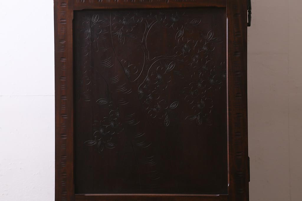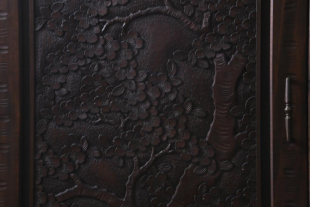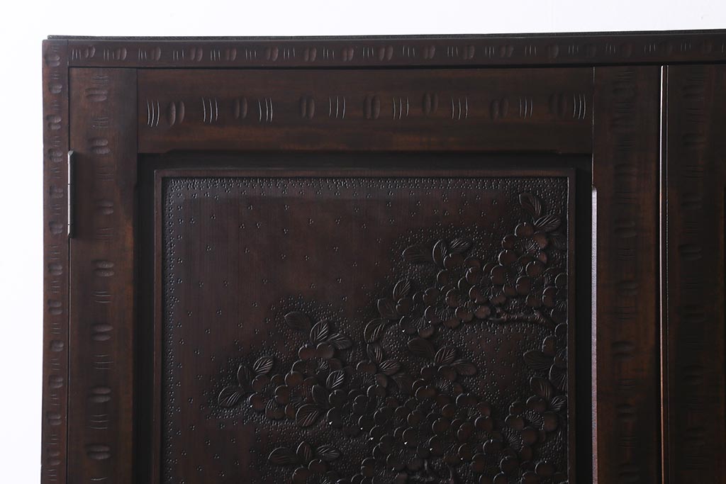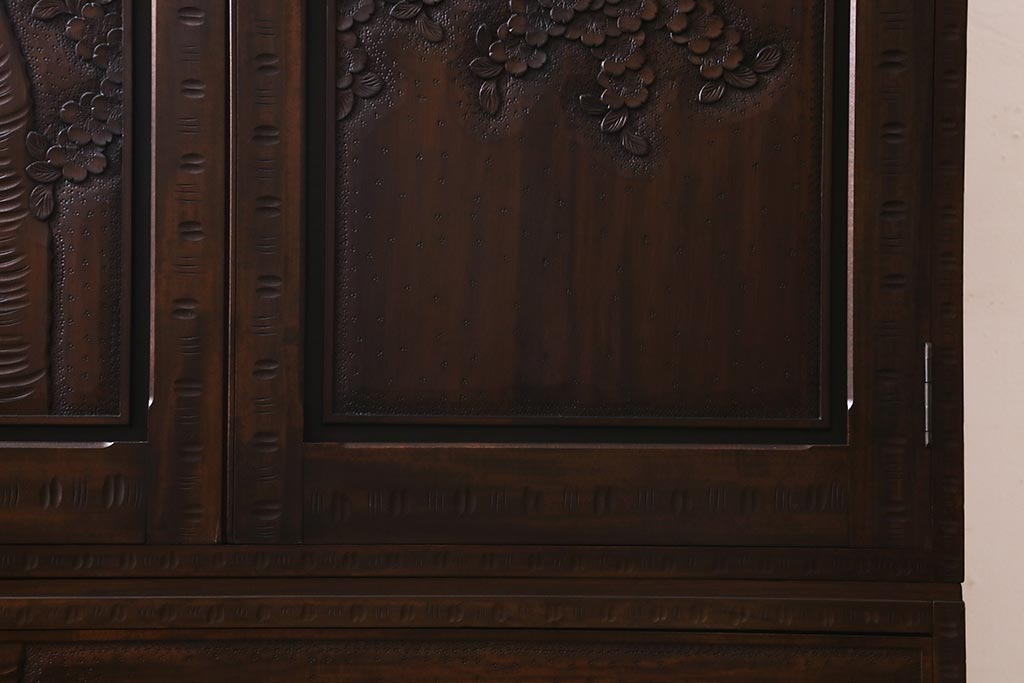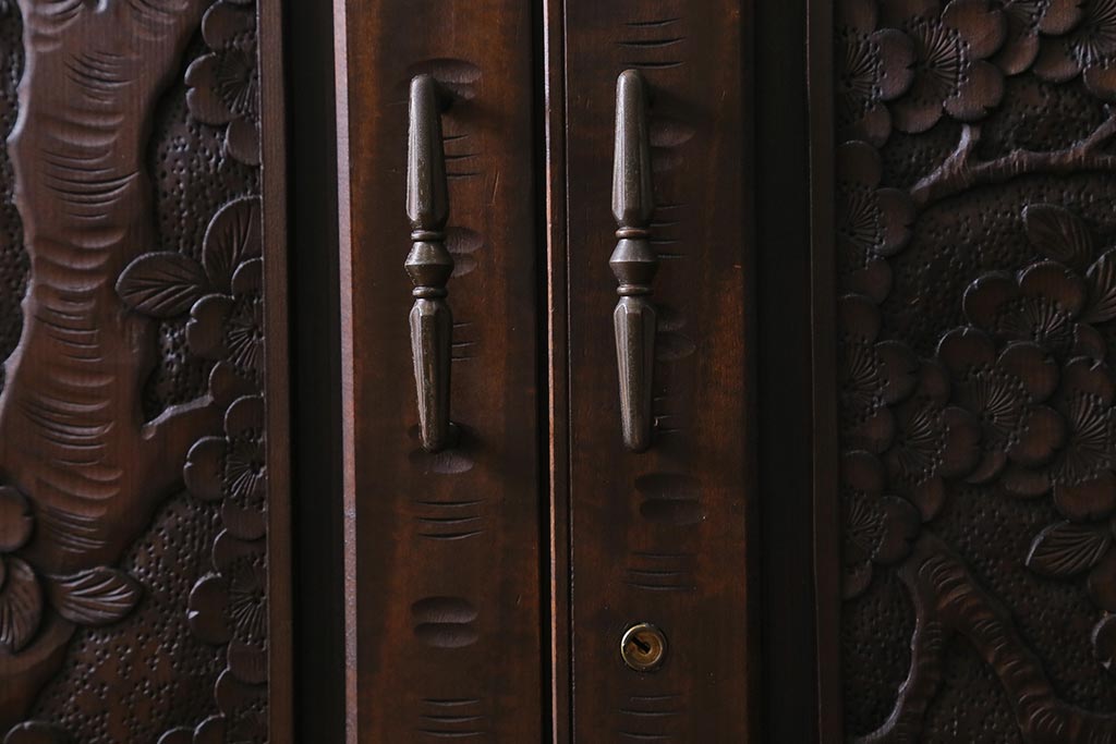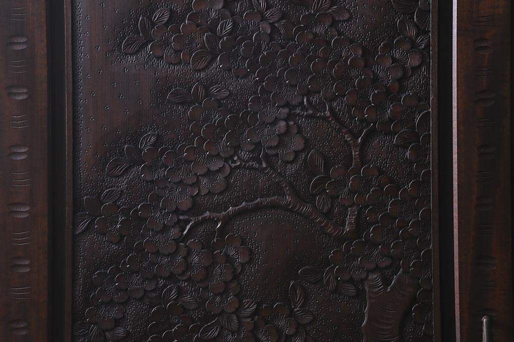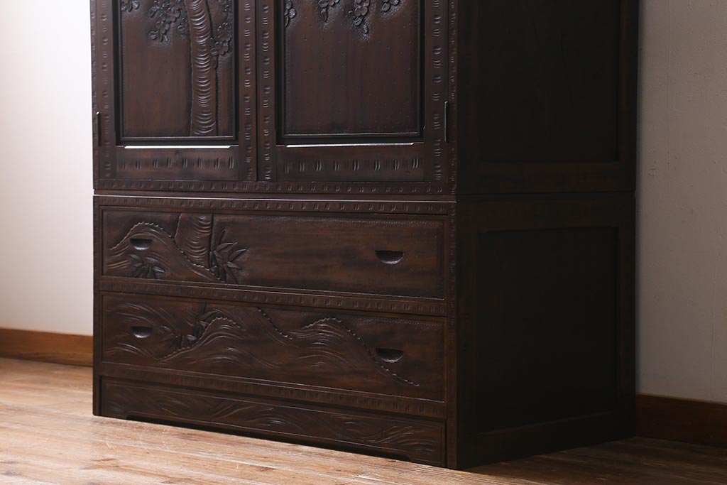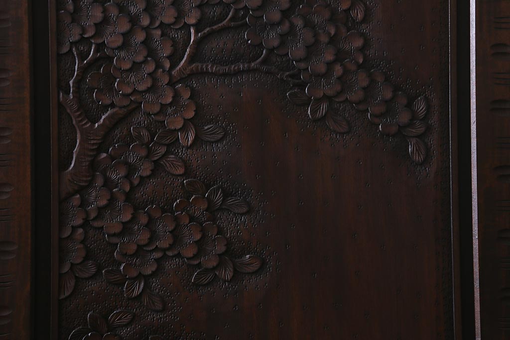 ワードローブ・ロッカー> ワードローブ > ビンテージ家具 中古 伝統工芸 軽井沢彫り 桜モチーフの意匠が魅力的なワードローブ(洋服タンス、チェスト)(R-039543)