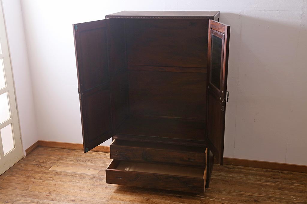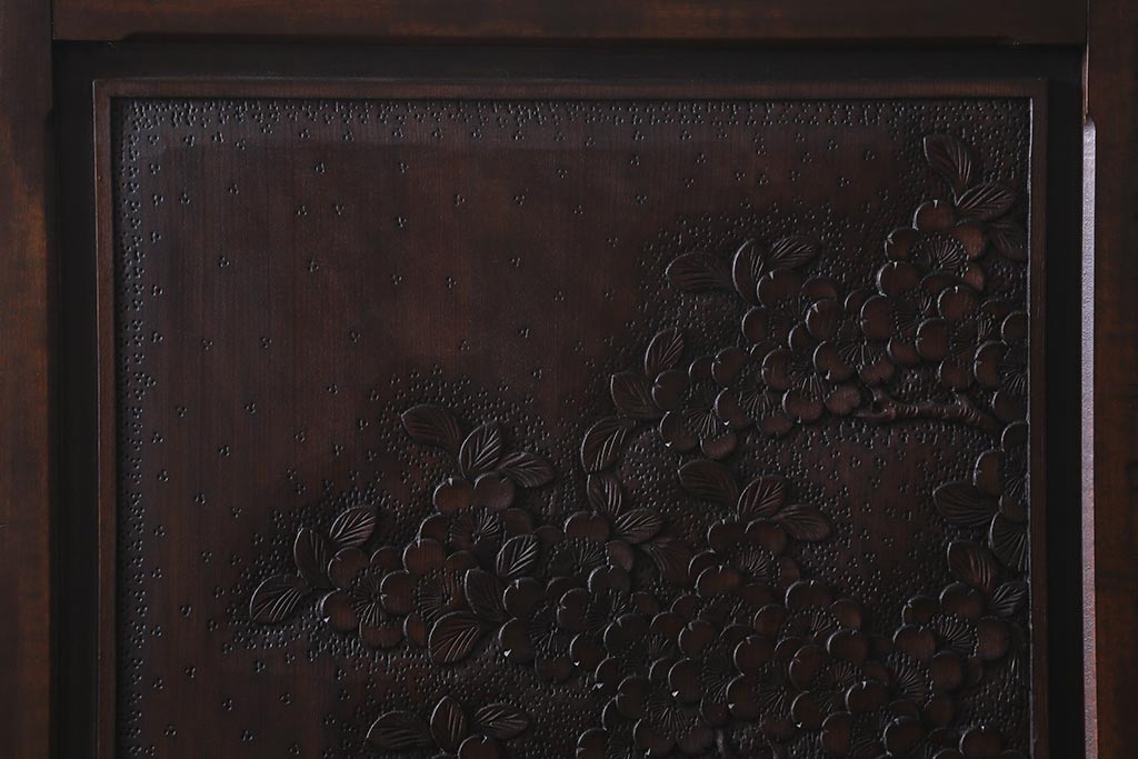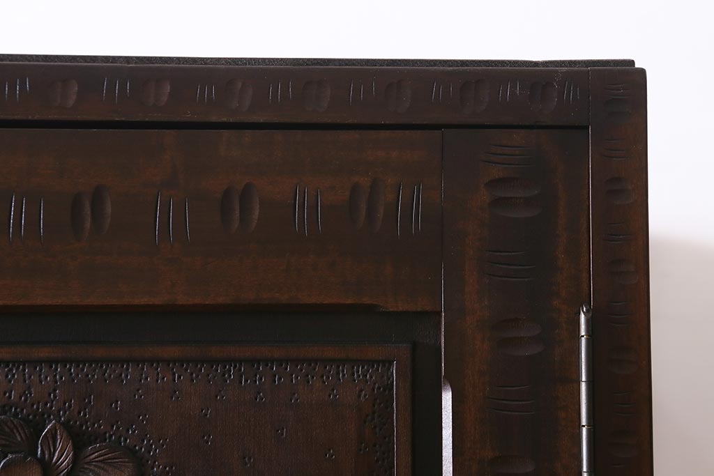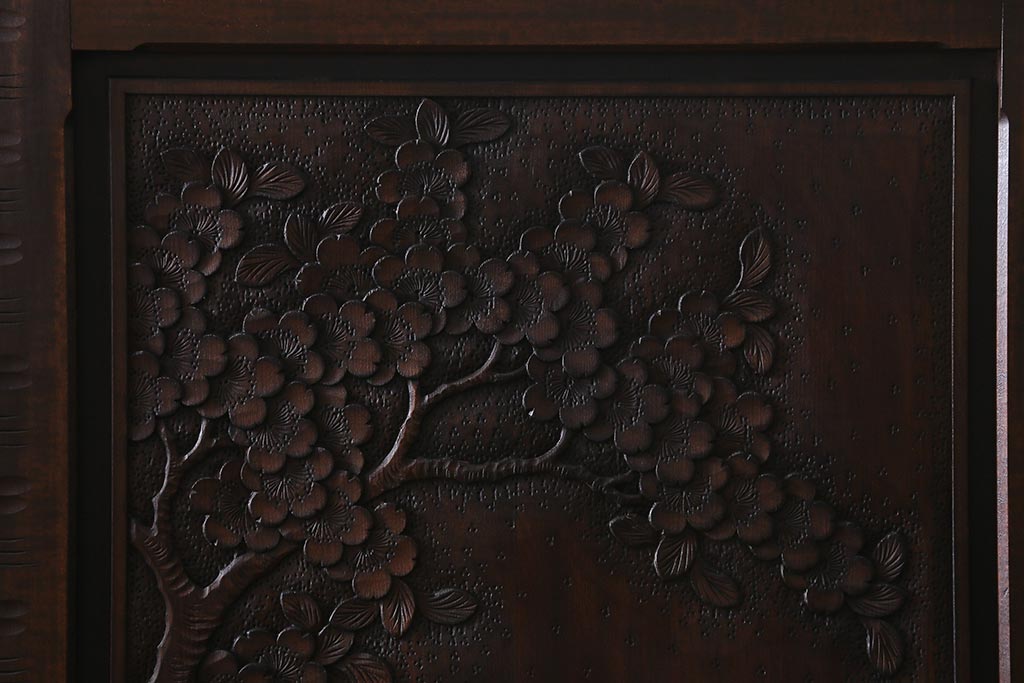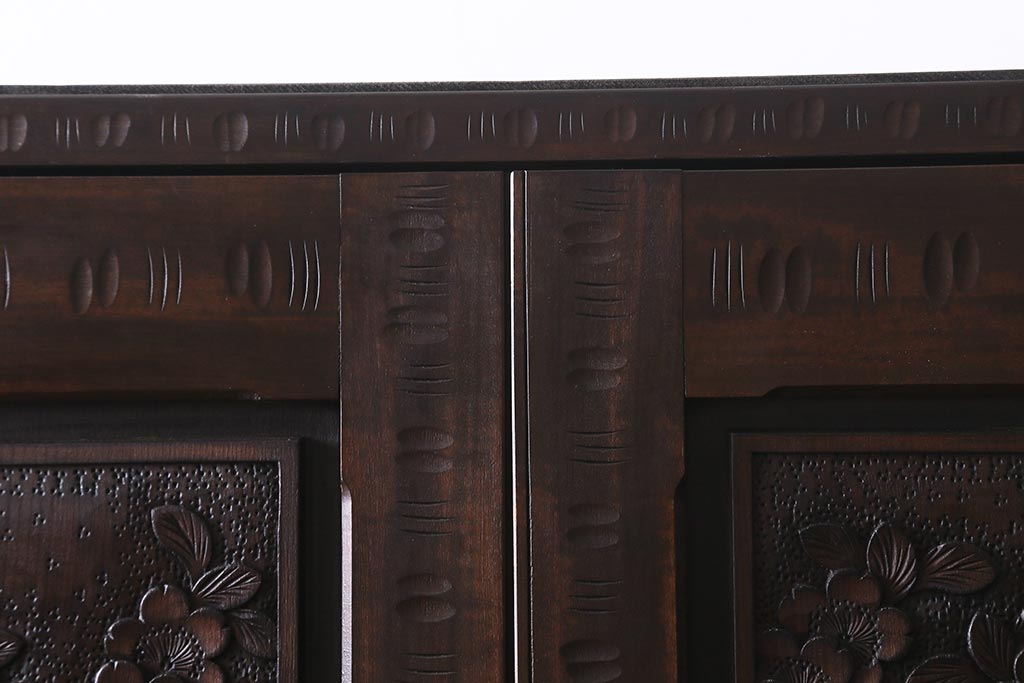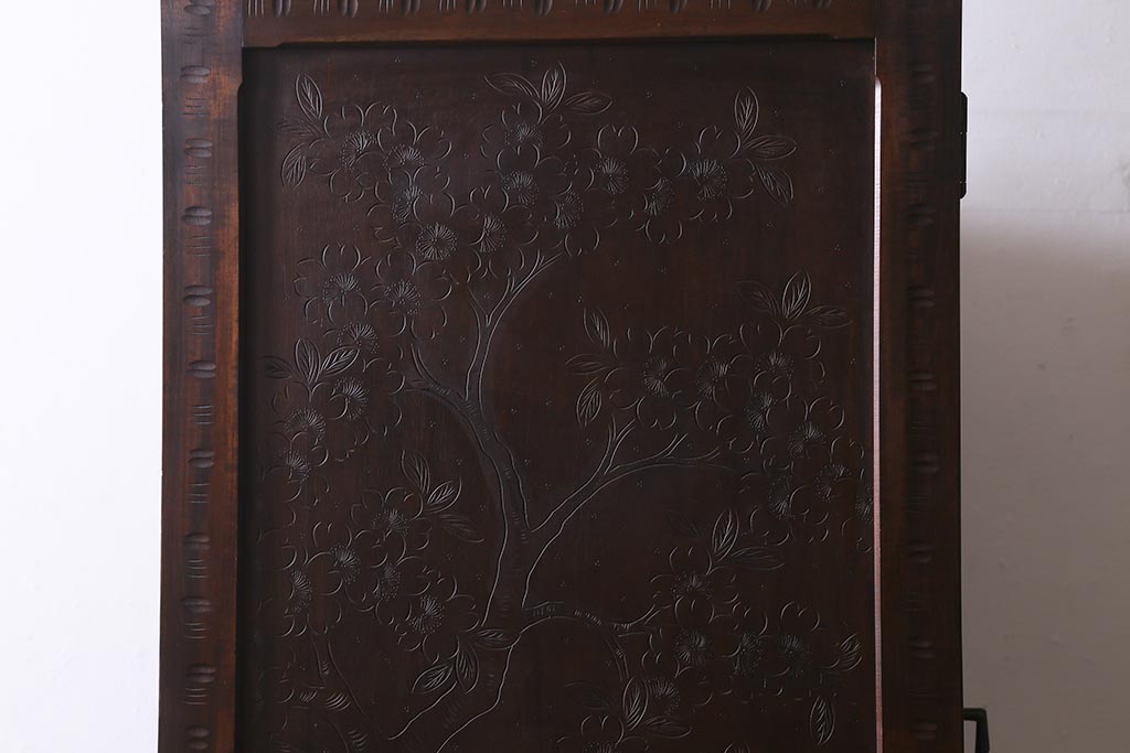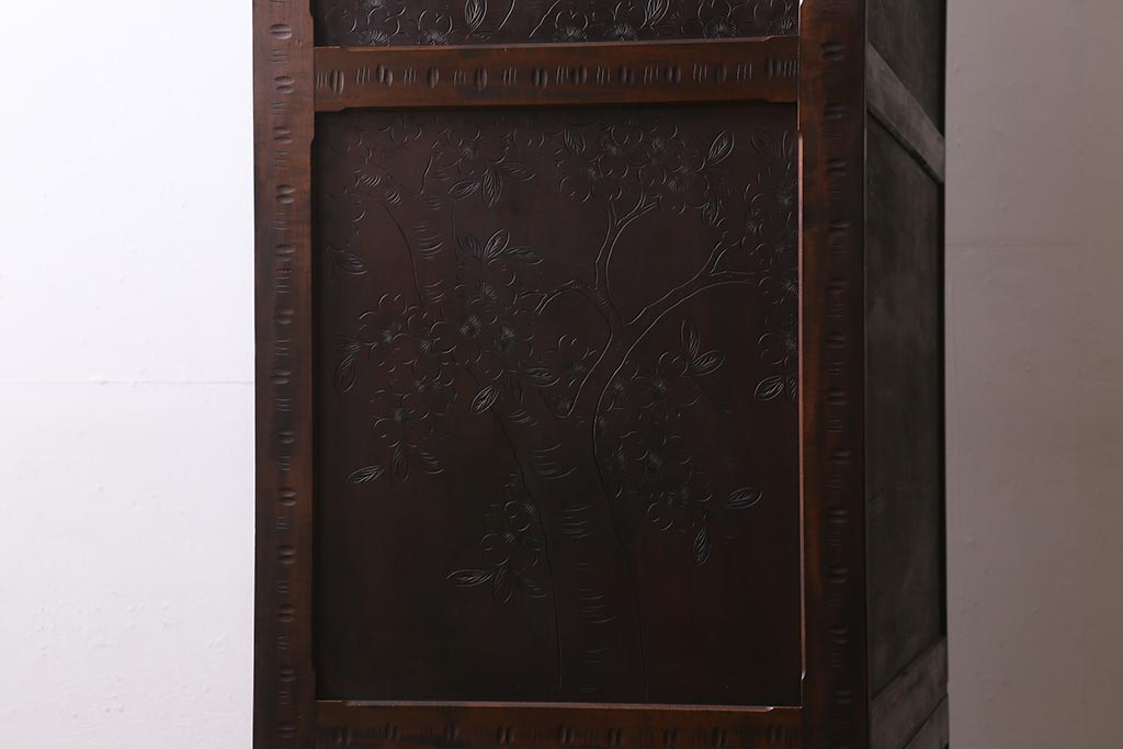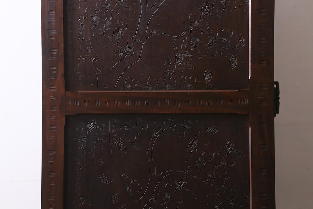 ワードローブ・ロッカー> ワードローブ > ビンテージ家具 中古 伝統工芸 軽井沢彫り 桜モチーフの意匠が魅力的なワードローブ(洋服タンス、チェスト)(R-039543)