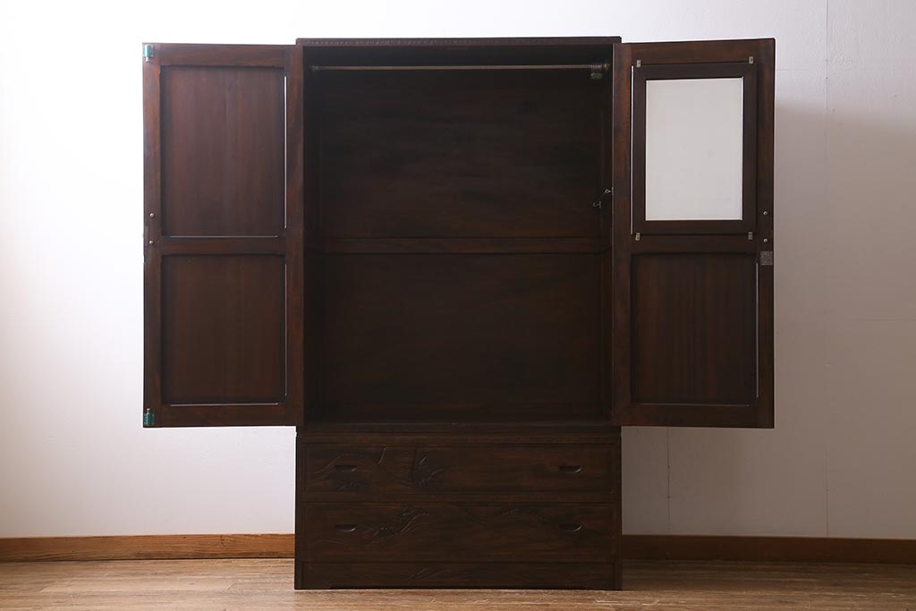 ビンテージ家具 中古 伝統工芸 軽井沢彫り 桜モチーフの意匠が魅力的なワードローブ(洋服タンス、チェスト)(R-039543)です。