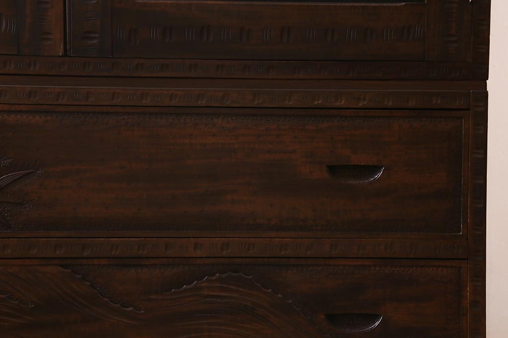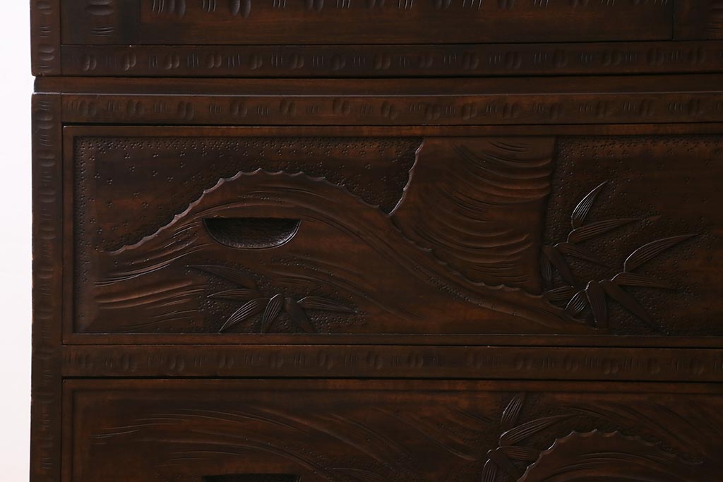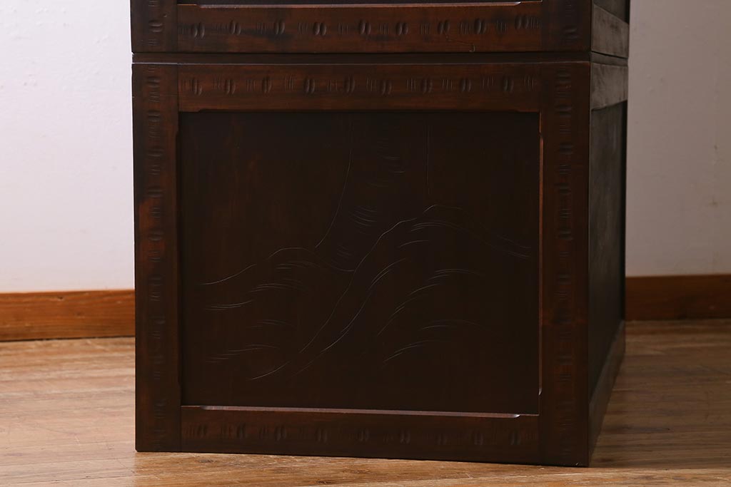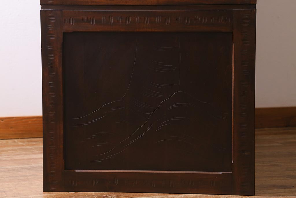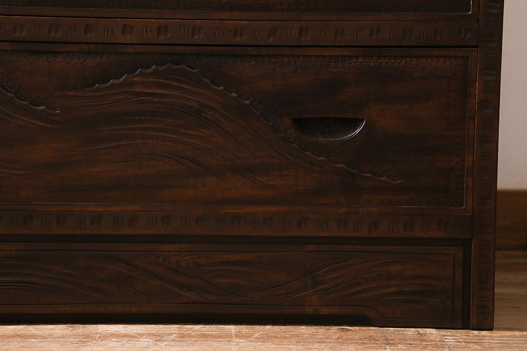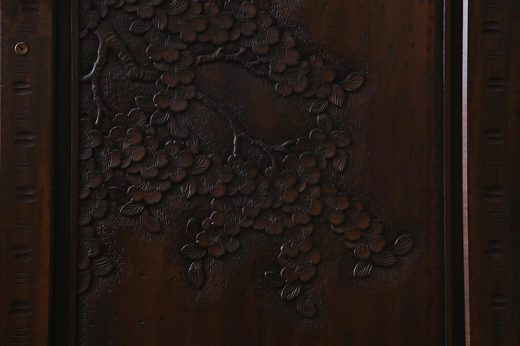 民芸家具 > ビンテージ家具 中古 伝統工芸 軽井沢彫り 桜モチーフの意匠が魅力的なワードローブ(洋服タンス、チェスト)(R-039543)