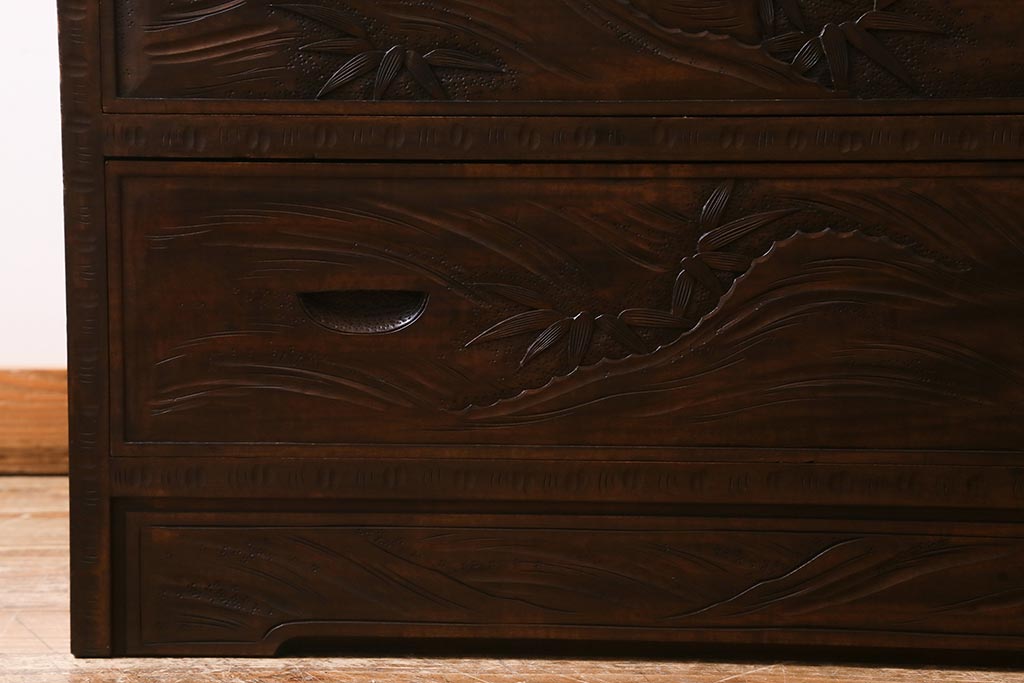 ビンテージ家具 中古 伝統工芸 軽井沢彫り 桜モチーフの意匠が魅力的なワードローブ(洋服タンス、チェスト)(R-039543)