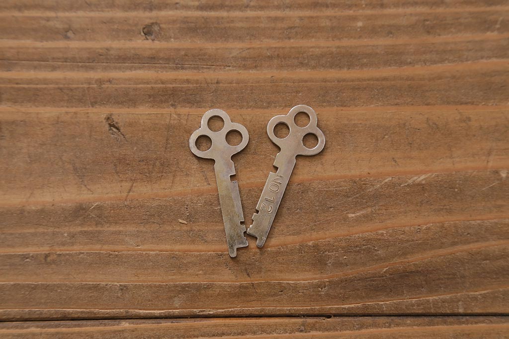 鍵は付属します。画像にありますように、袋に入れお付けします。スムーズに動くように調整していますが、あくまでも古いものや中古品ですので、長期の使用保証は出来かねます。ご購入後不具合が発生した場合は、当店でサポートさせていただきますので、お気軽にご相談くださいませ。