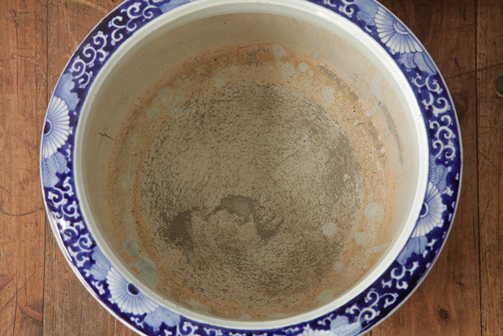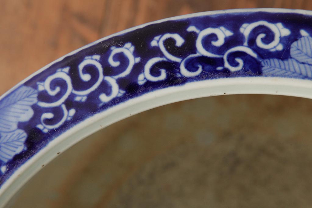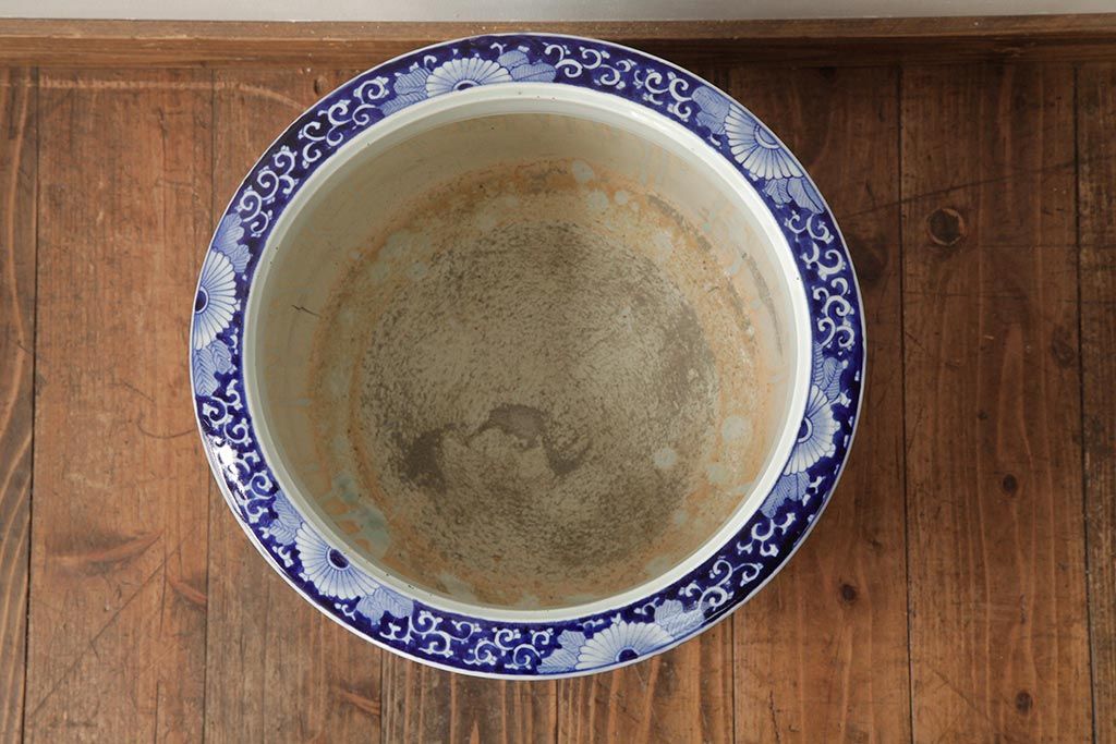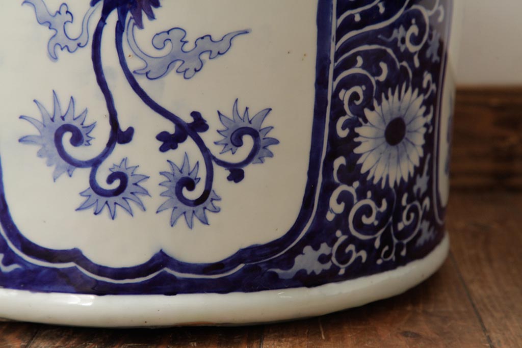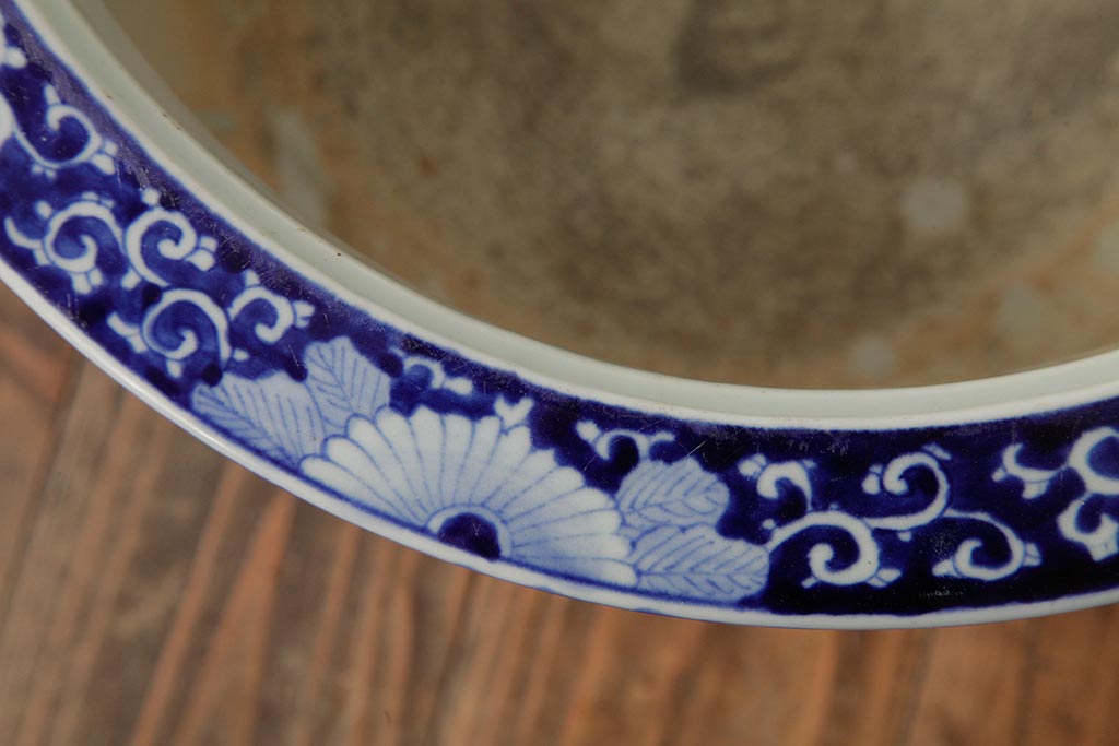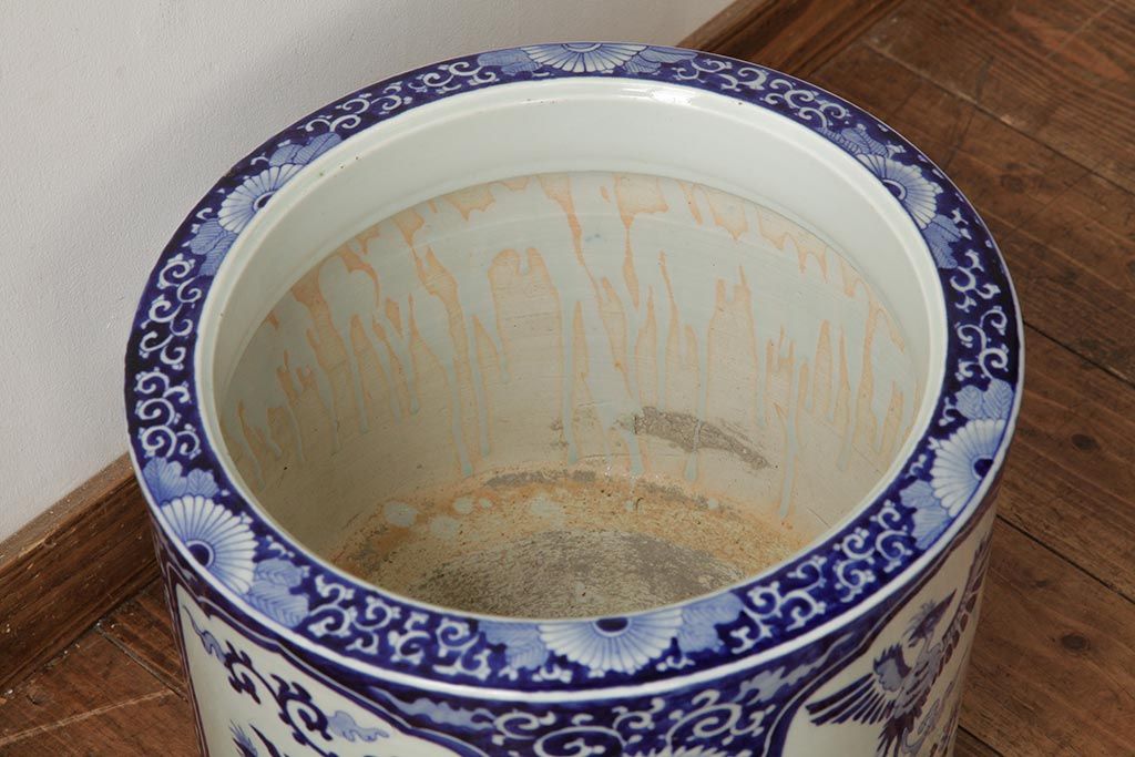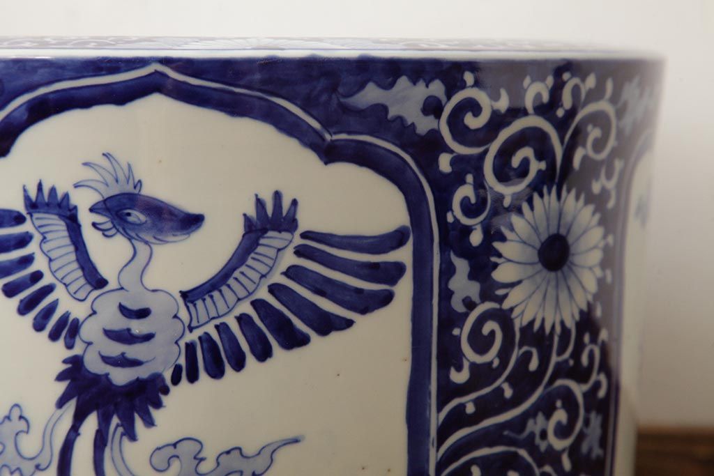 アンティーク雑貨 大正昭和初期 鳳凰の図が独特の雰囲気を醸し出す瀬戸火鉢(鉢カバー)(R-39478)