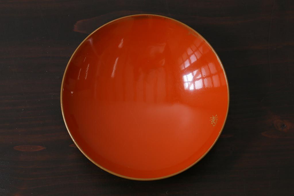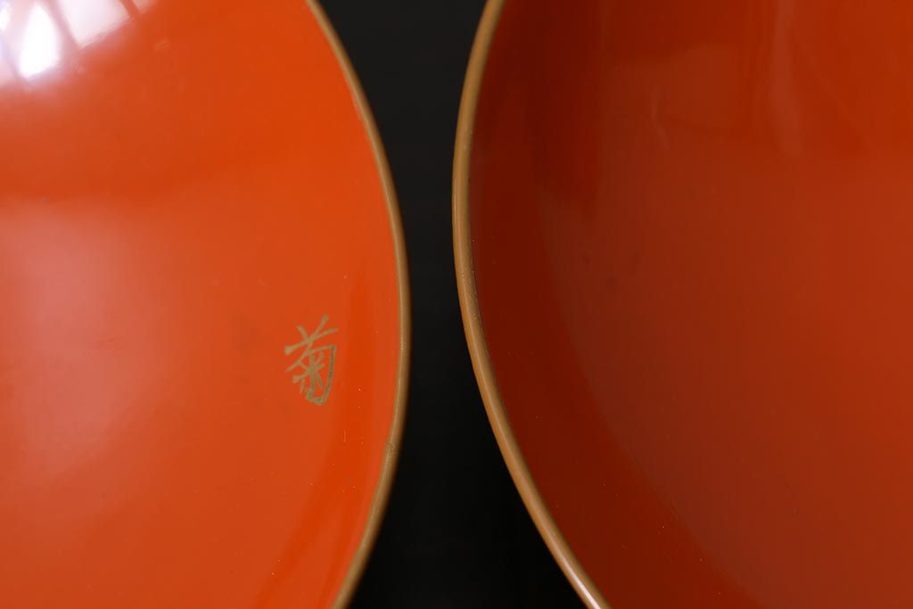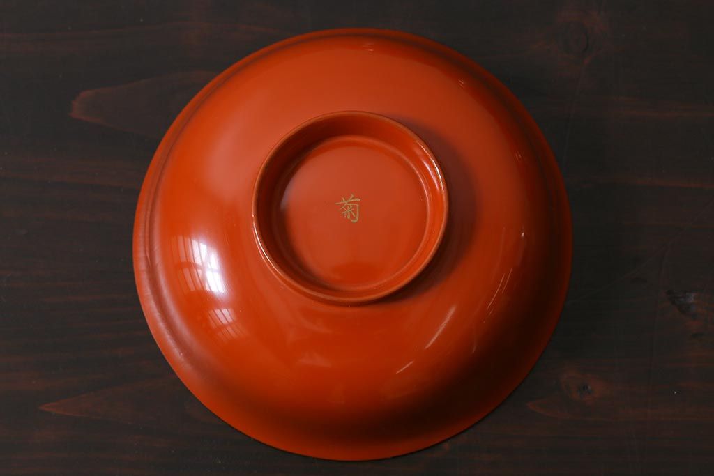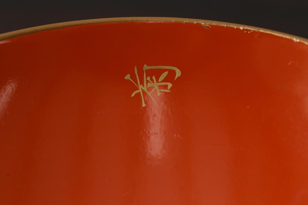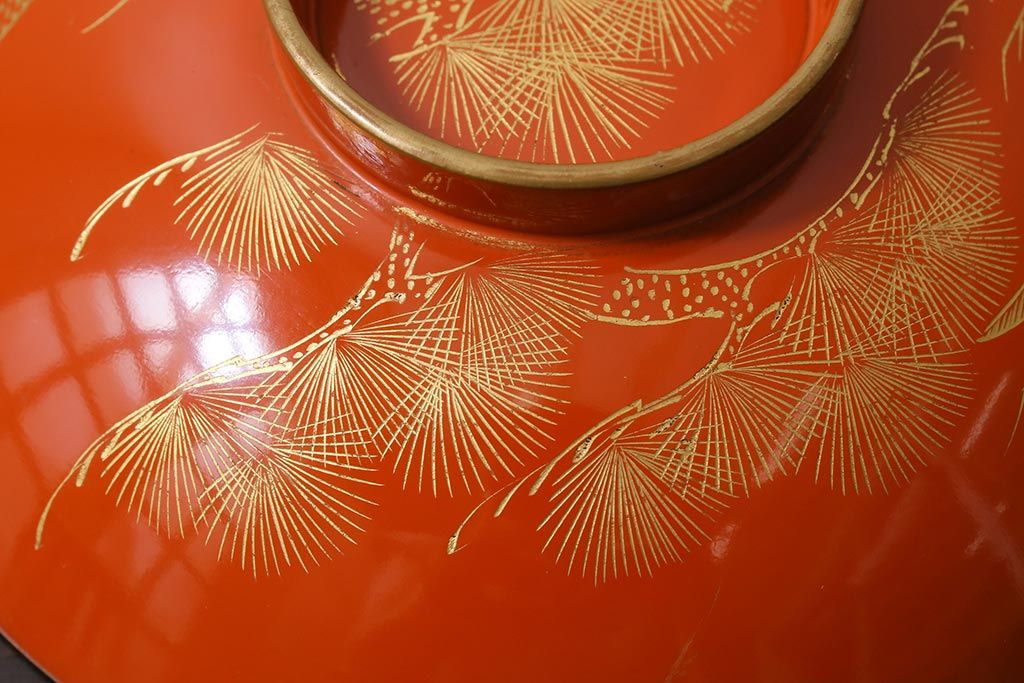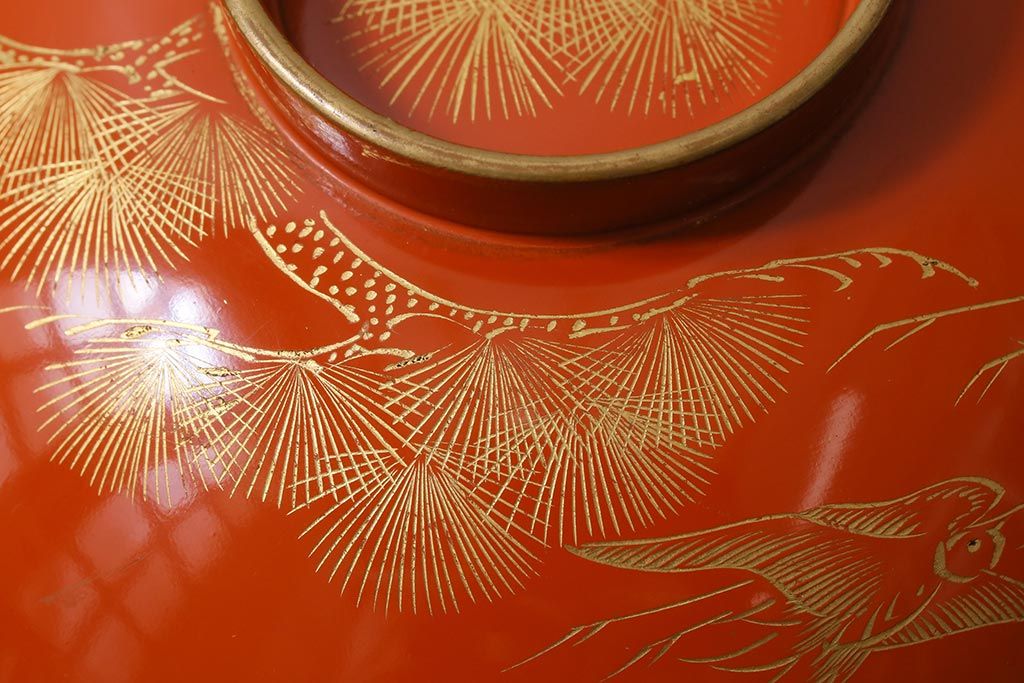 ラフジュ工房> 骨董・美術品> 骨董-漆器 > アンティーク雑貨 和製アンティーク 鶴・松 縁起の良い沈金蒔絵の木製椀5客セット(蓋付き椀、漆器、和食器)(R-039374)