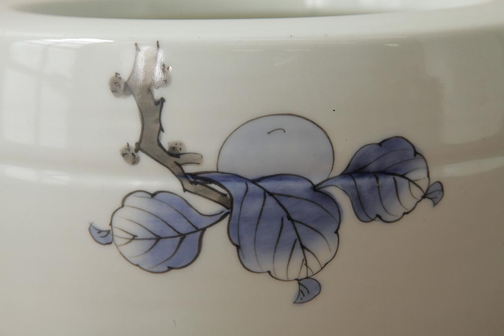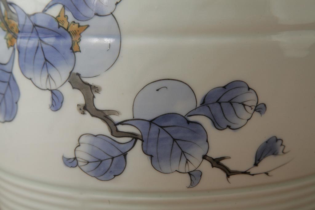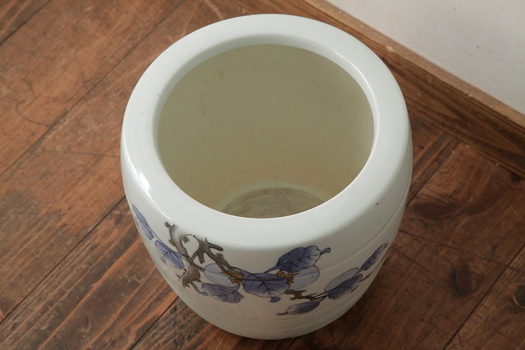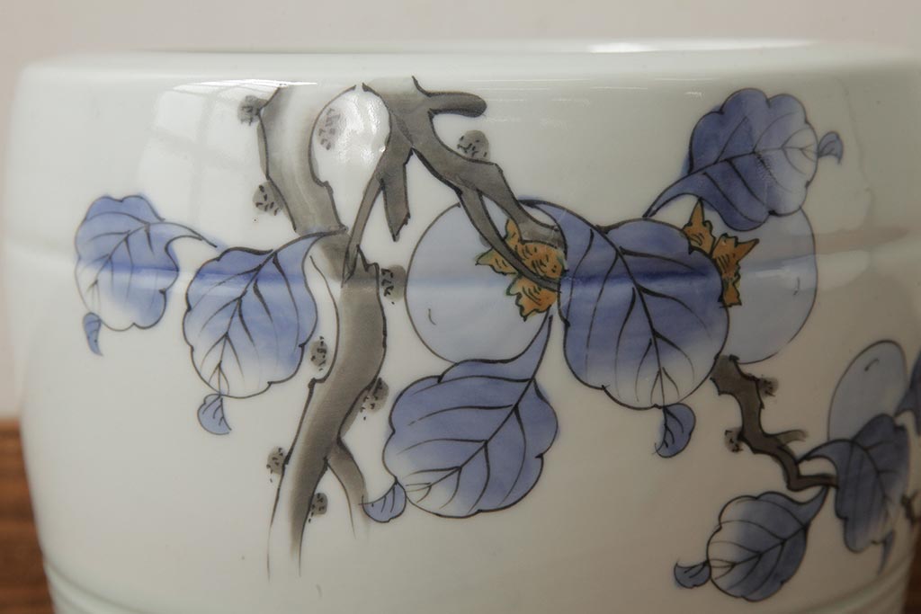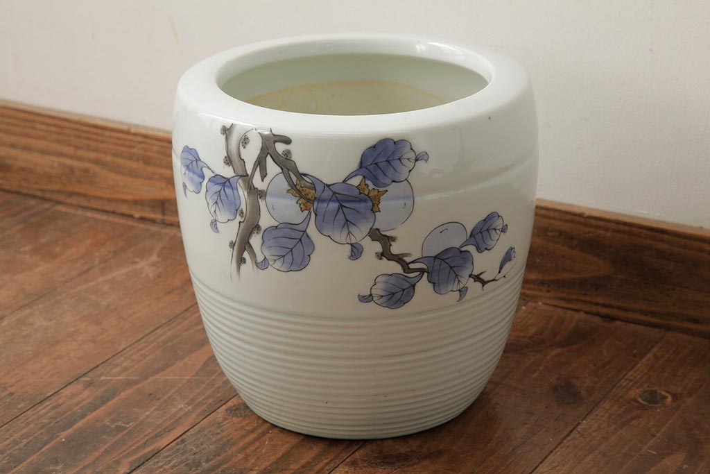 アンティーク雑貨 和製アンティーク 柿図 淡い色味が優しい雰囲気醸し出す瀬戸火鉢(鉢カバー)(R-039486)