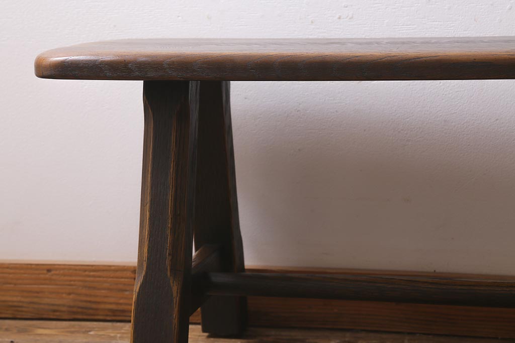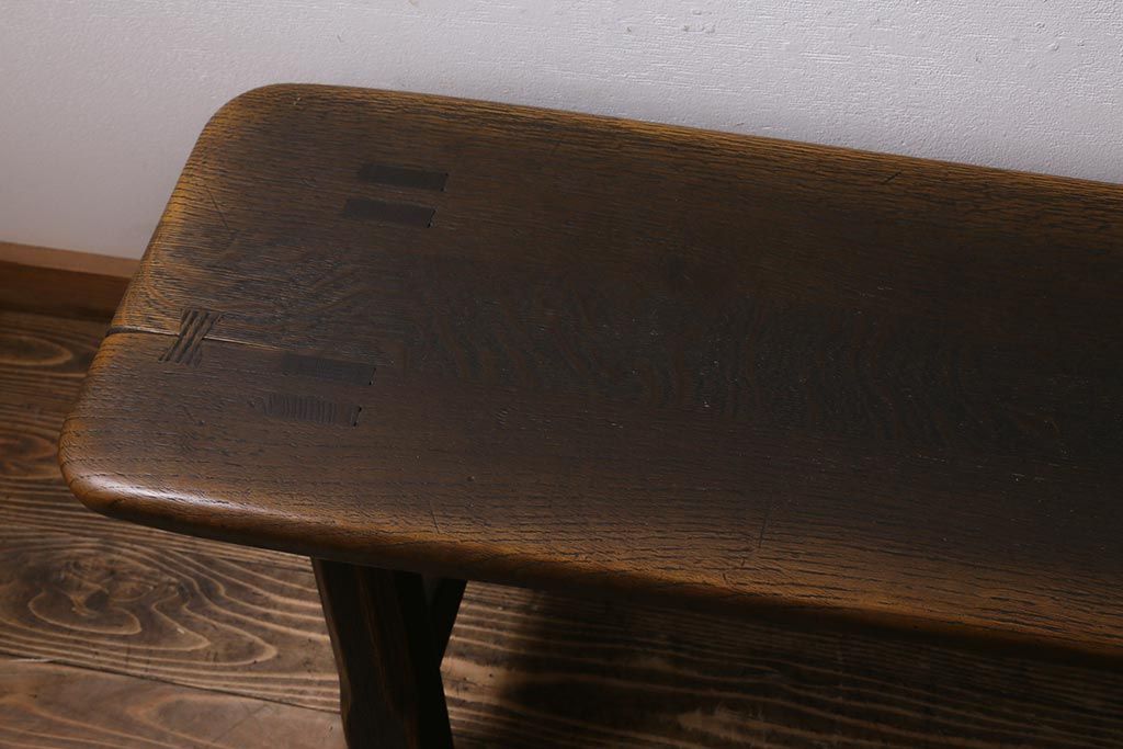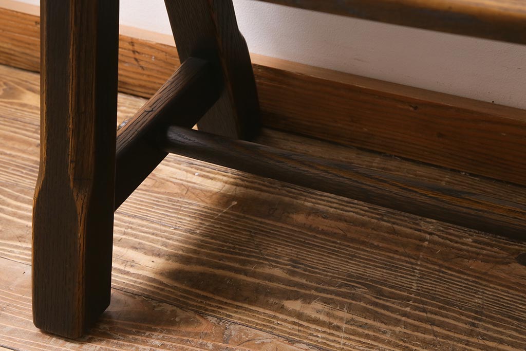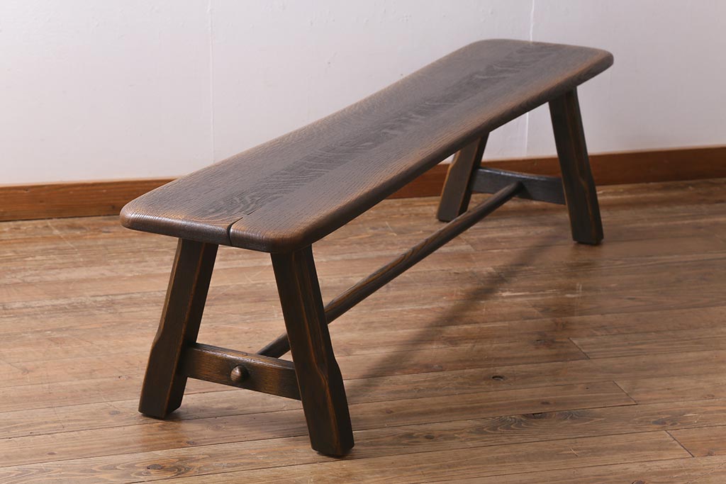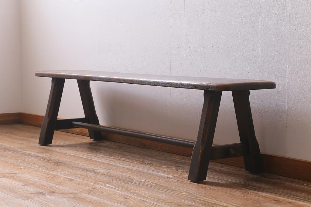 椅子・ベンチ> ベンチ > 中古 飛騨産業 キツツキ プロヴィンシャル 素朴な風合いが温かみのあるトリッスルベンチ(板座チェア、ダイニングベンチ、飾り台)(R-039505)