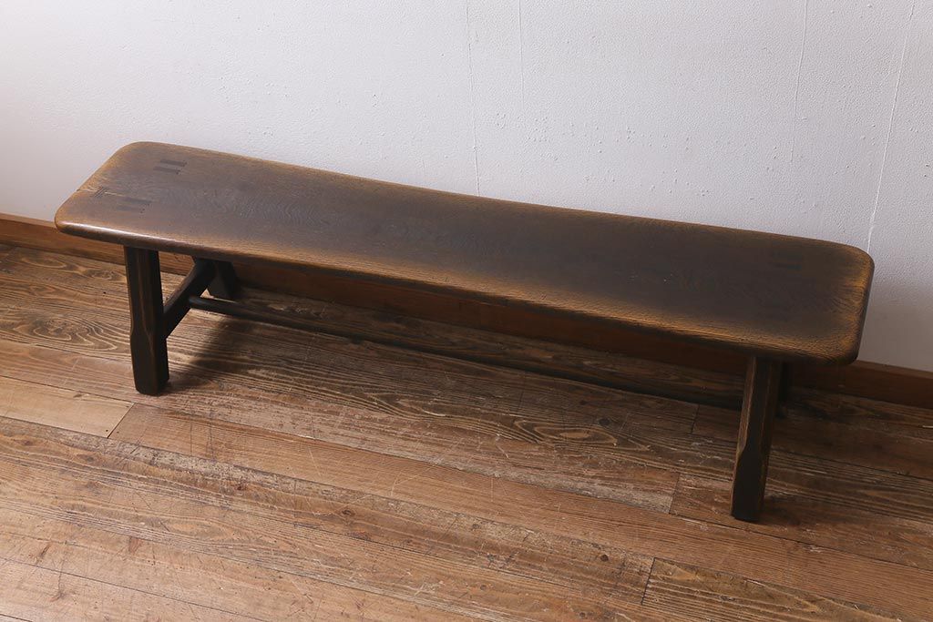 中古 飛騨産業 キツツキ プロヴィンシャル 素朴な風合いが温かみのあるトリッスルベンチ(板座チェア、ダイニングベンチ、飾り台)(R-039505)