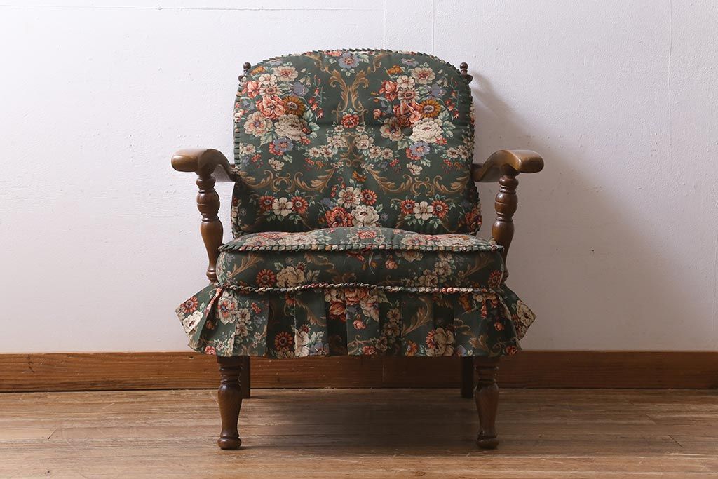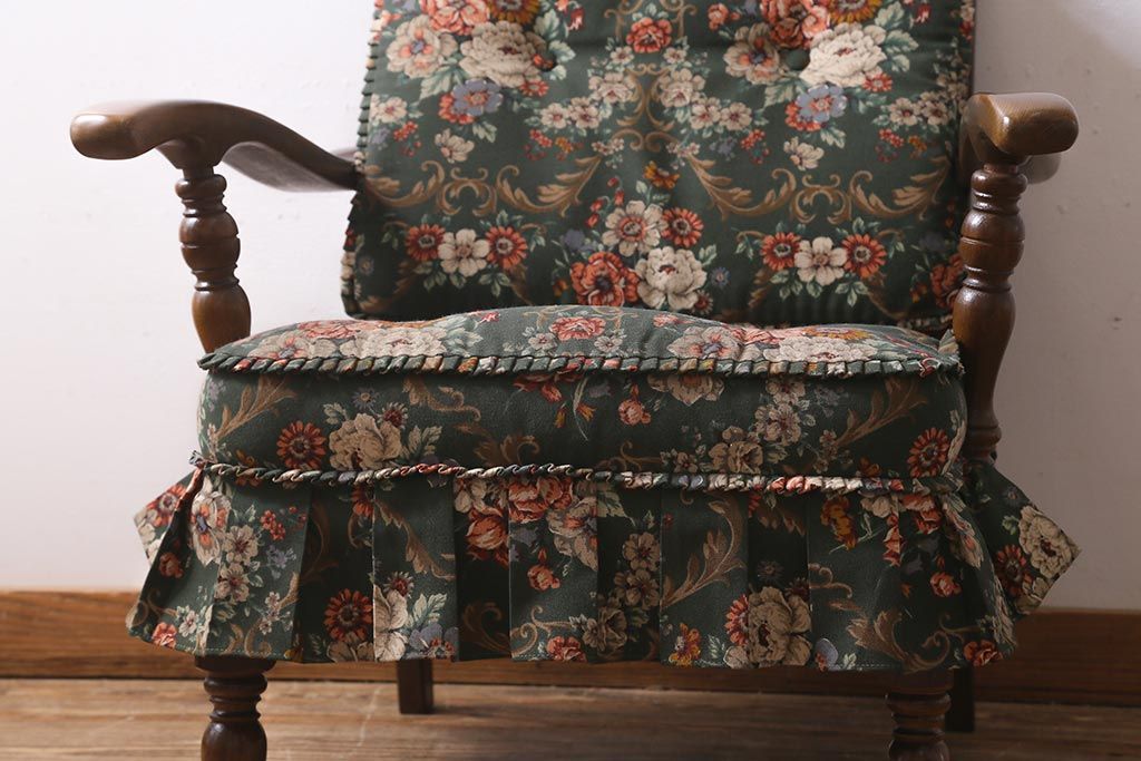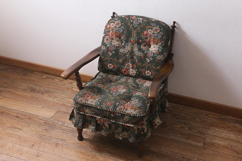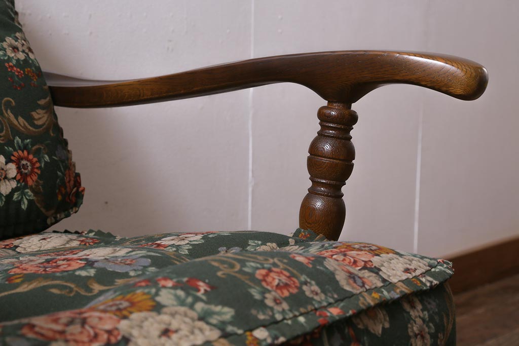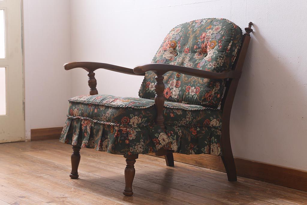 椅子・ベンチ> アームチェア > 中古 飛騨産業 キツツキ 穂高シリーズ 絵画のようなファブリックが素敵な1人掛けソファ(アームチェア)(R-039565)
