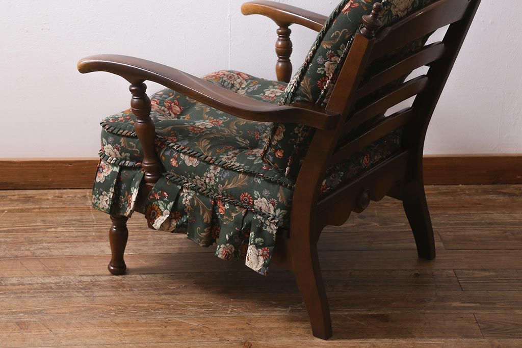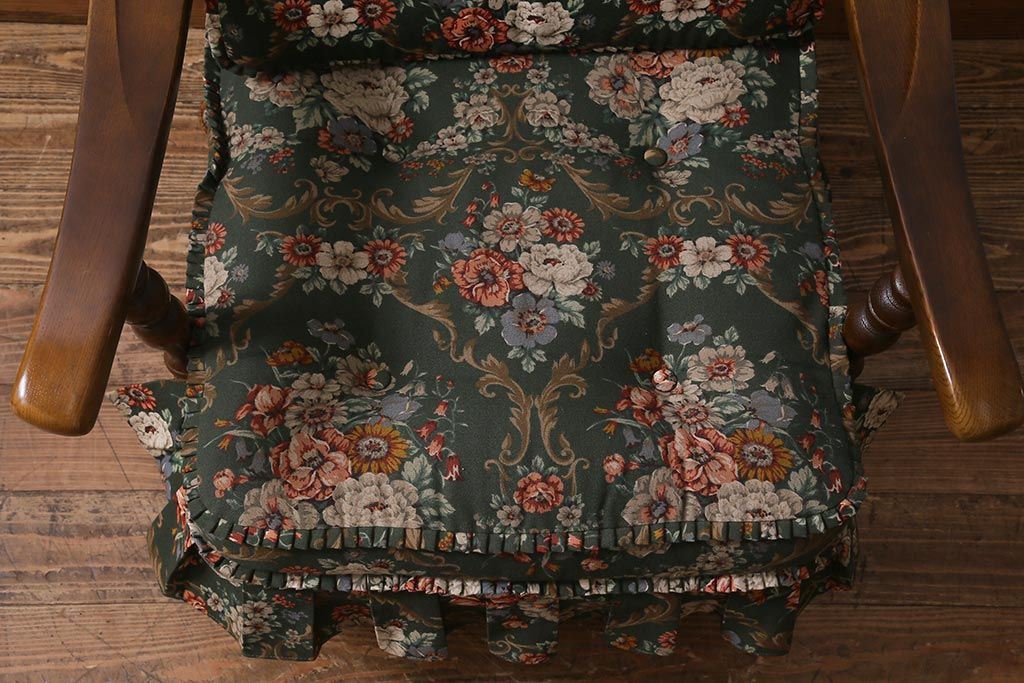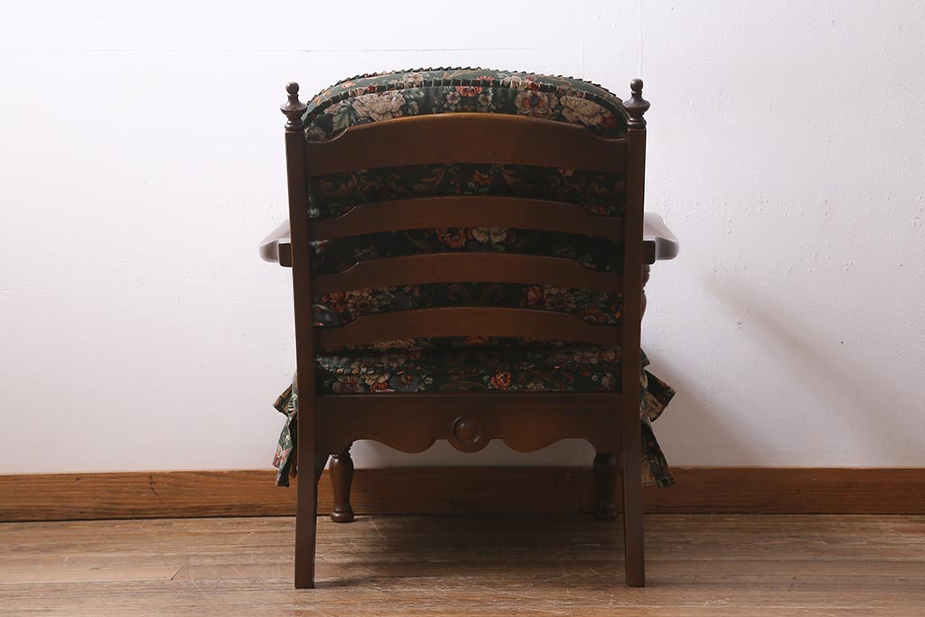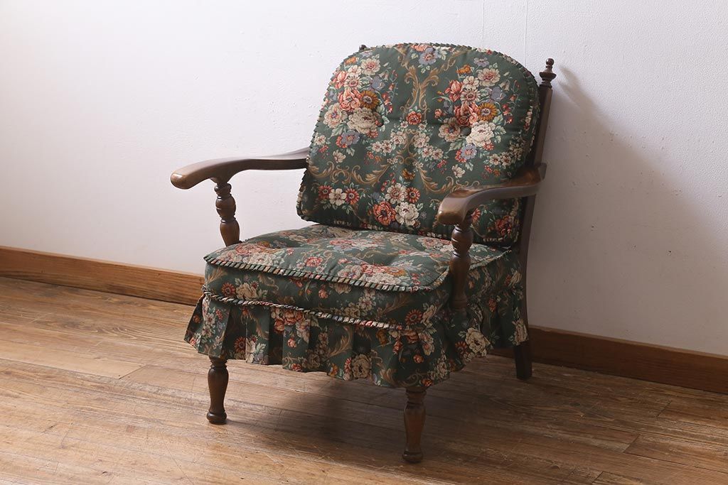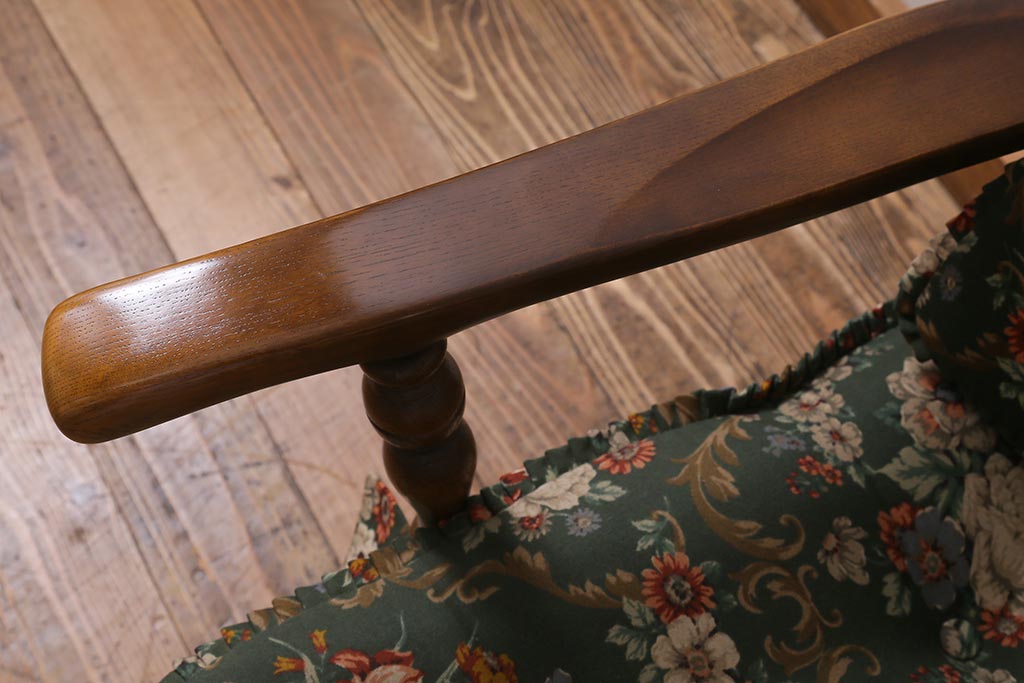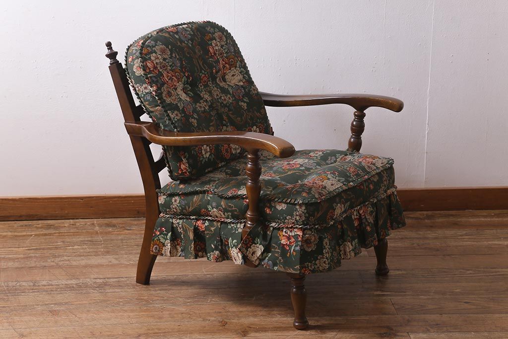 椅子・ベンチ> アームチェア > 中古 飛騨産業 キツツキ 穂高シリーズ 絵画のようなファブリックが素敵な1人掛けソファ(アームチェア)(R-039565)