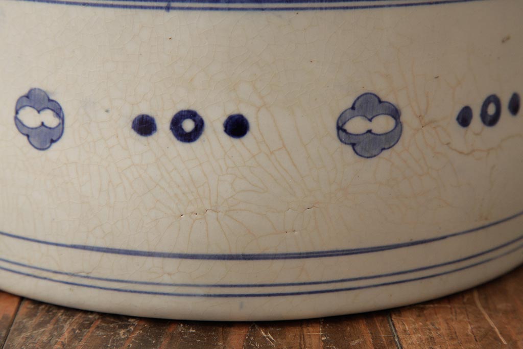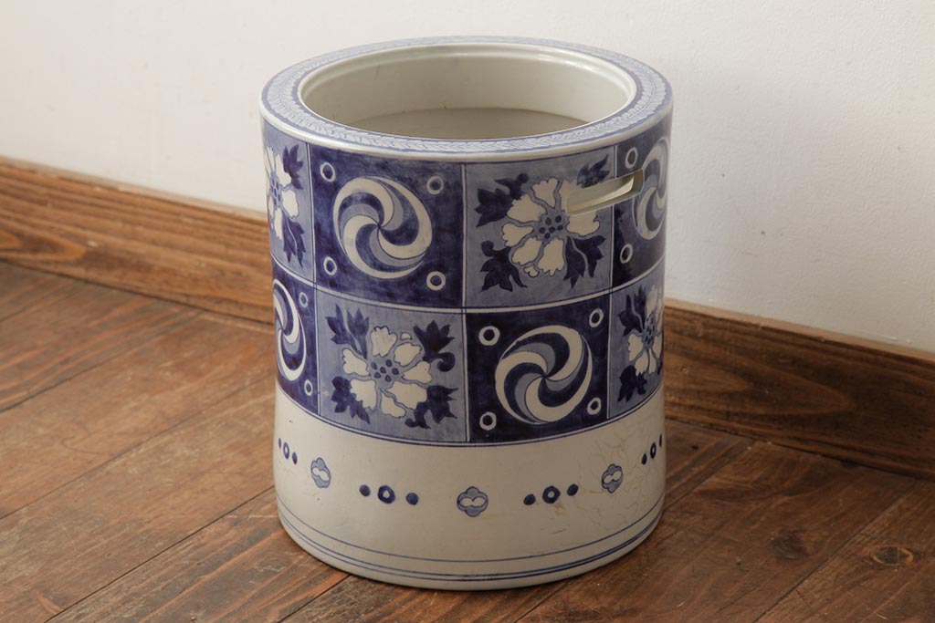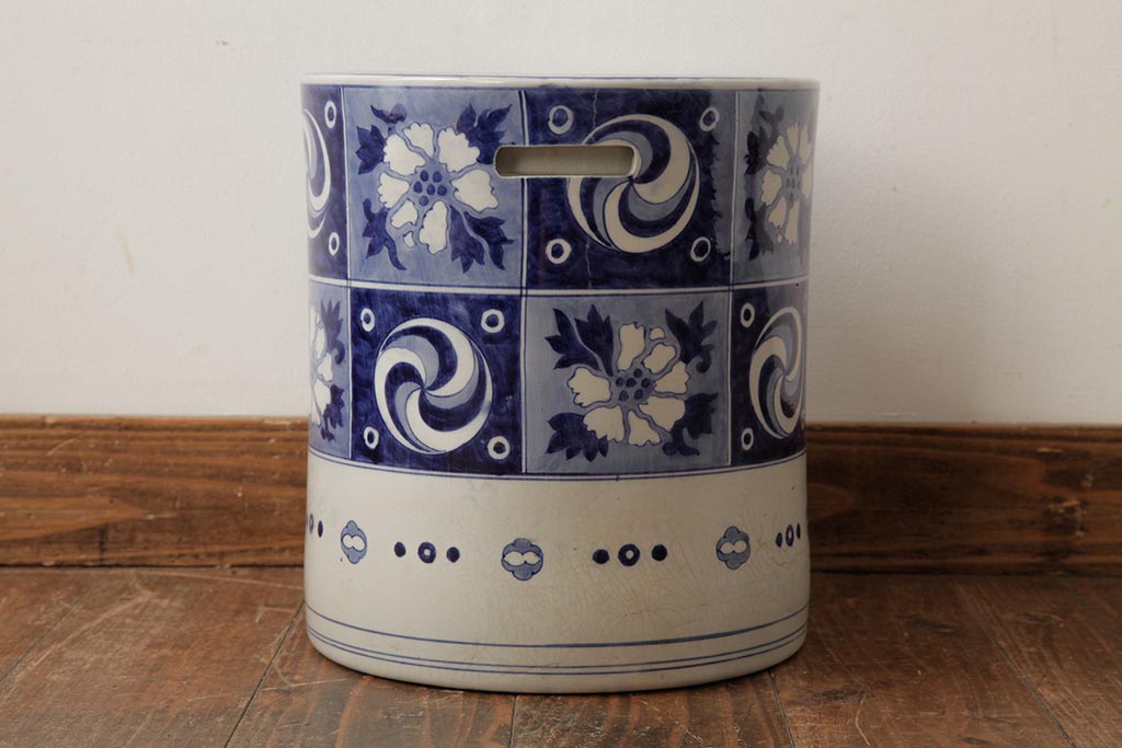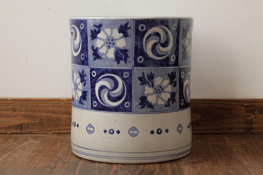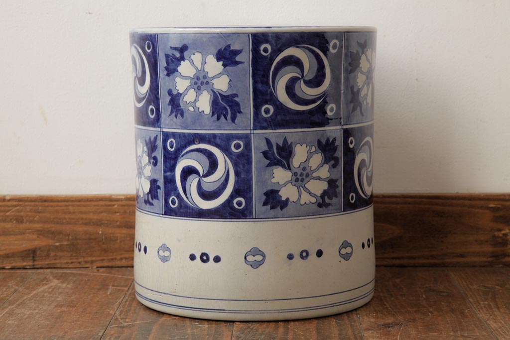 アンティーク雑貨 大正昭和初期 タイルのような図柄がすてきな瀬戸火鉢(鉢カバー)(R-039480)です。