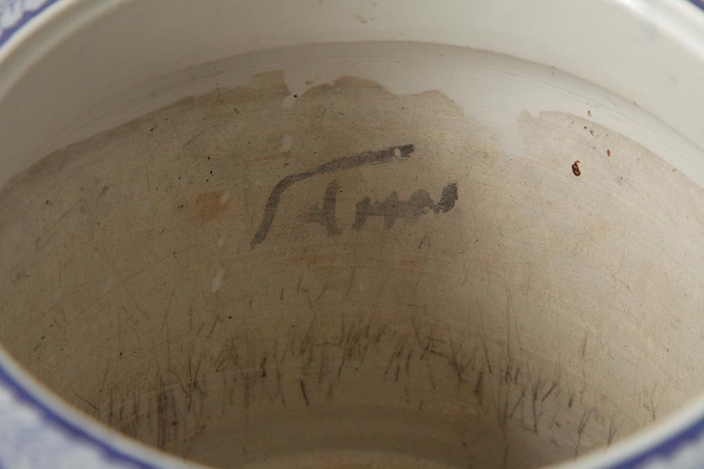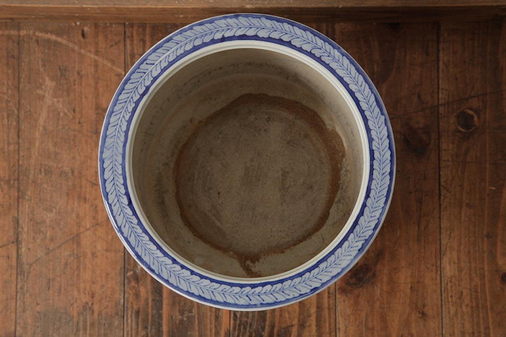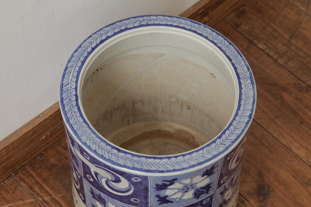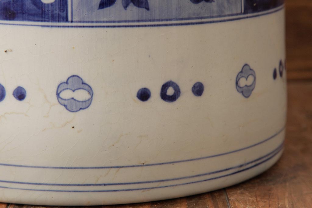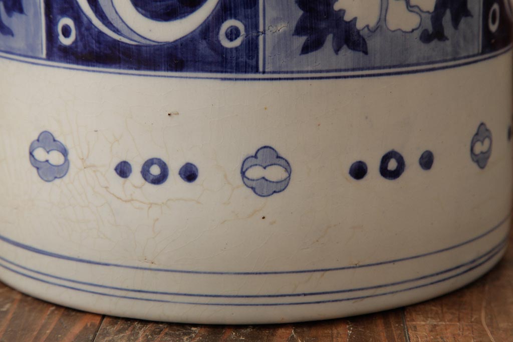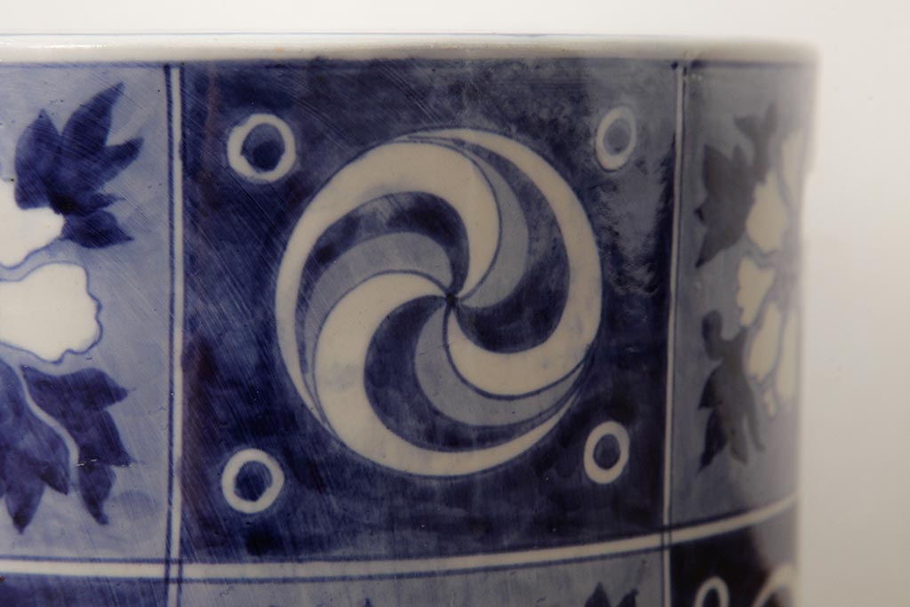 アンティーク雑貨 大正昭和初期 タイルのような図柄がすてきな瀬戸火鉢(鉢カバー)(R-039480)