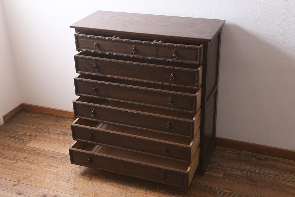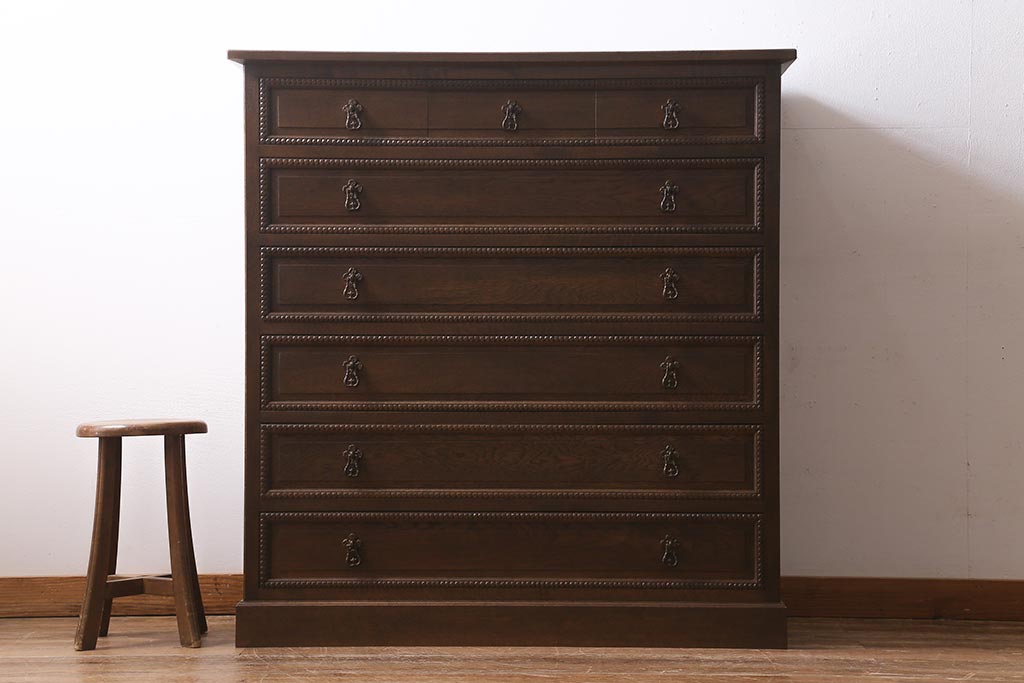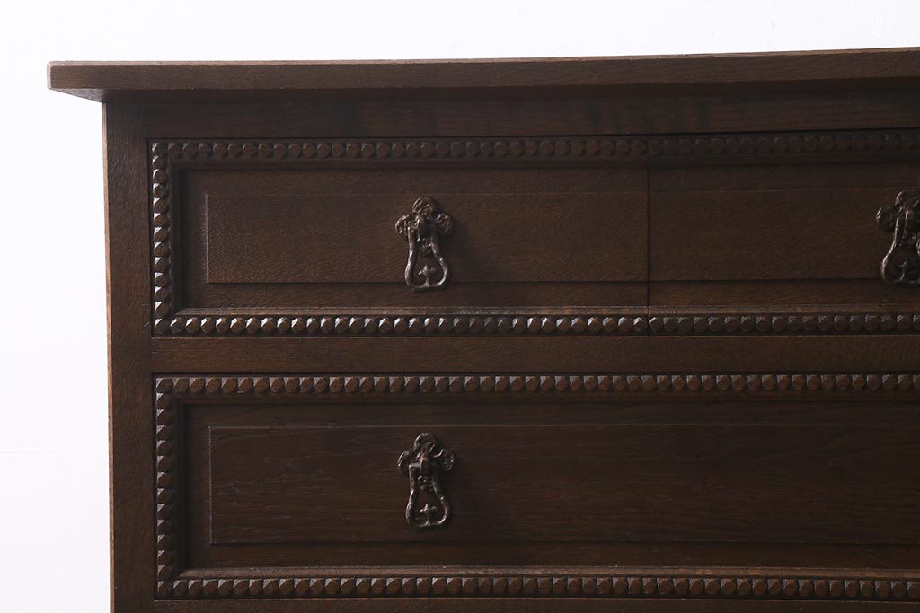 民芸家具 > ビンテージ家具 神戸洋家具 伊藤家具 クラシカルな佇まいのチェスト(衣装タンス、引き出し、ヴィンテージ)(R-039363)