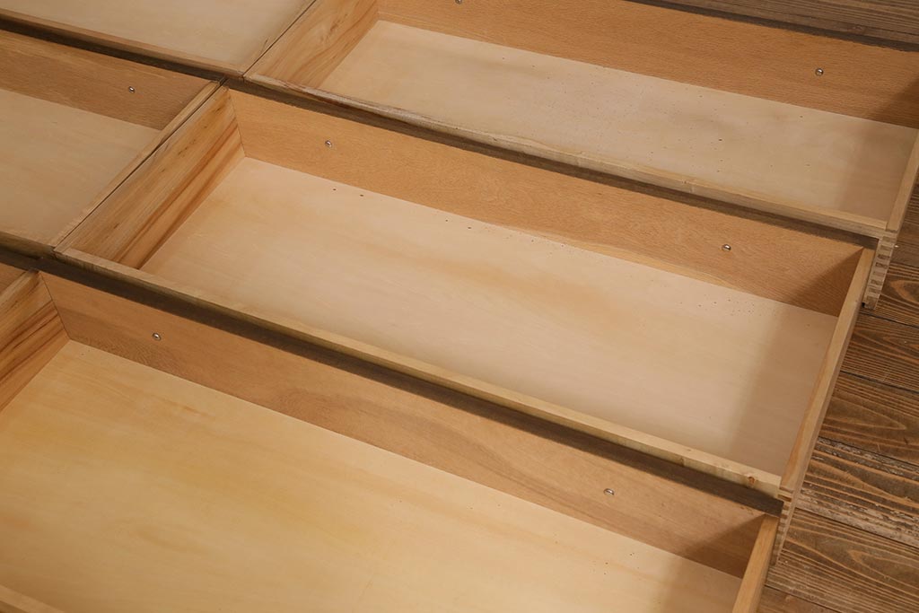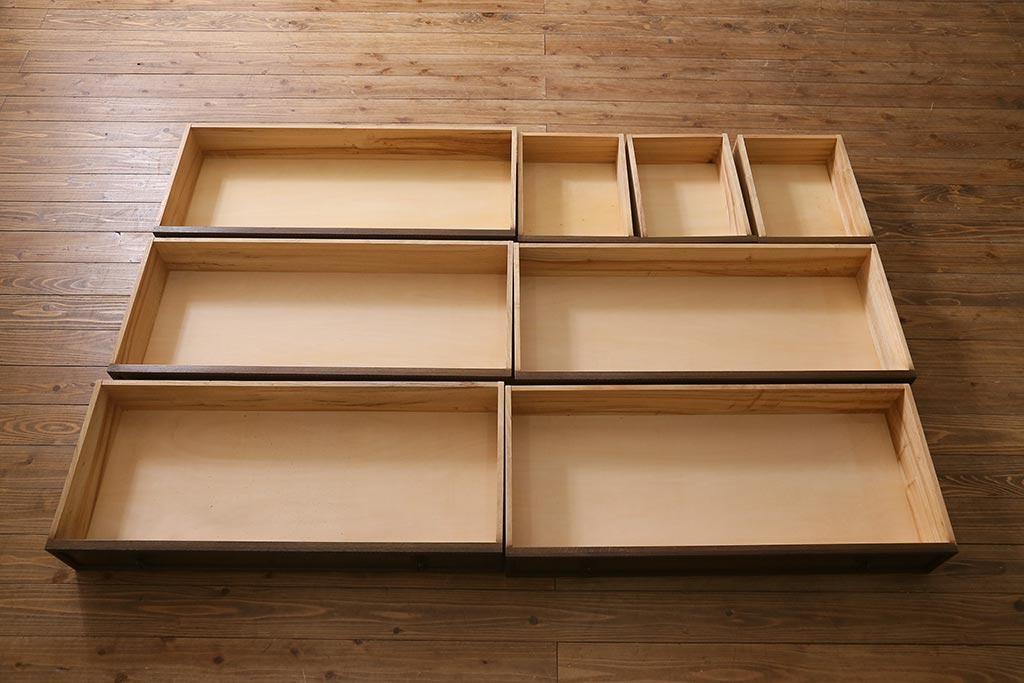 ■引き出しの内寸(大) 各 深さ130mm・130mm・135mm・135mm・135mm/幅965mm/奥行385mm