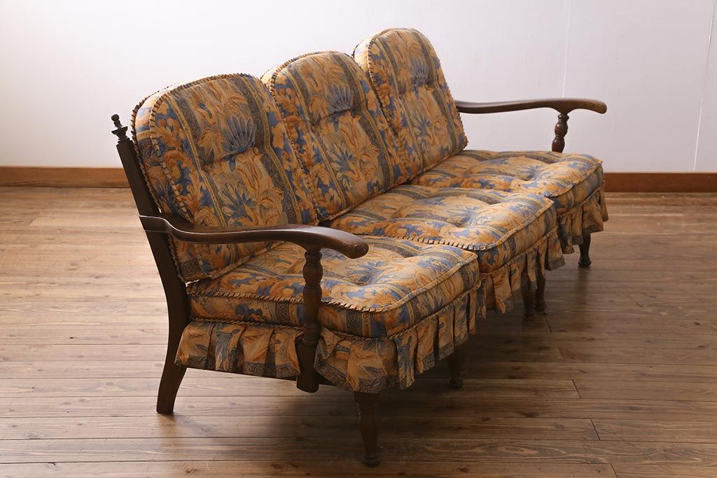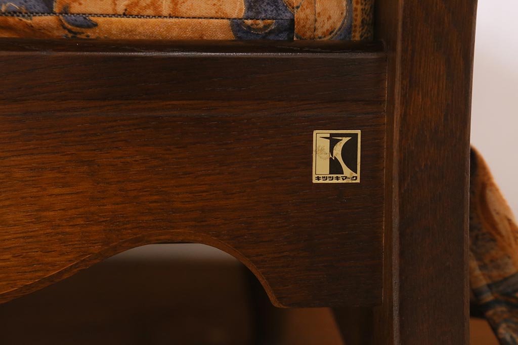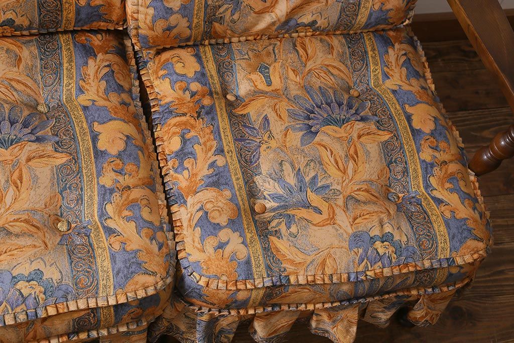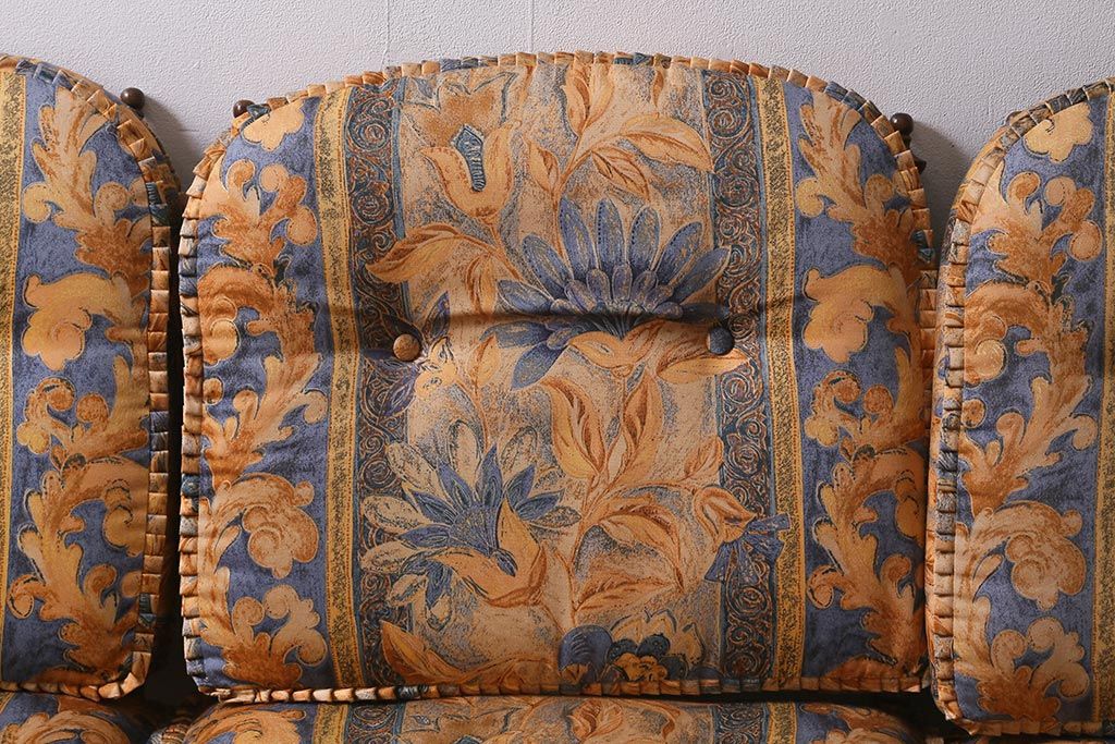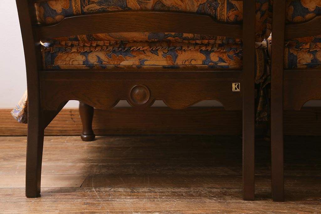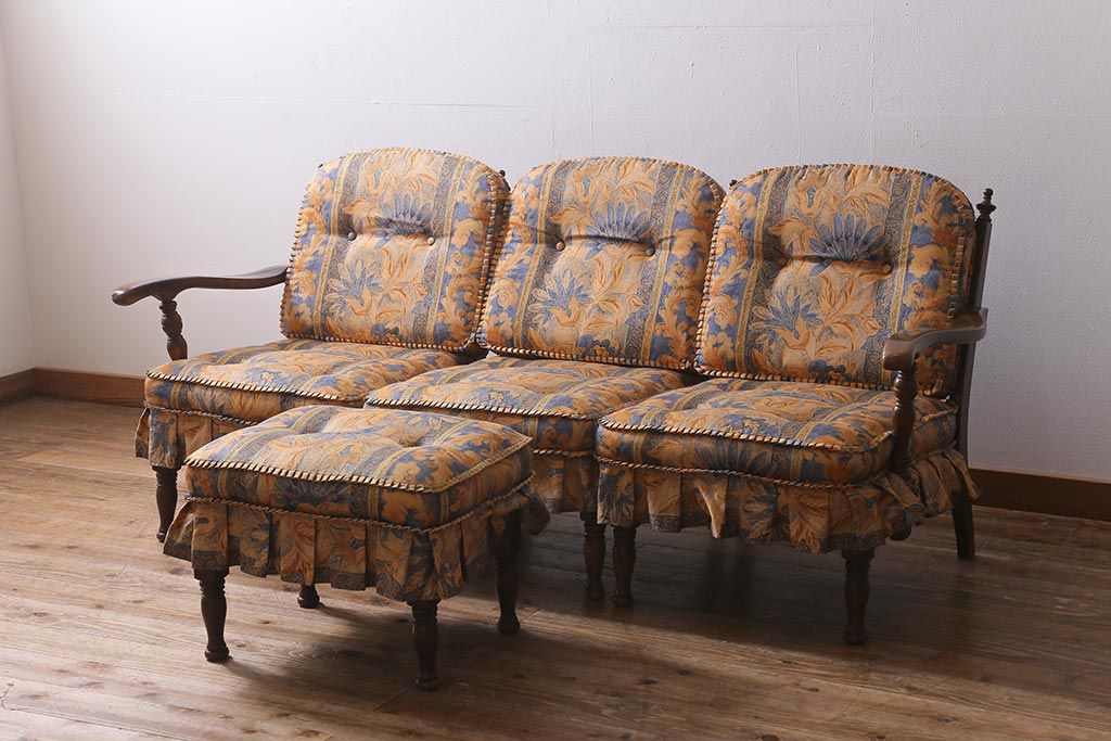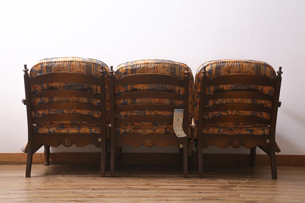 ラフジュ工房> 民芸家具 > 中古美品 飛騨産業 キツツキマーク 穂高 スツール(オットマン)付き エレガントな雰囲気漂う3人掛けソファ(アームチェア、リビングソファ)(R-039514)