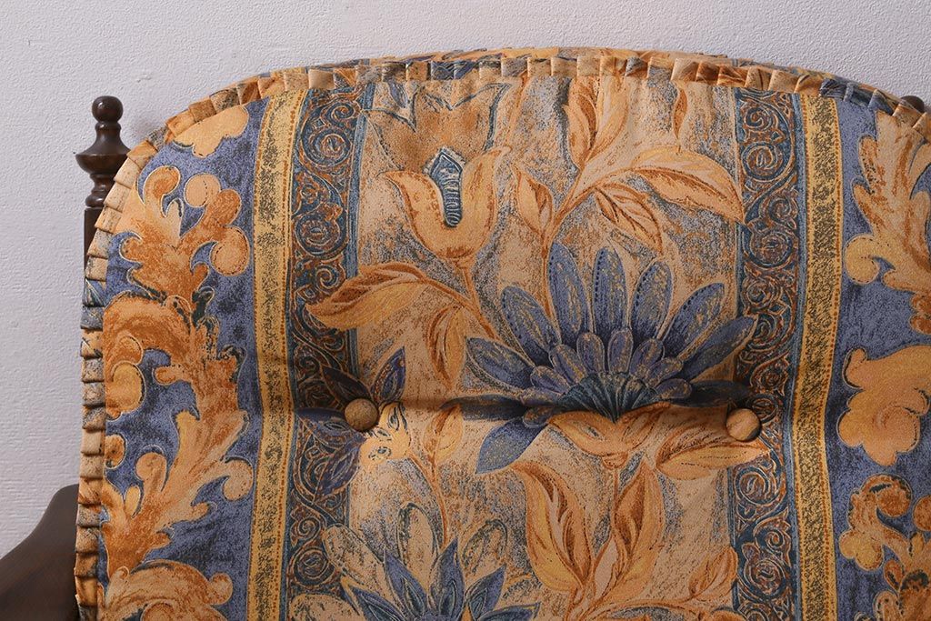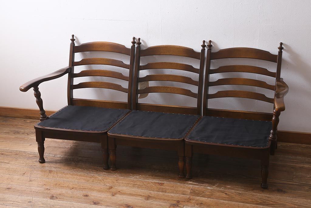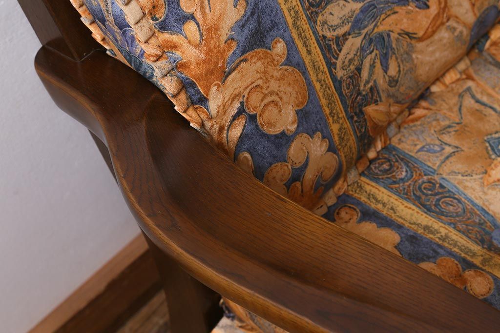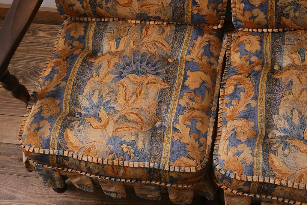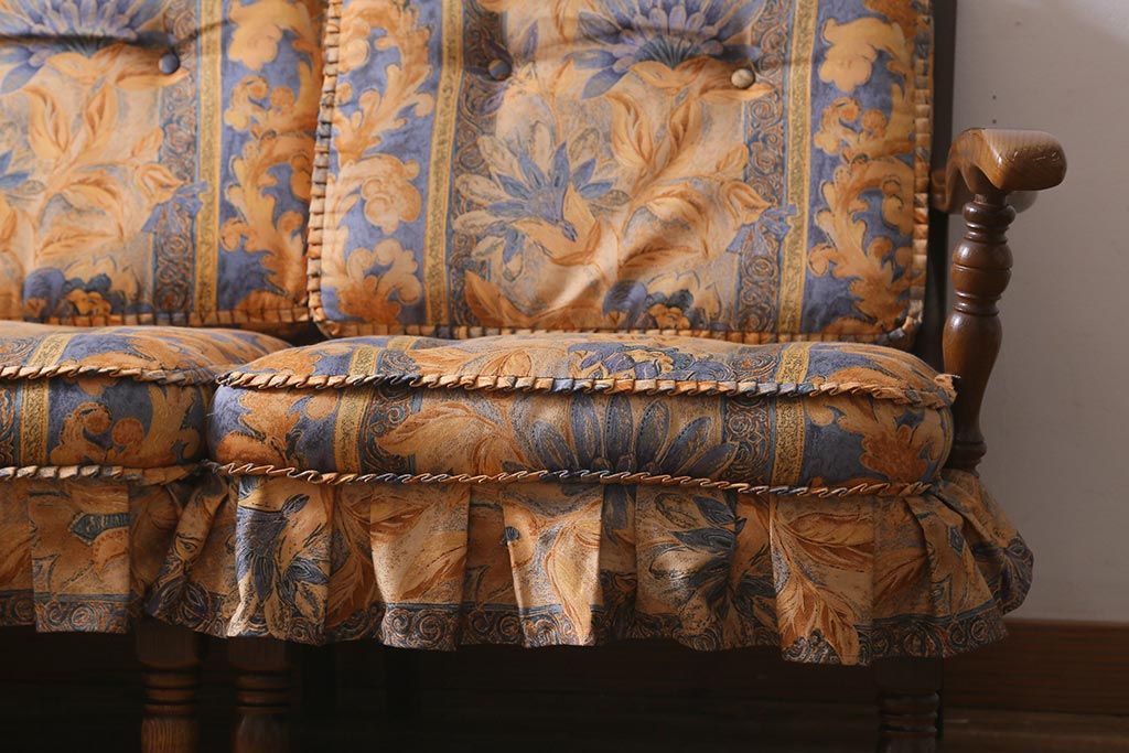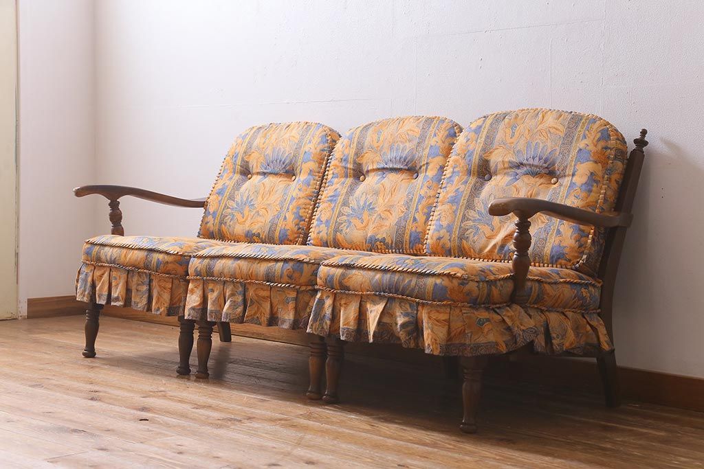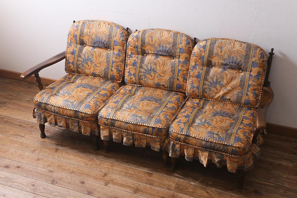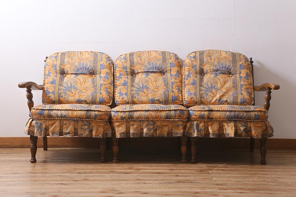 ラフジュ工房> 民芸家具 > 中古美品 飛騨産業 キツツキマーク 穂高 スツール(オットマン)付き エレガントな雰囲気漂う3人掛けソファ(アームチェア、リビングソファ)(R-039514)