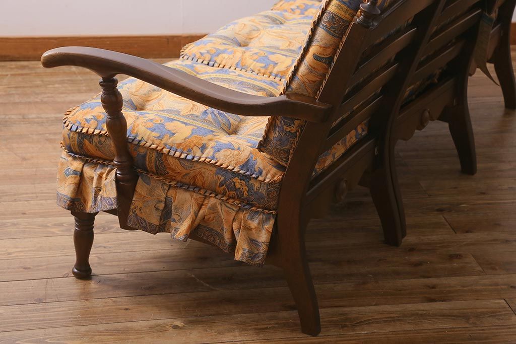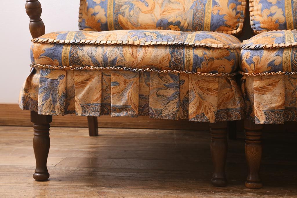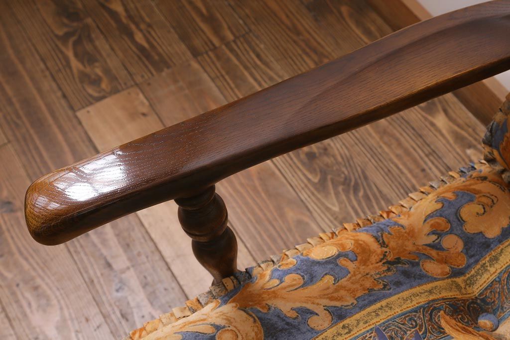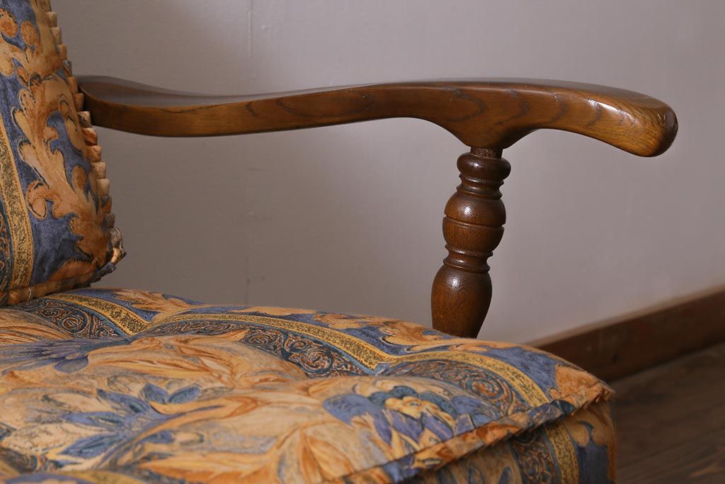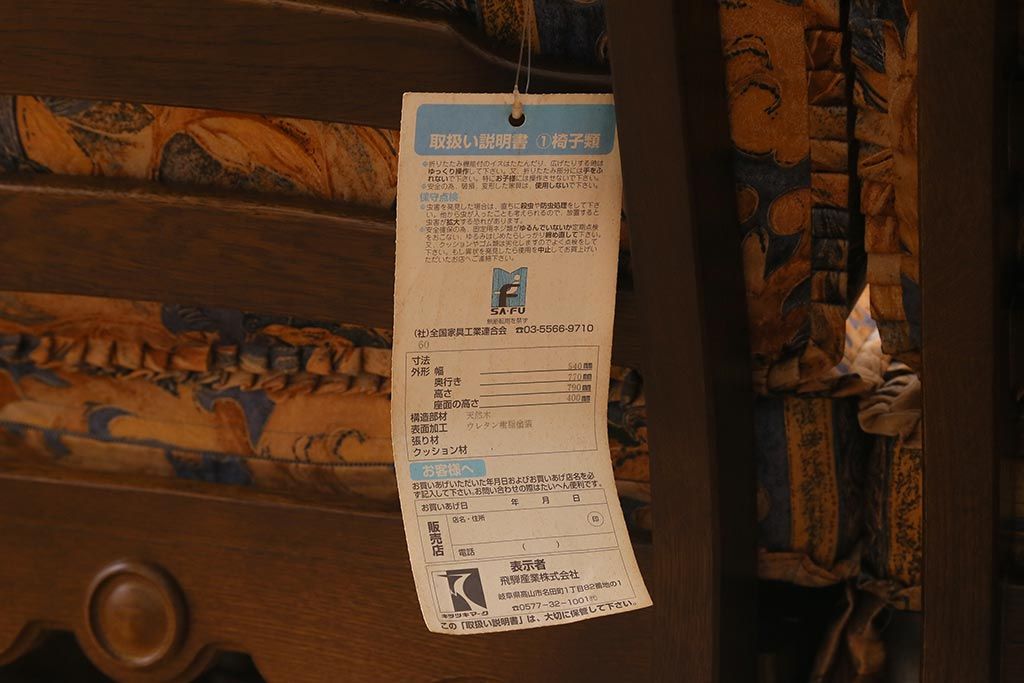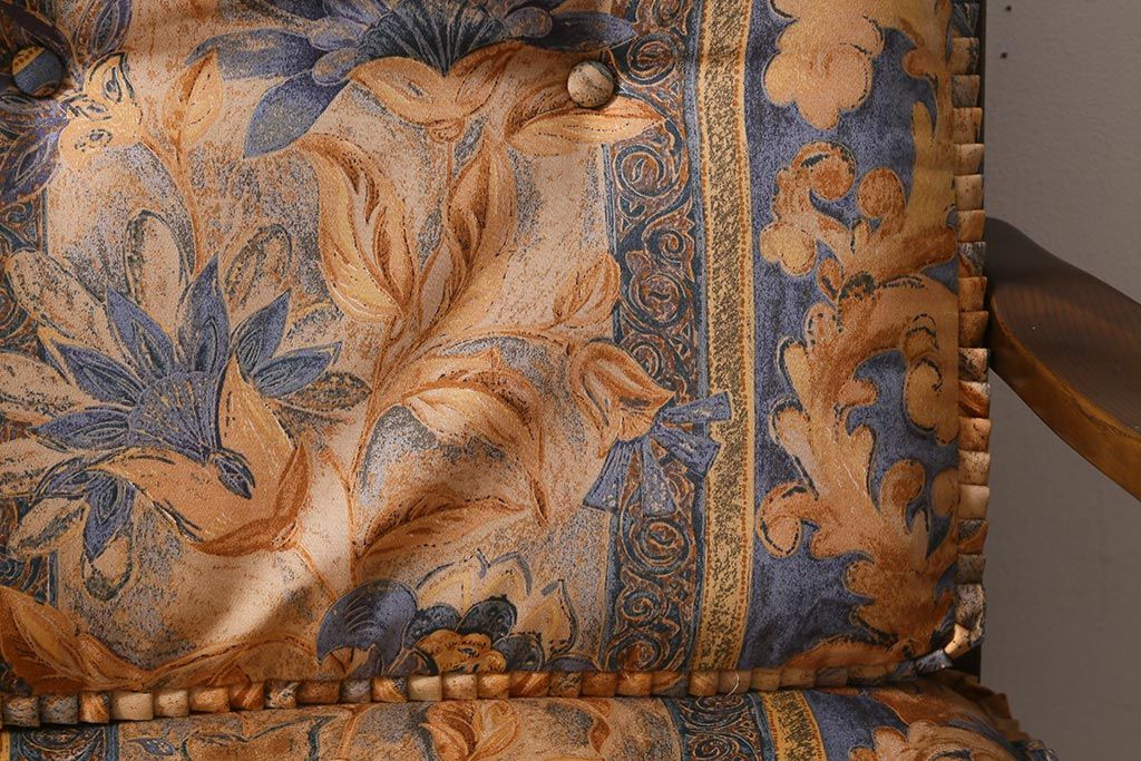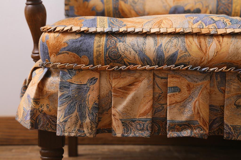 ラフジュ工房> 民芸家具 > 中古美品 飛騨産業 キツツキマーク 穂高 スツール(オットマン)付き エレガントな雰囲気漂う3人掛けソファ(アームチェア、リビングソファ)(R-039514)