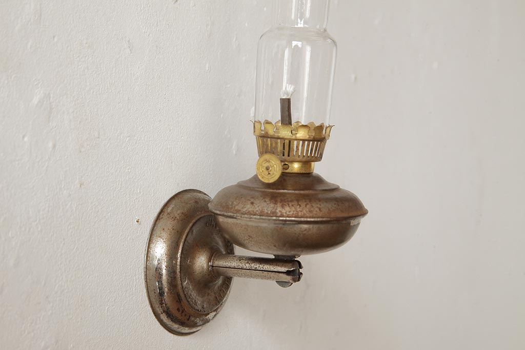 アンティーク雑貨 和製アンティーク 昭和初期 ひとつで2通りの使い方が楽しめる2WAYオイルランプ(灯油ランプ、卓上ランプ、壁付けランプ)(R-039118)