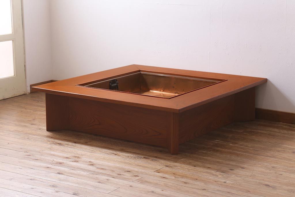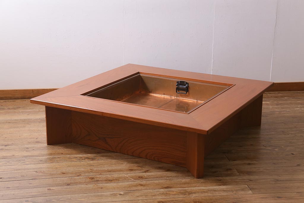 民芸家具 > ビンテージ 民芸家具 ケヤキ材 迫力のある杢目の流れが見事な囲炉裏(長火鉢、座卓、ローテーブル)(R-039468)