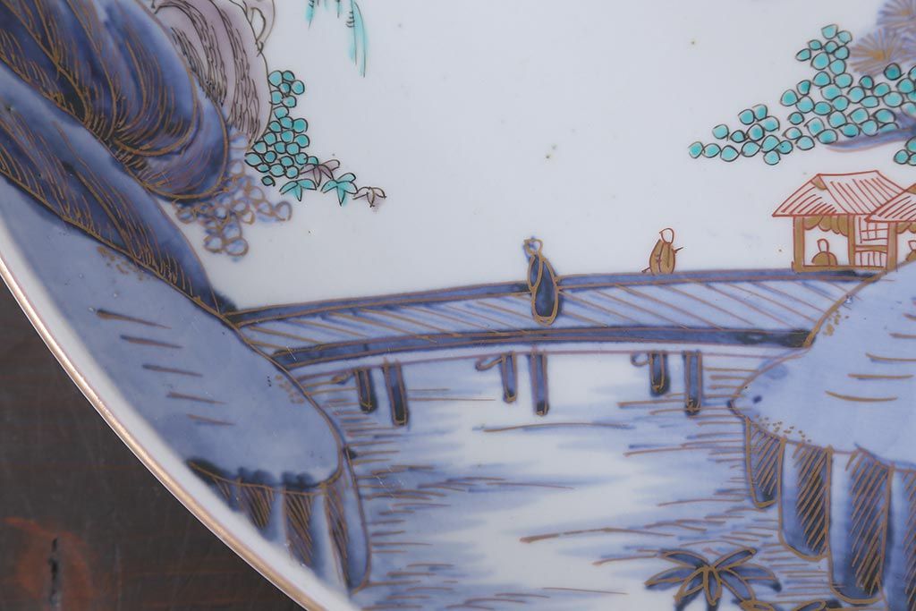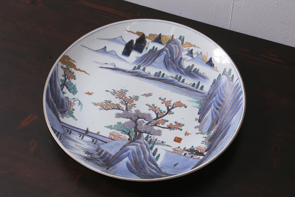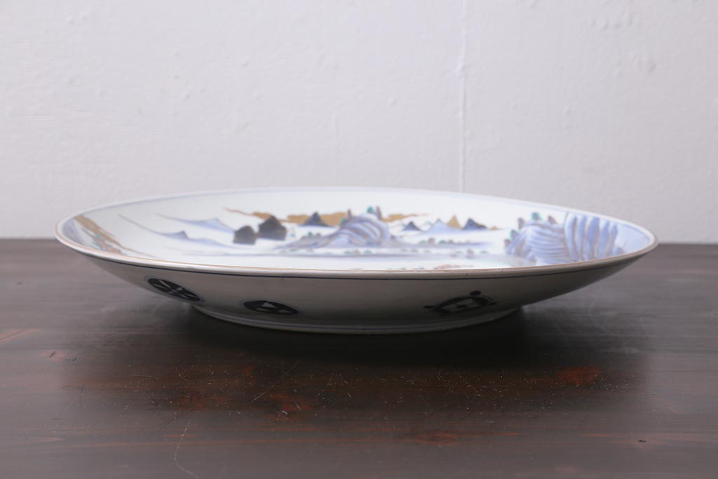 ラフジュ工房> 和食器・茶道具> 皿 > アンティーク雑貨 江戸期 色絵染付 山水図 一尺五寸 大皿(R-039376)