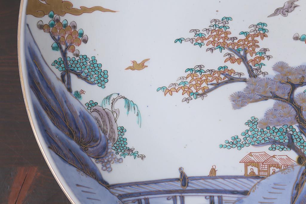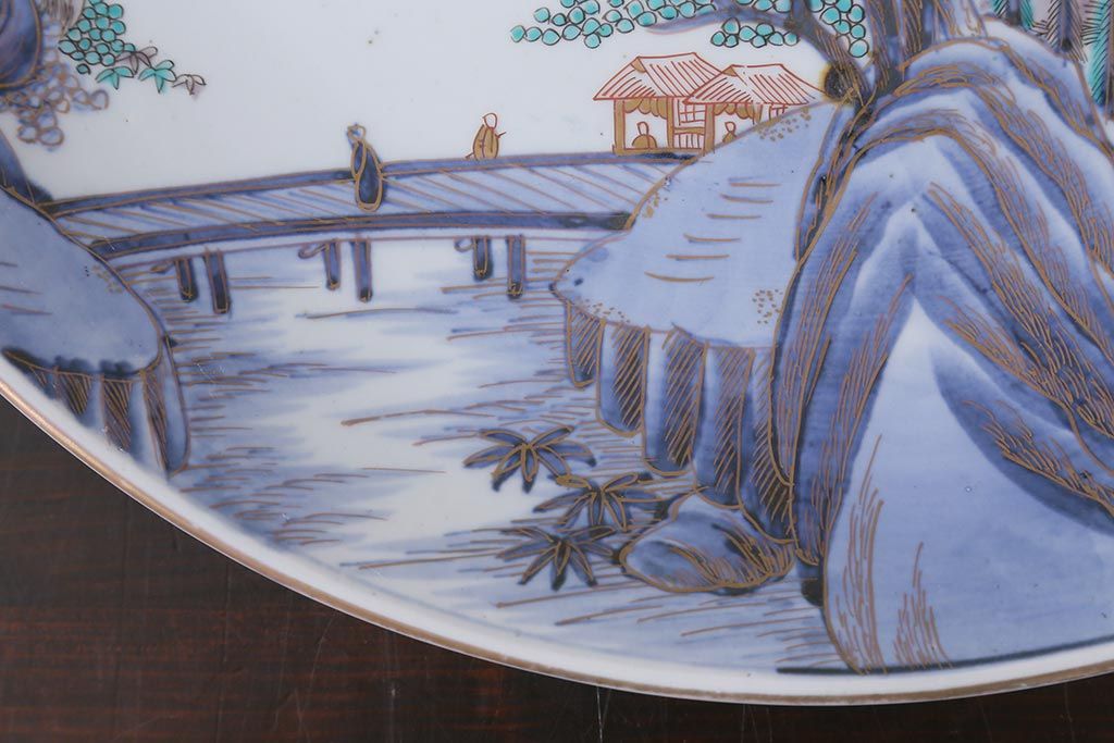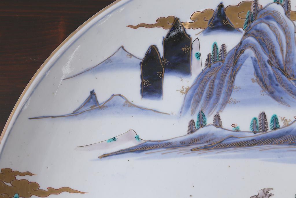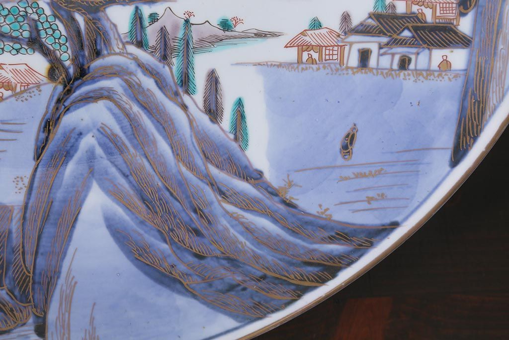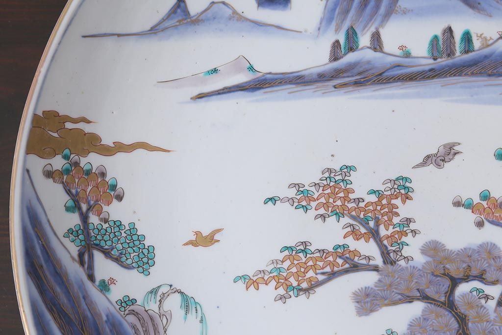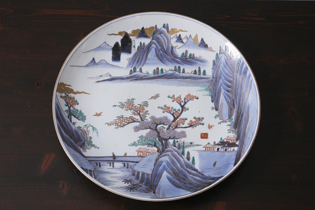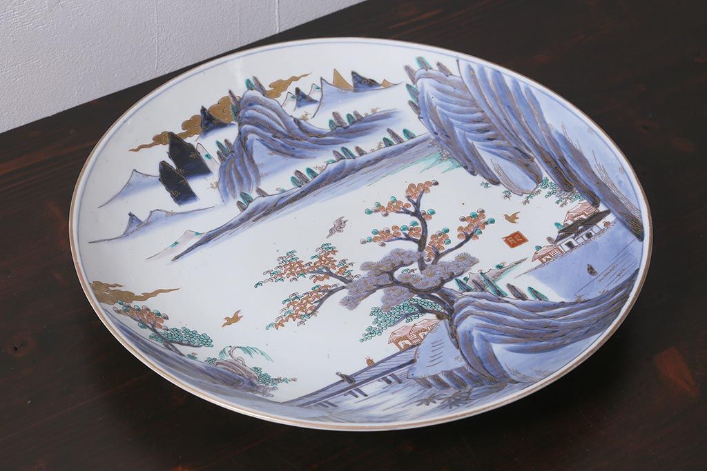 ラフジュ工房> 和食器・茶道具 > アンティーク雑貨 江戸期 色絵染付 山水図 一尺五寸 大皿(R-039376)