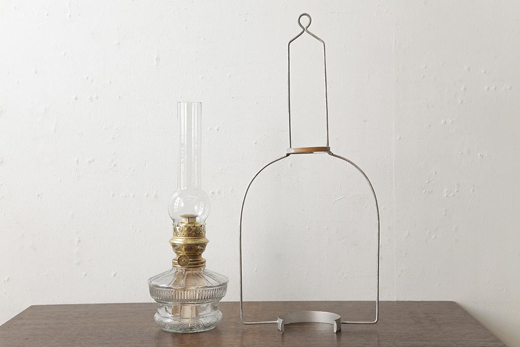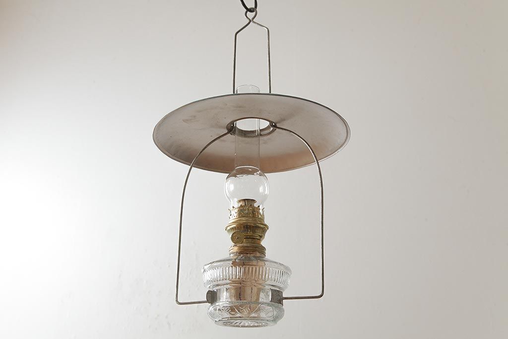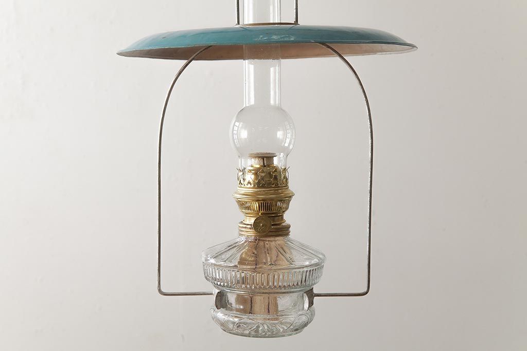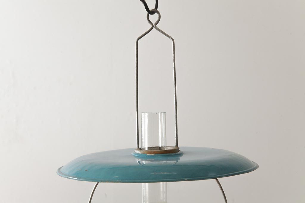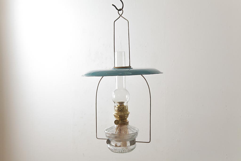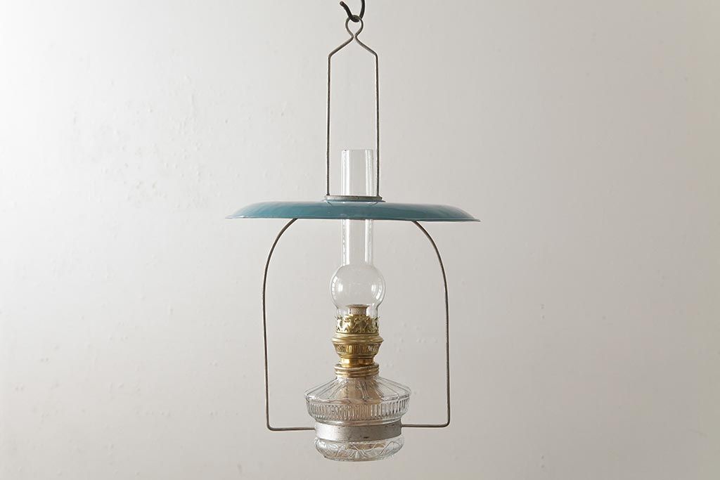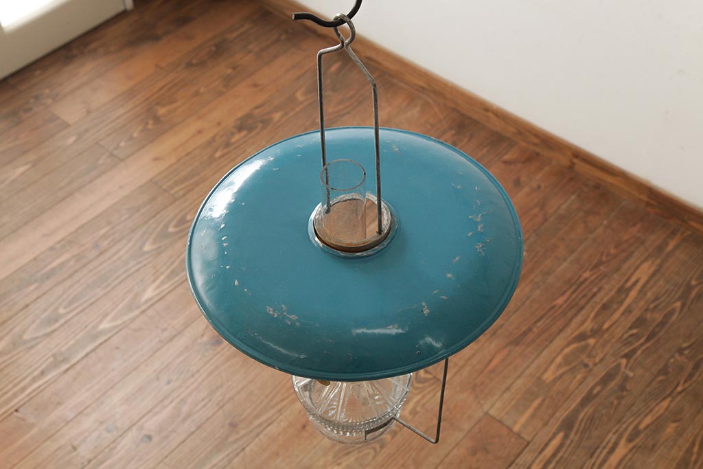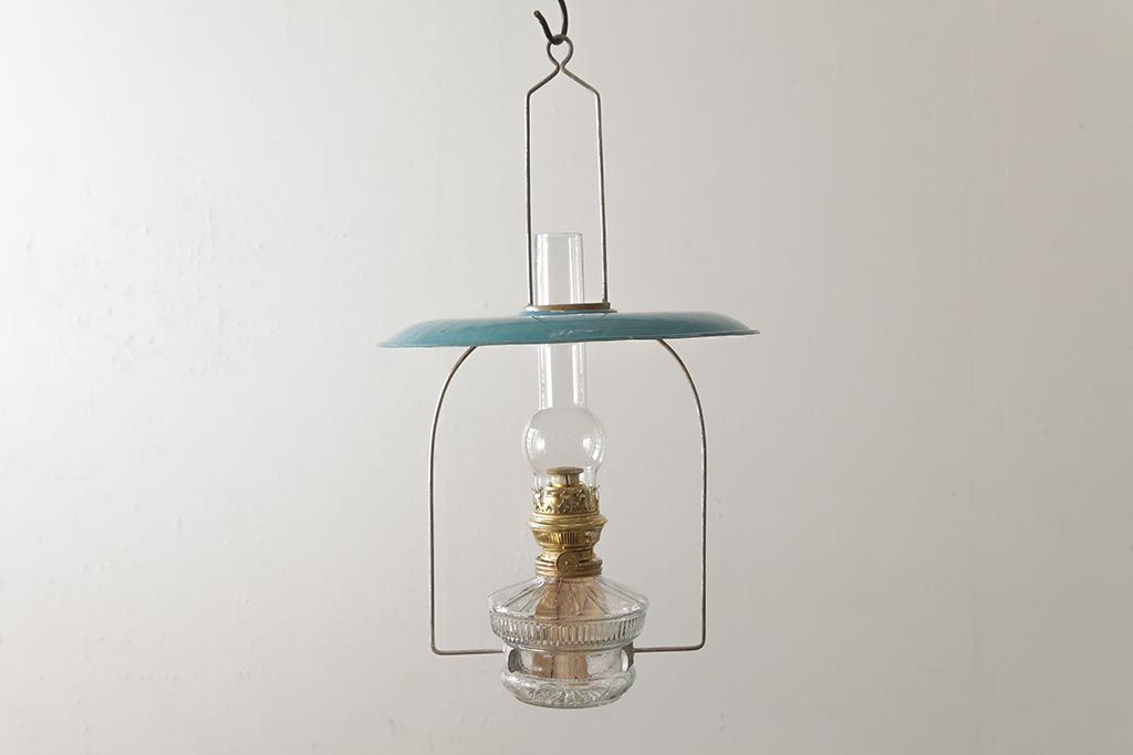 ビンテージ雑貨 アメリカビンテージ 未使用品 デッドストック 青色のアルミシェードがかわいらしいオイルランプ(吊り下げランプ)(R-039558)
