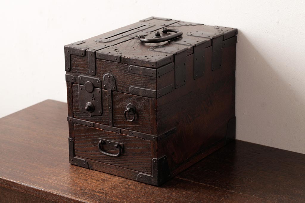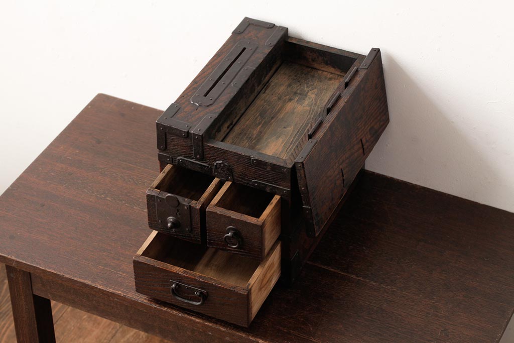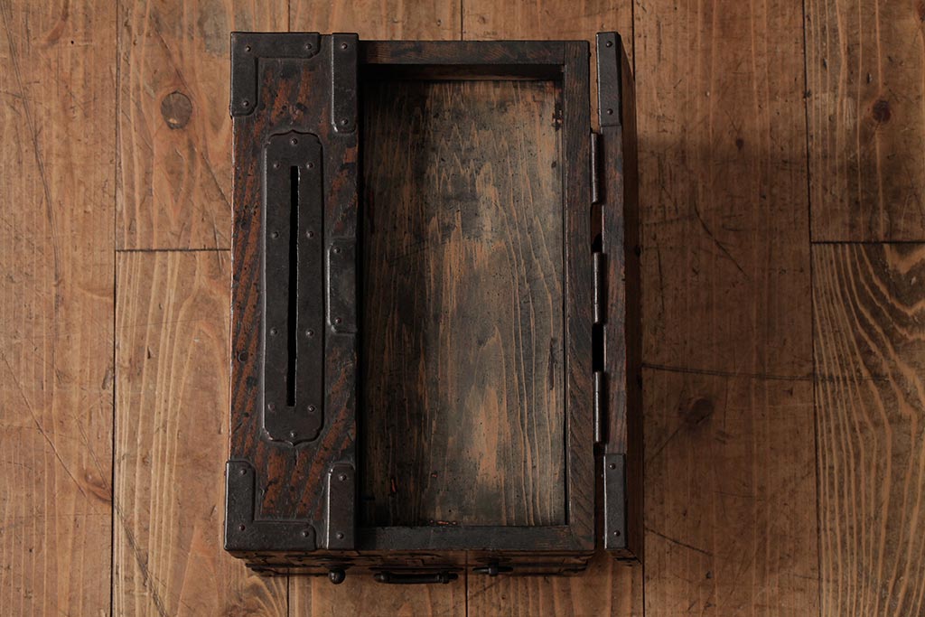 アンティーク雑貨 和製アンティーク 明治期 総栗材 味わい深い趣の硯箱(小物入れ、小引き出し、収納箱)(R-039547)です。